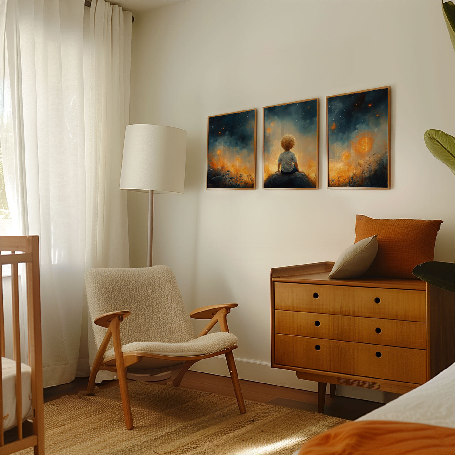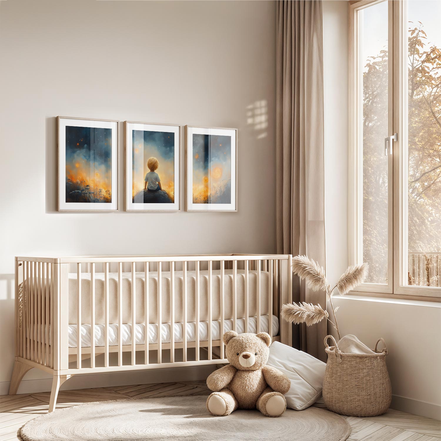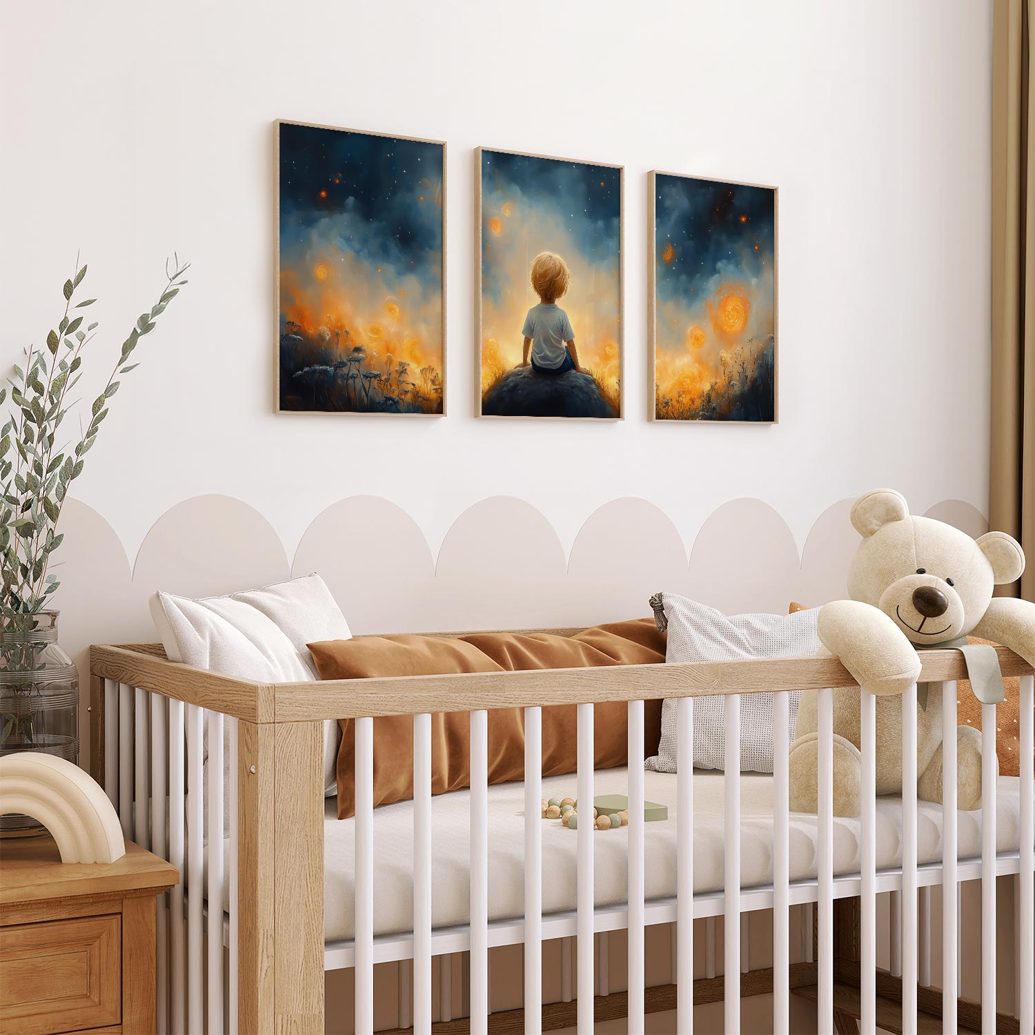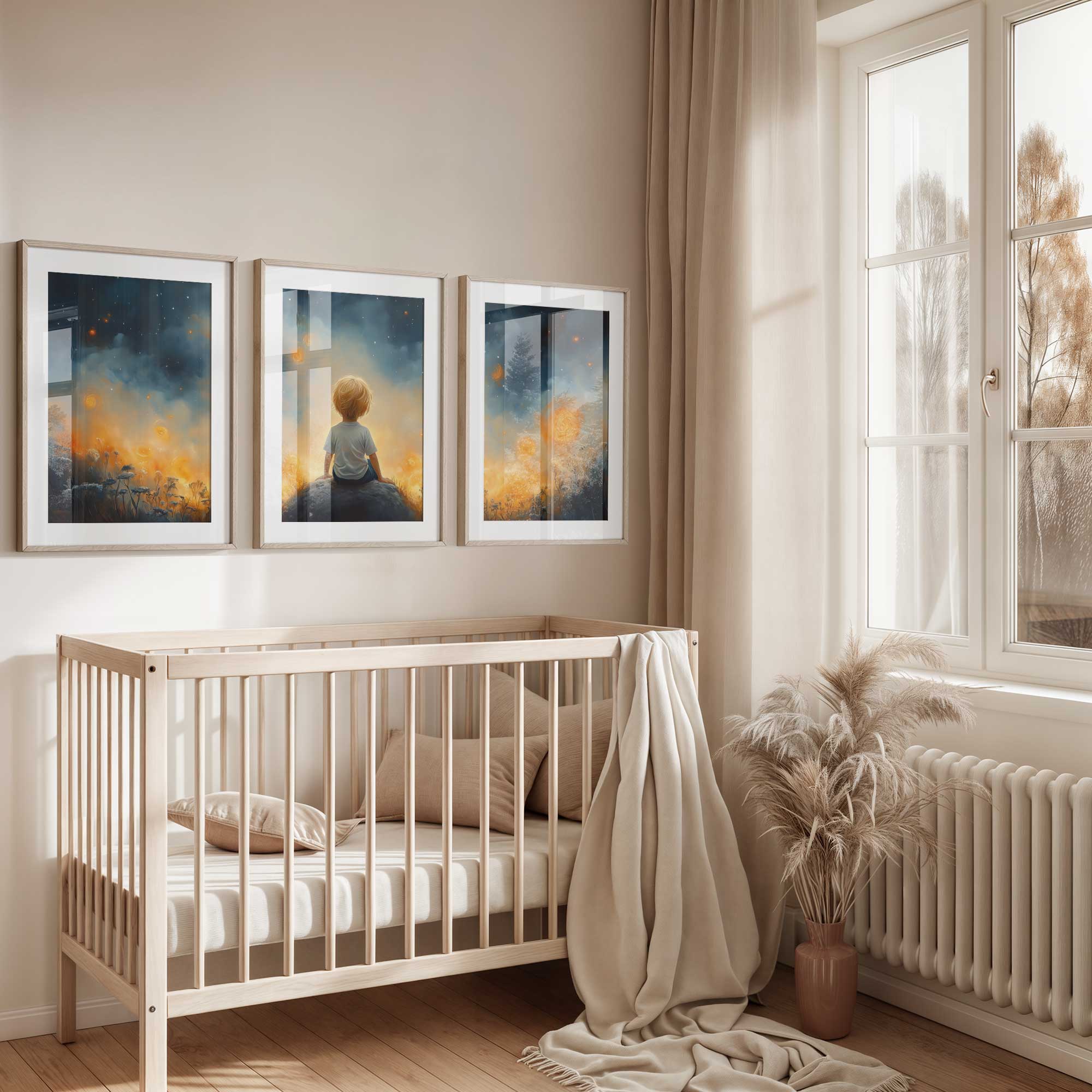 Dromerige Sterrenhemel met Verwonderde Jongen