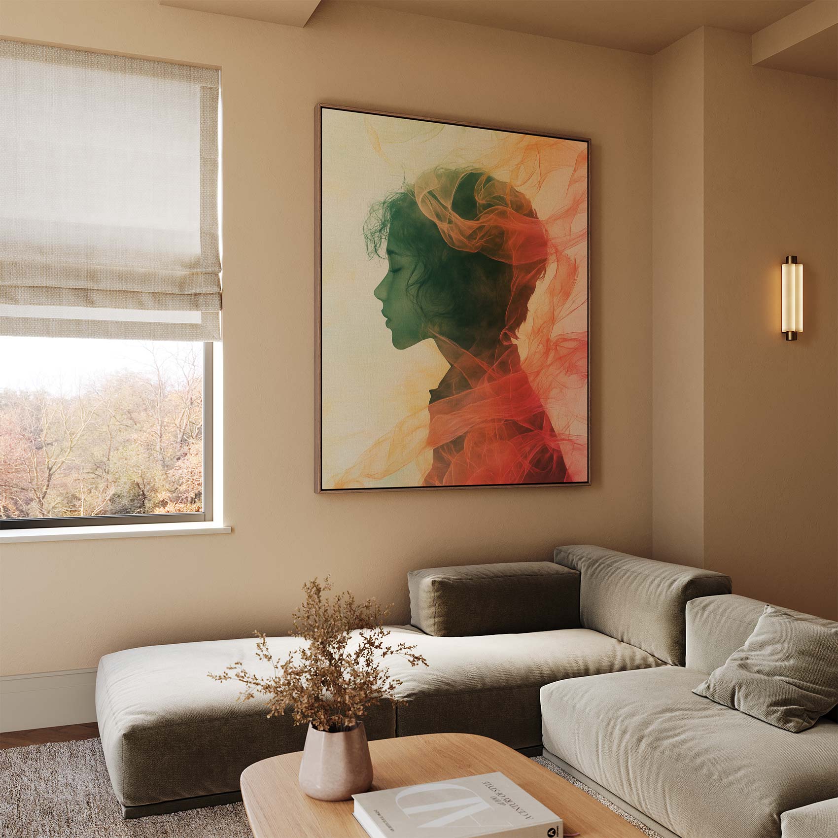 Dromerige vrouw met kleurige rook