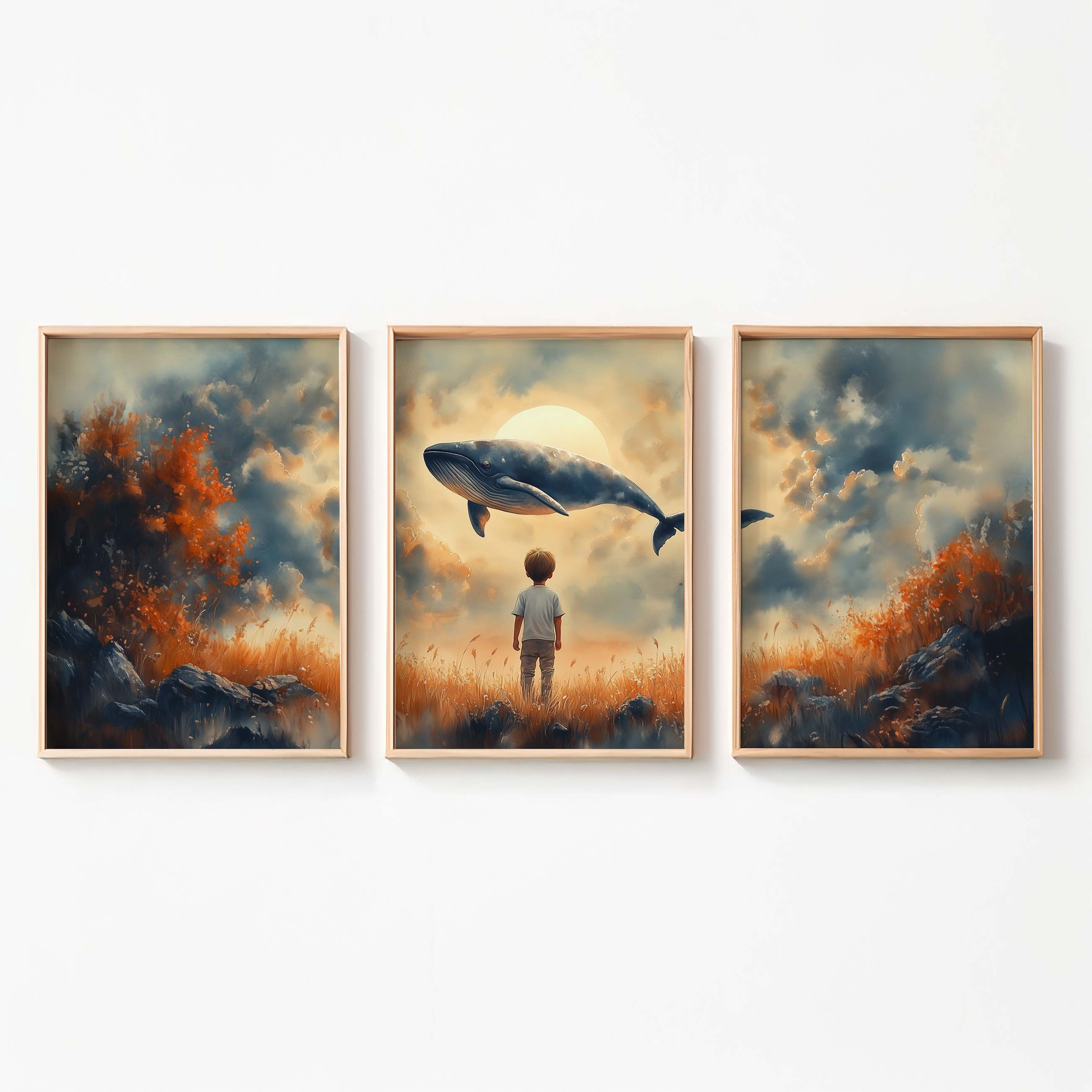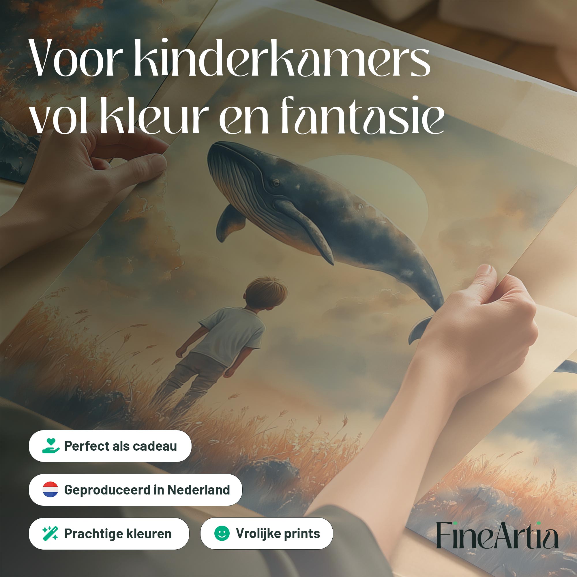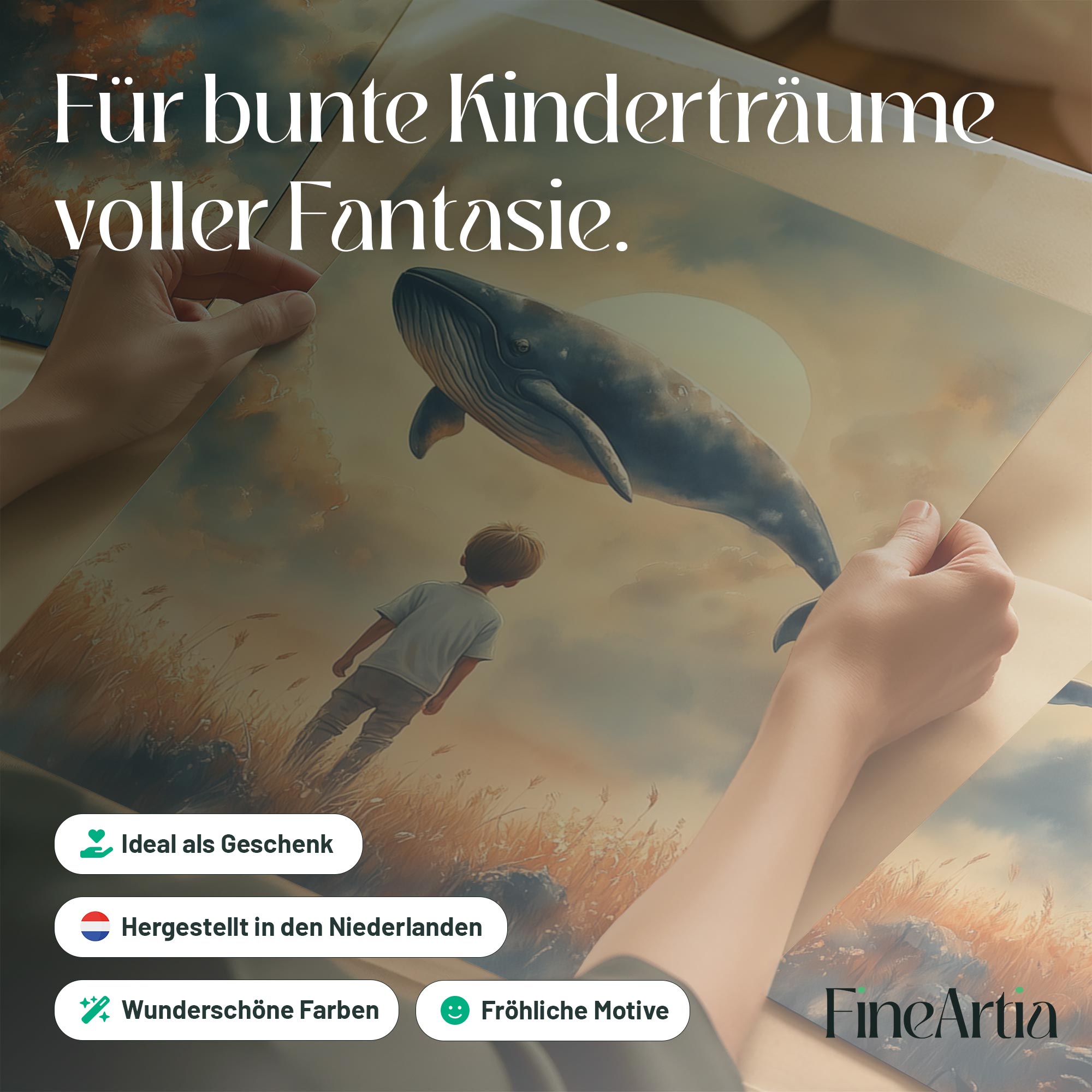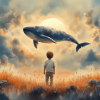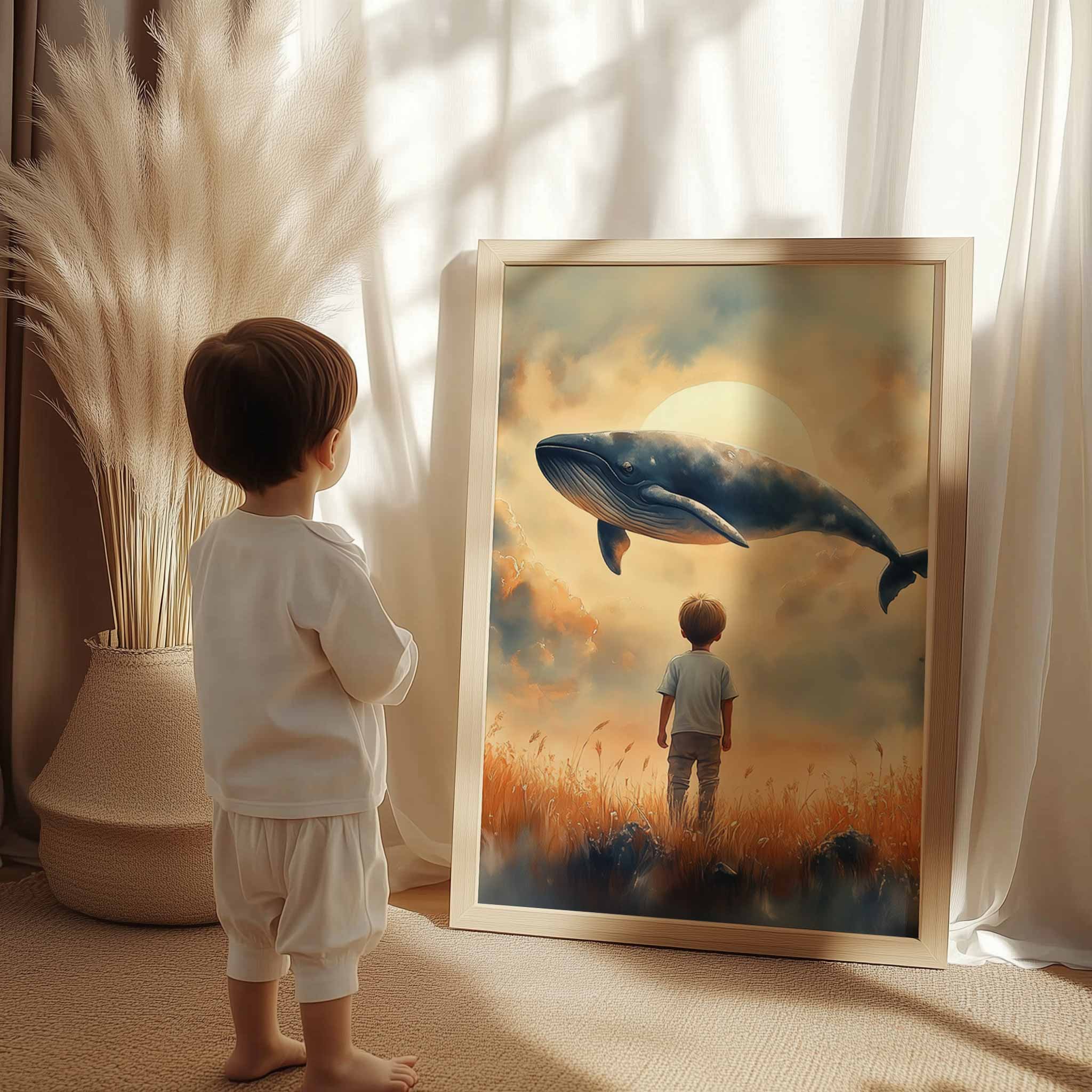Dromerige Walvisvlucht boven Verwonderde Jongen