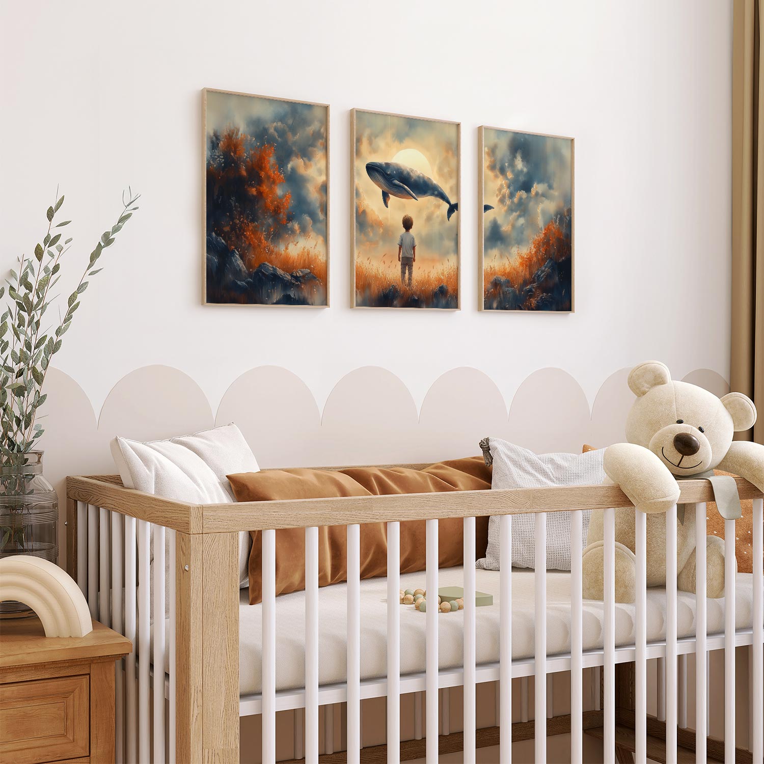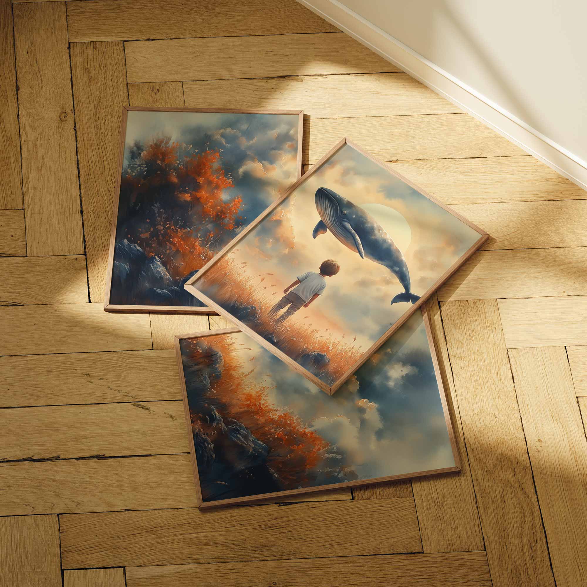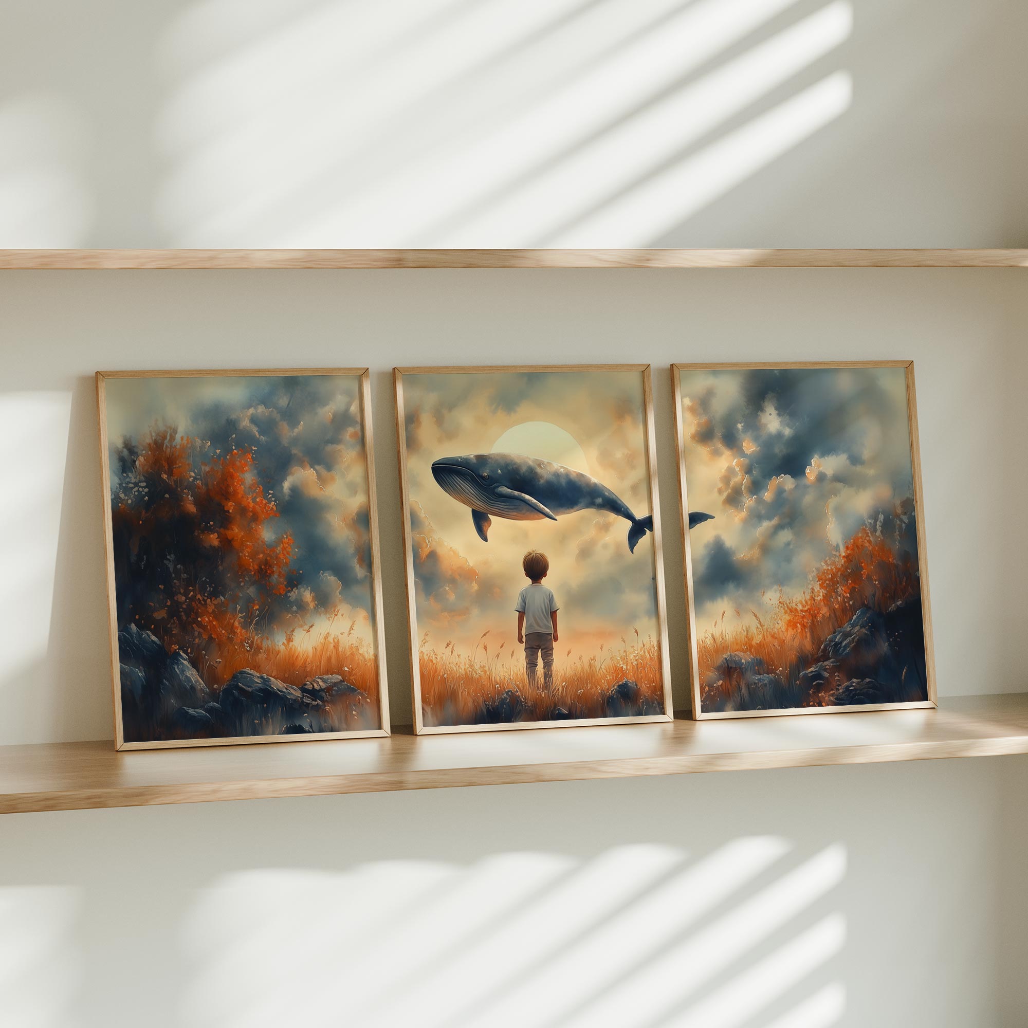 Dromerige Walvisvlucht boven Verwonderde Jongen
