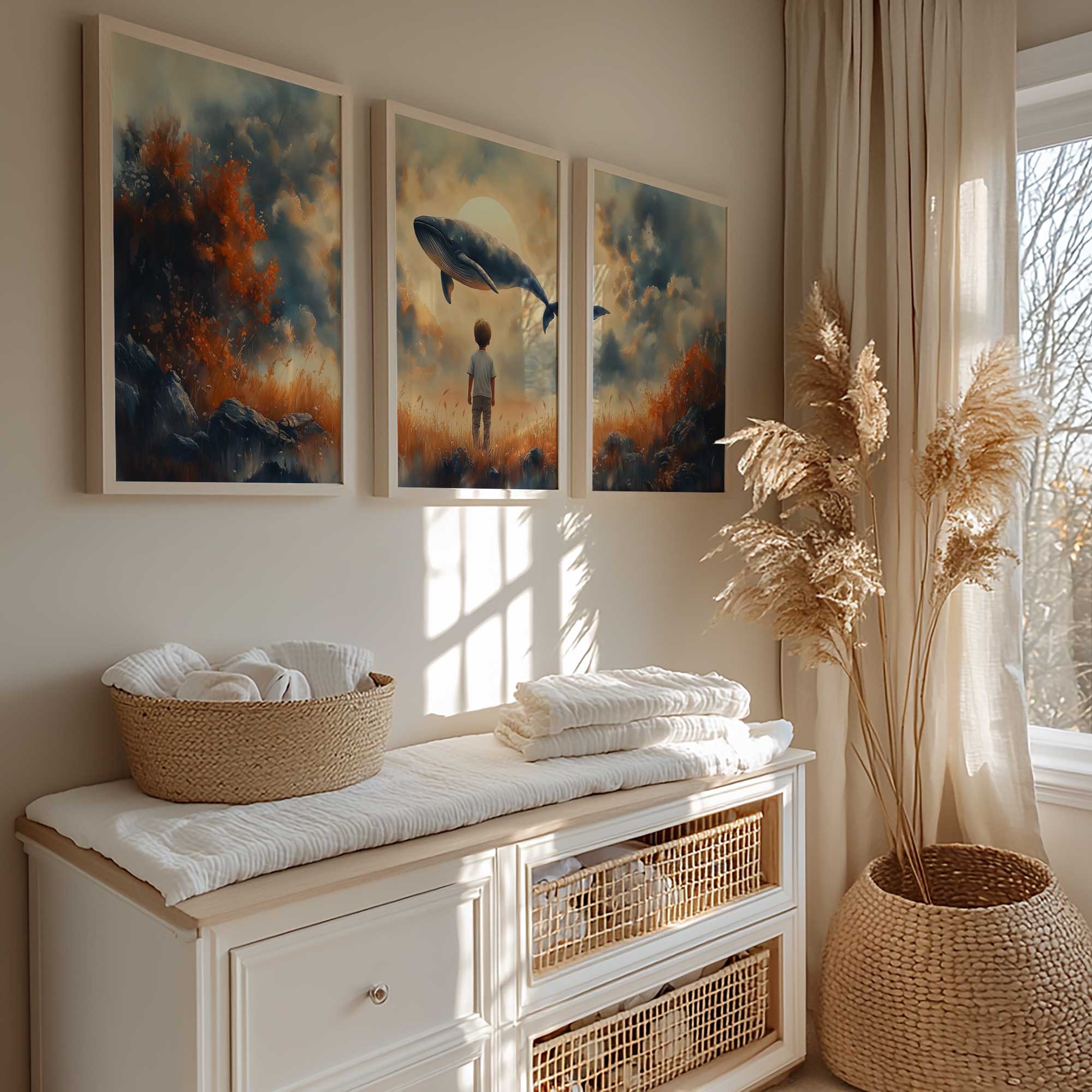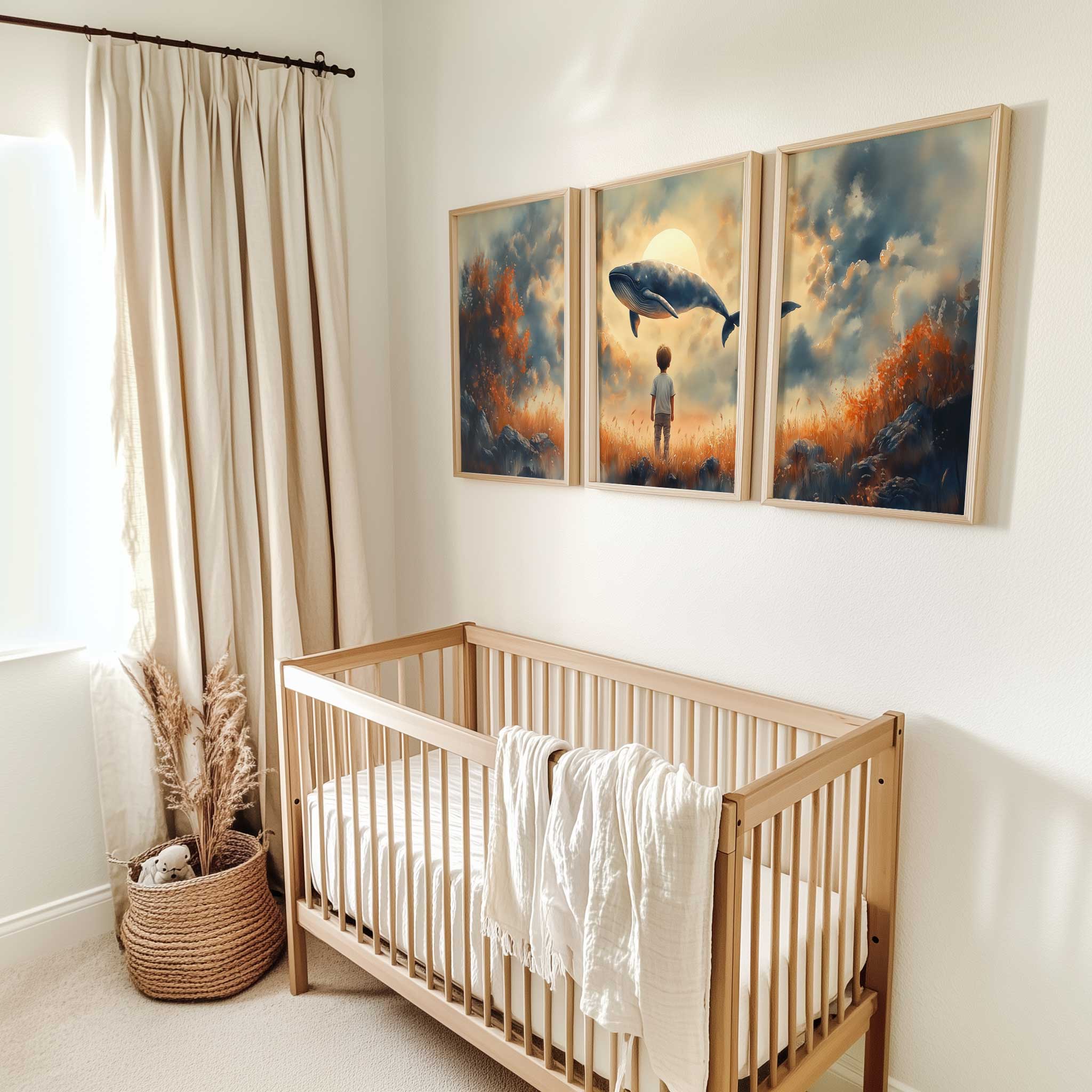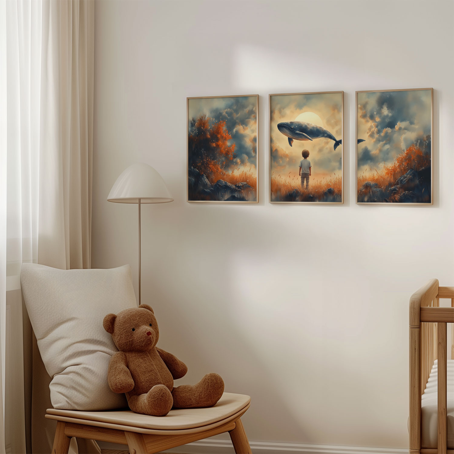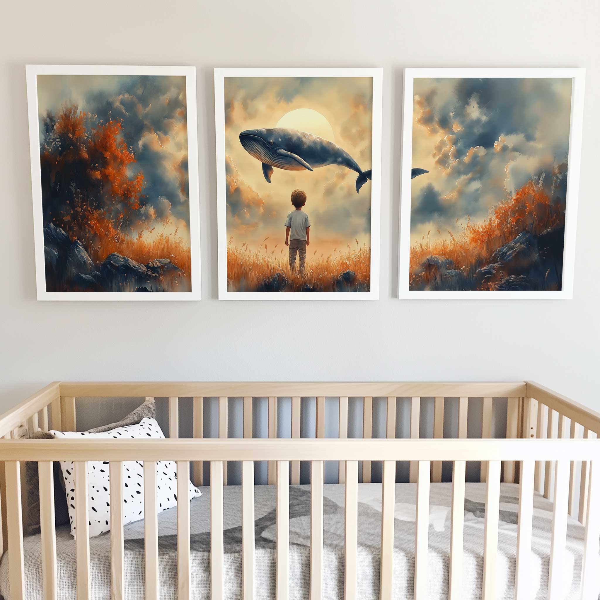 Dromerige Walvisvlucht boven Verwonderde Jongen