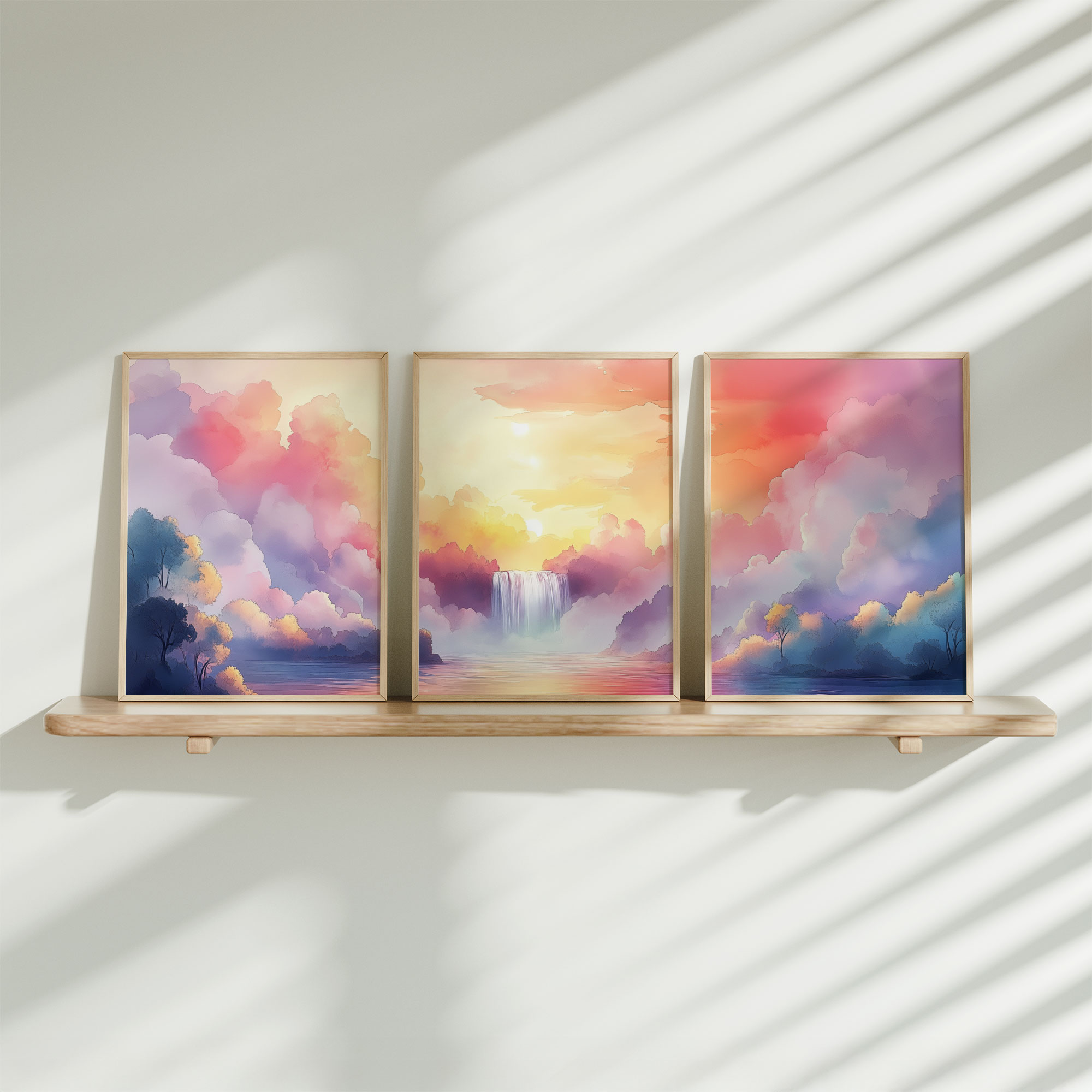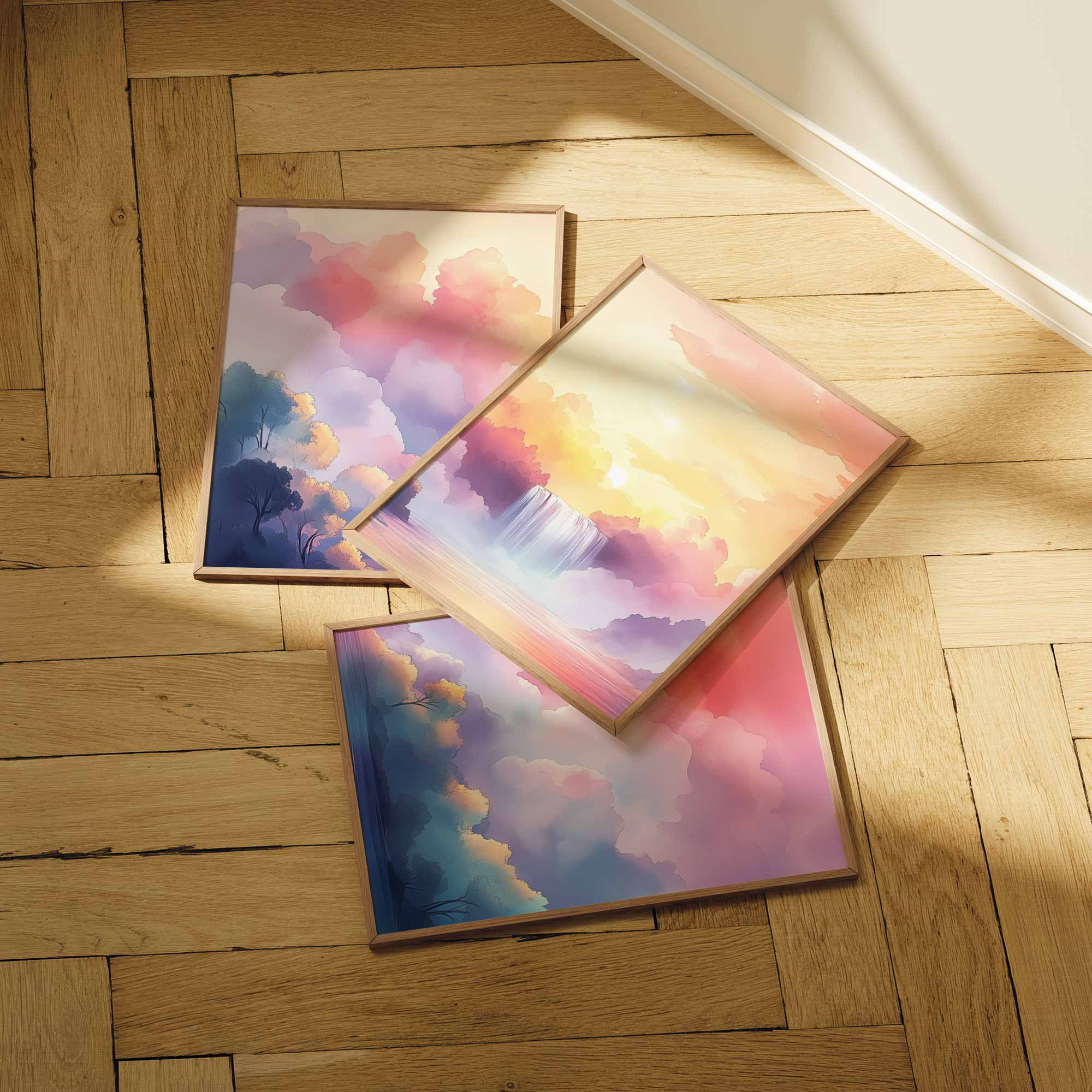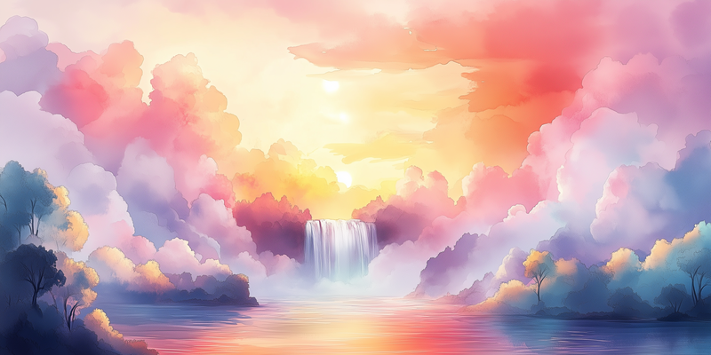 Dromerige Waterval in Pastelkleuren – Serene Sfeer