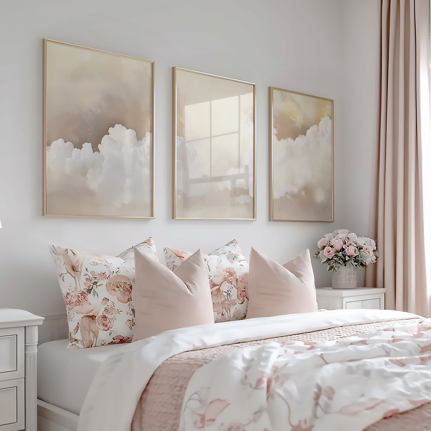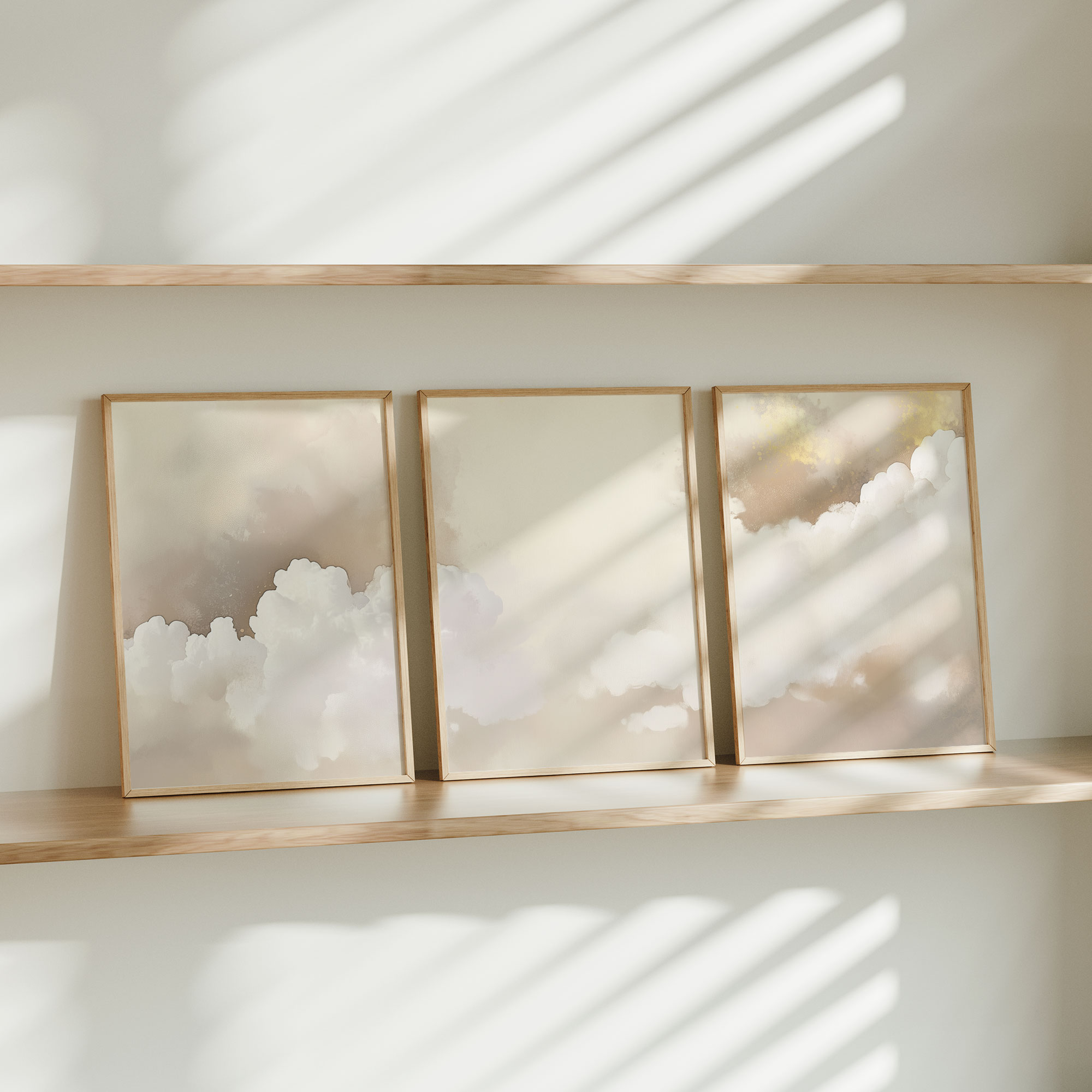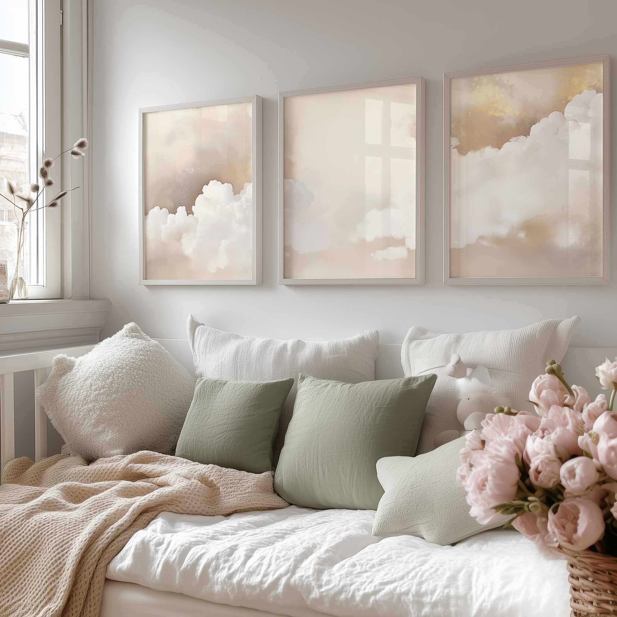 Dromerige Wolken in Zachte Tinten – Stijlvolle Wanddecoratie