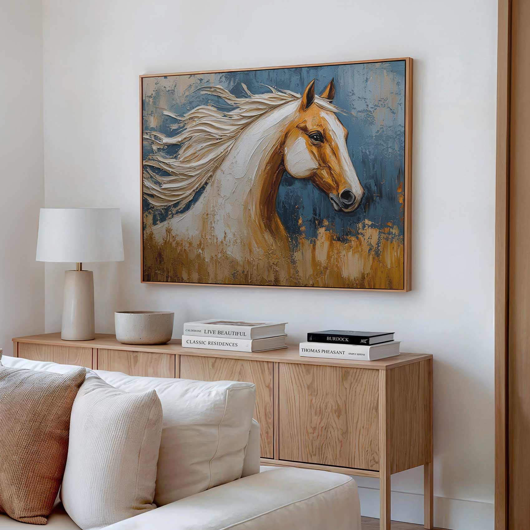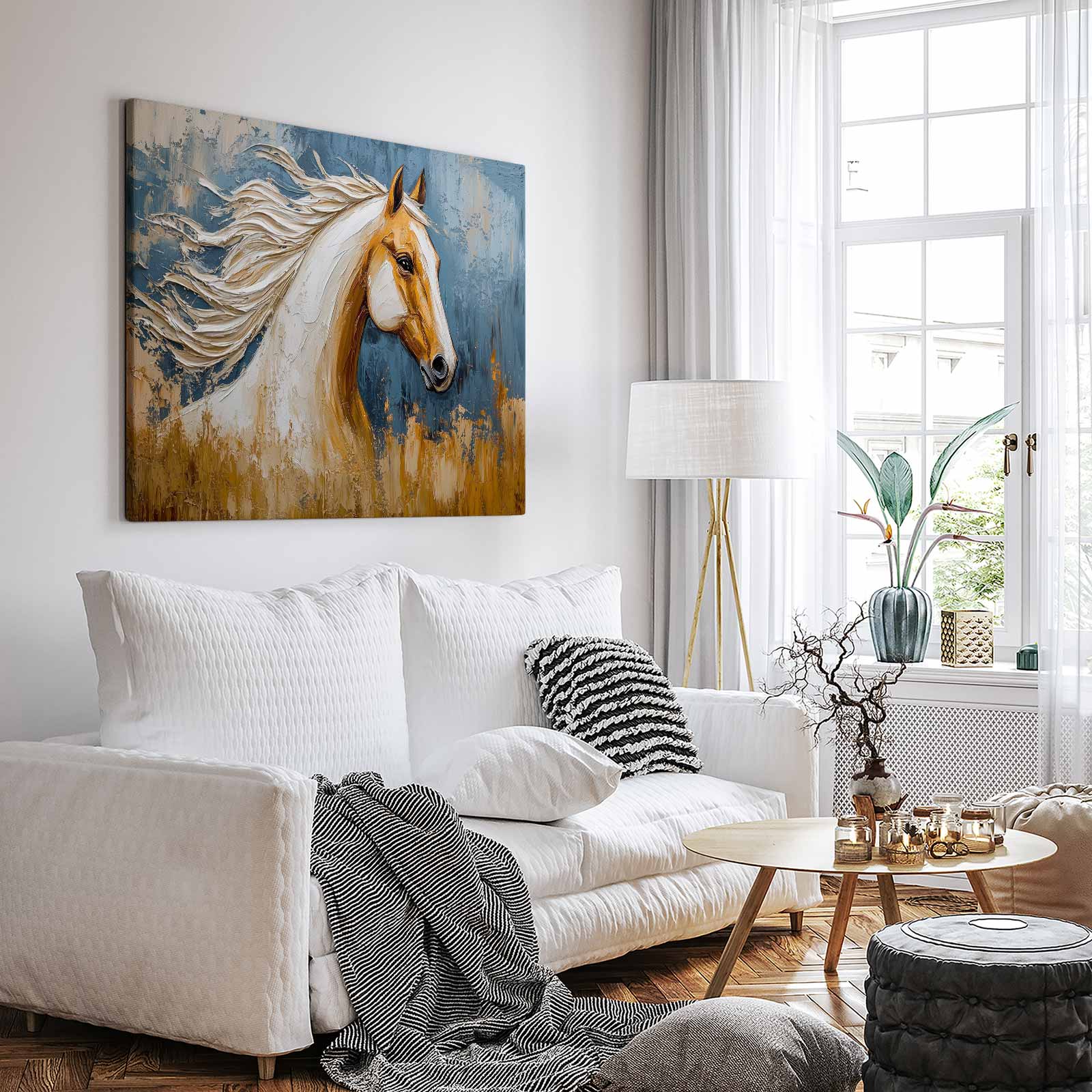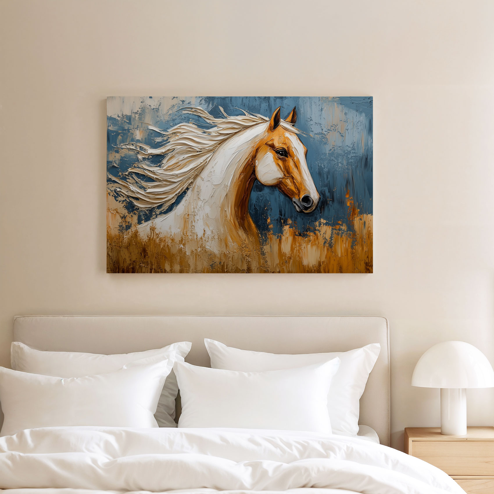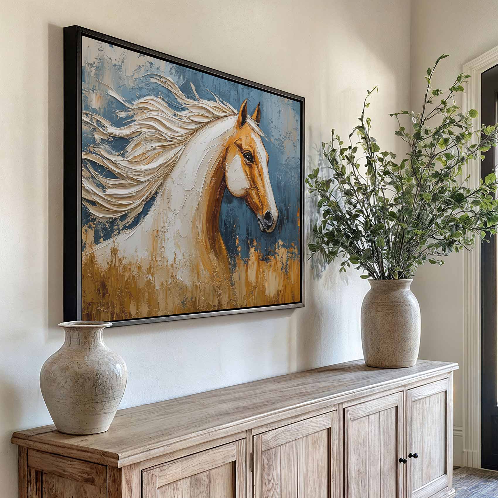 Terug naar collectie Canvas Dynamisch blauw paardportret