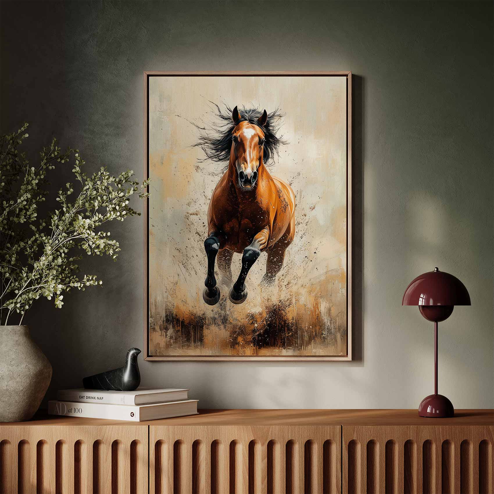 Terug naar collectie Canvas Dynamische galopperende bruine paard