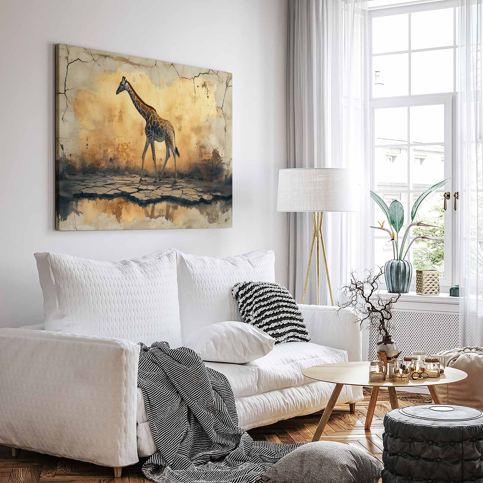 Eenzame giraf in woestijn