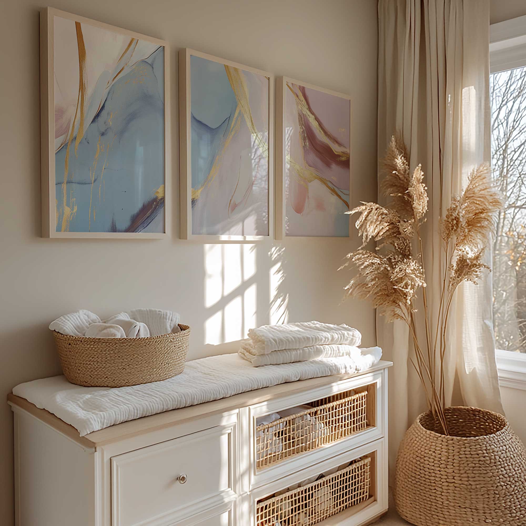 Elegante Abstracte Beweging in Blauw, Roze en Goud