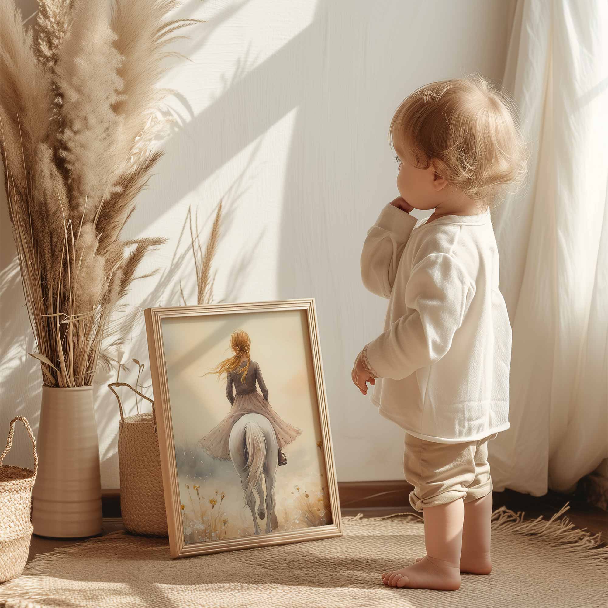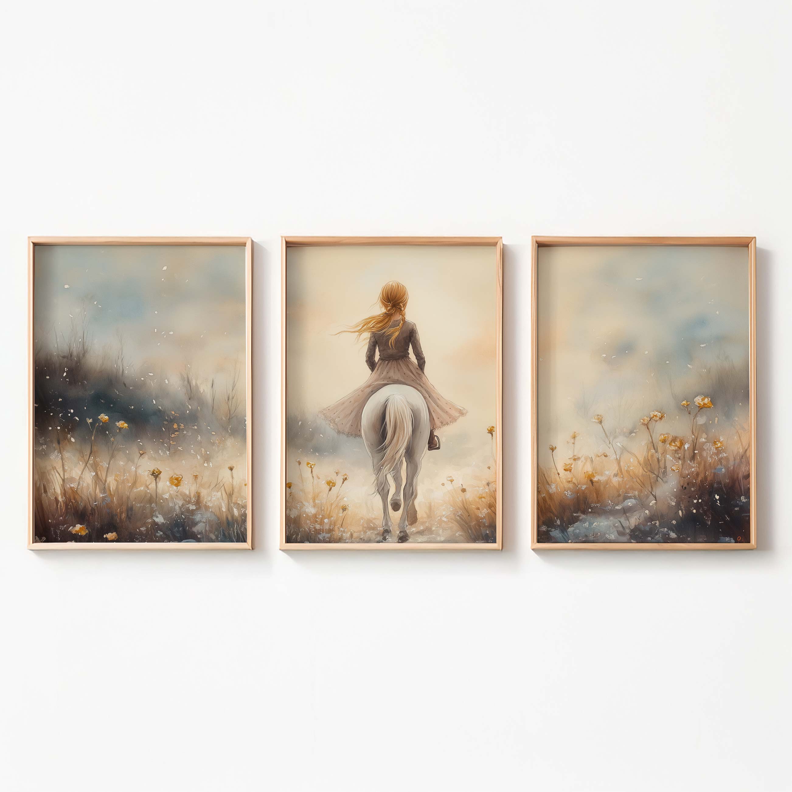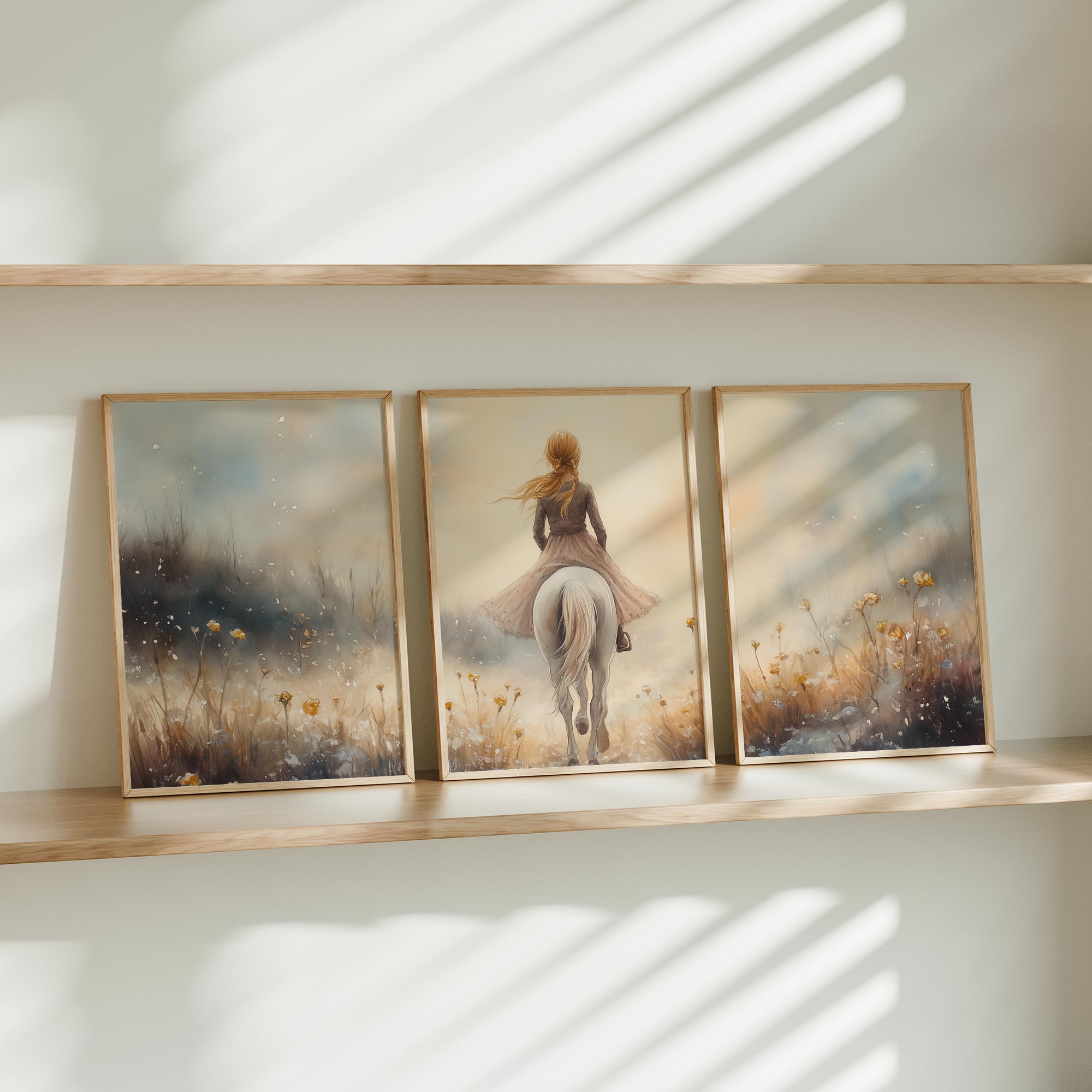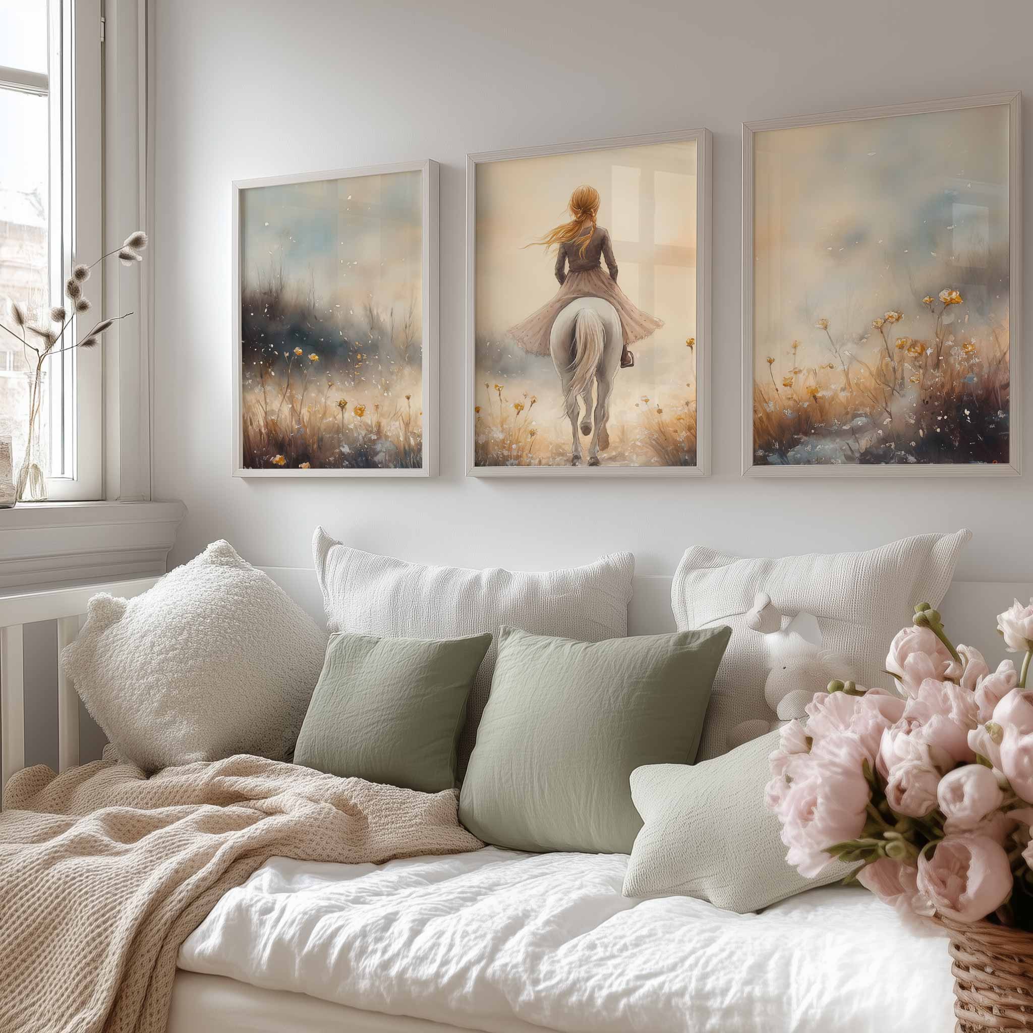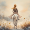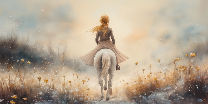 Elegante Dame op Wit Paard in Bloemenveld