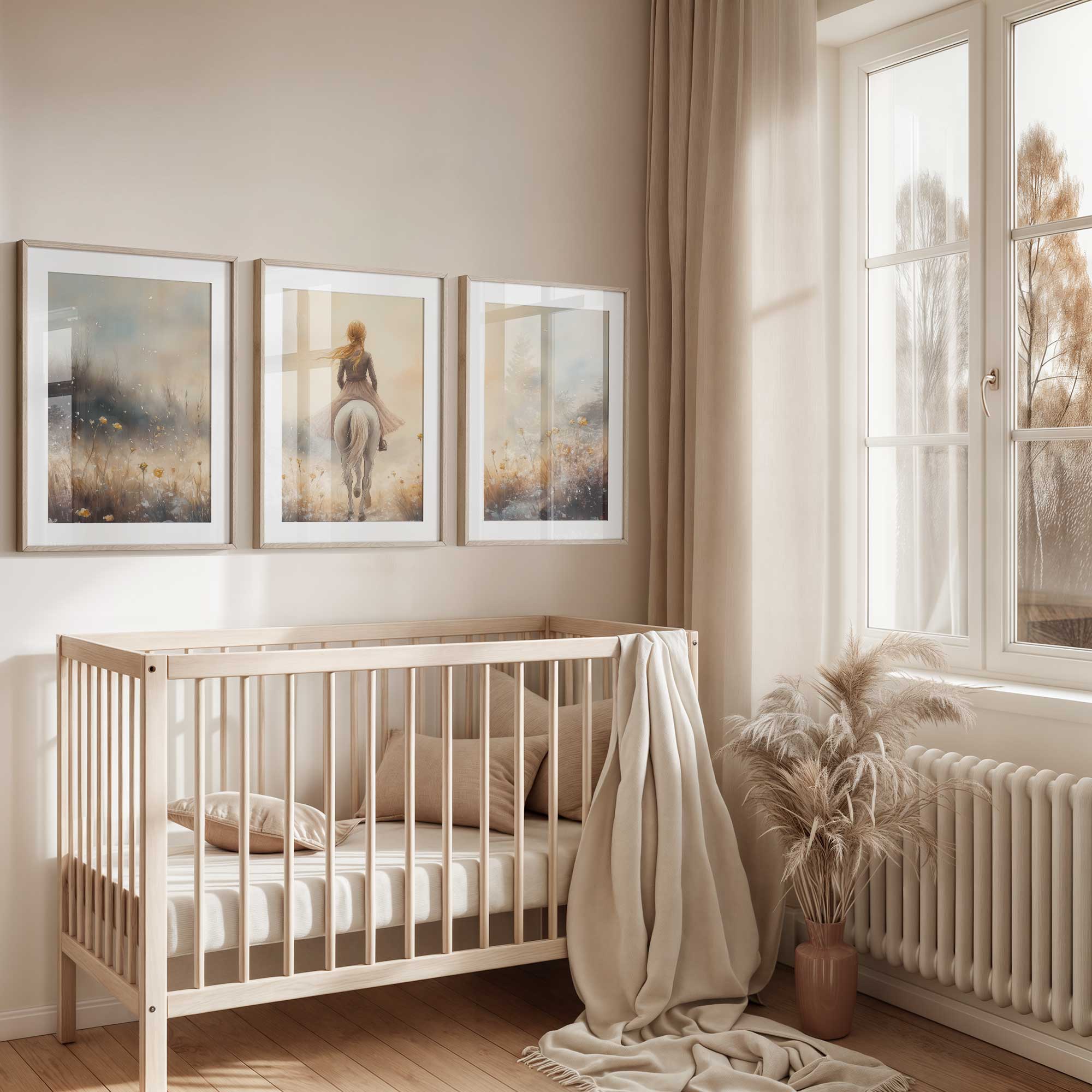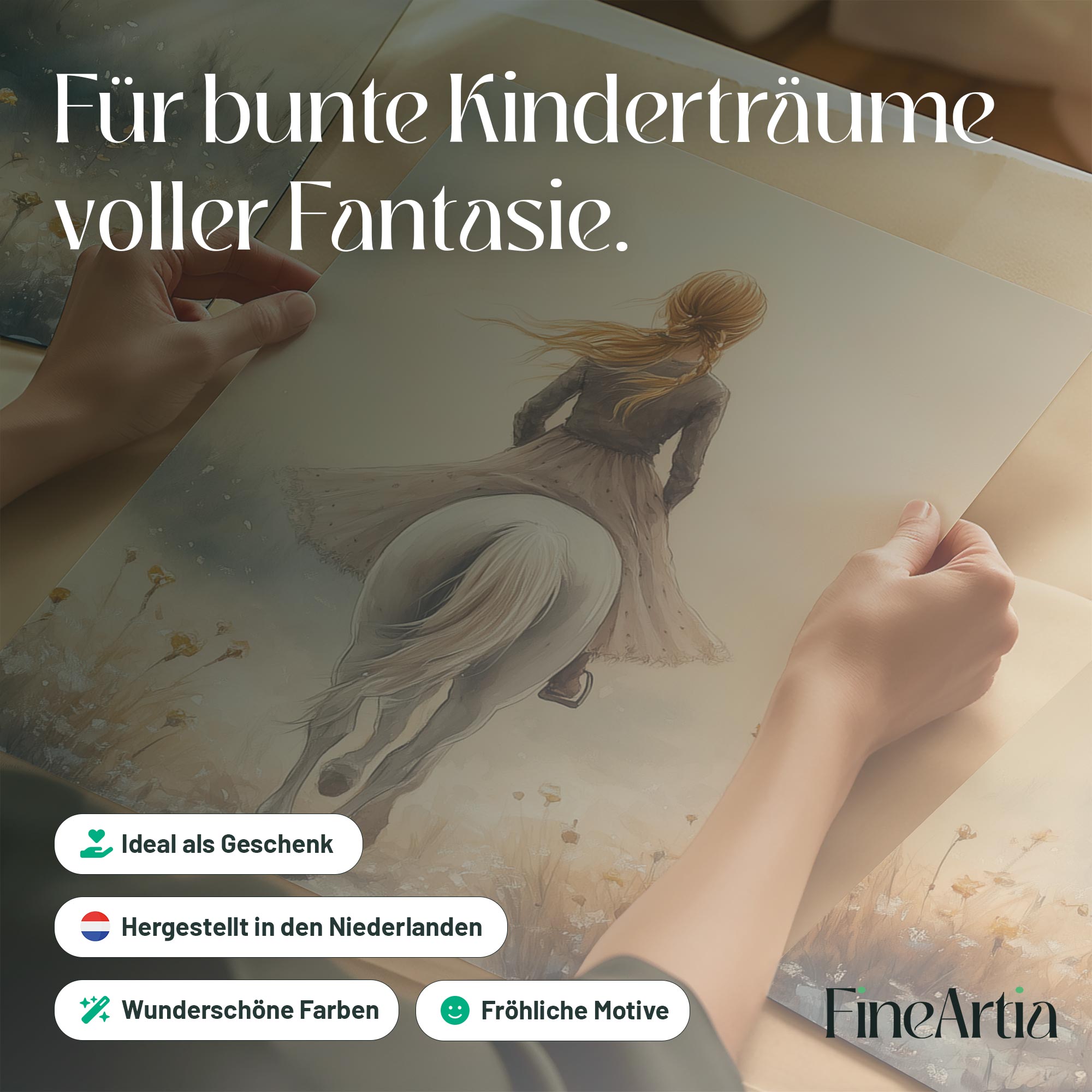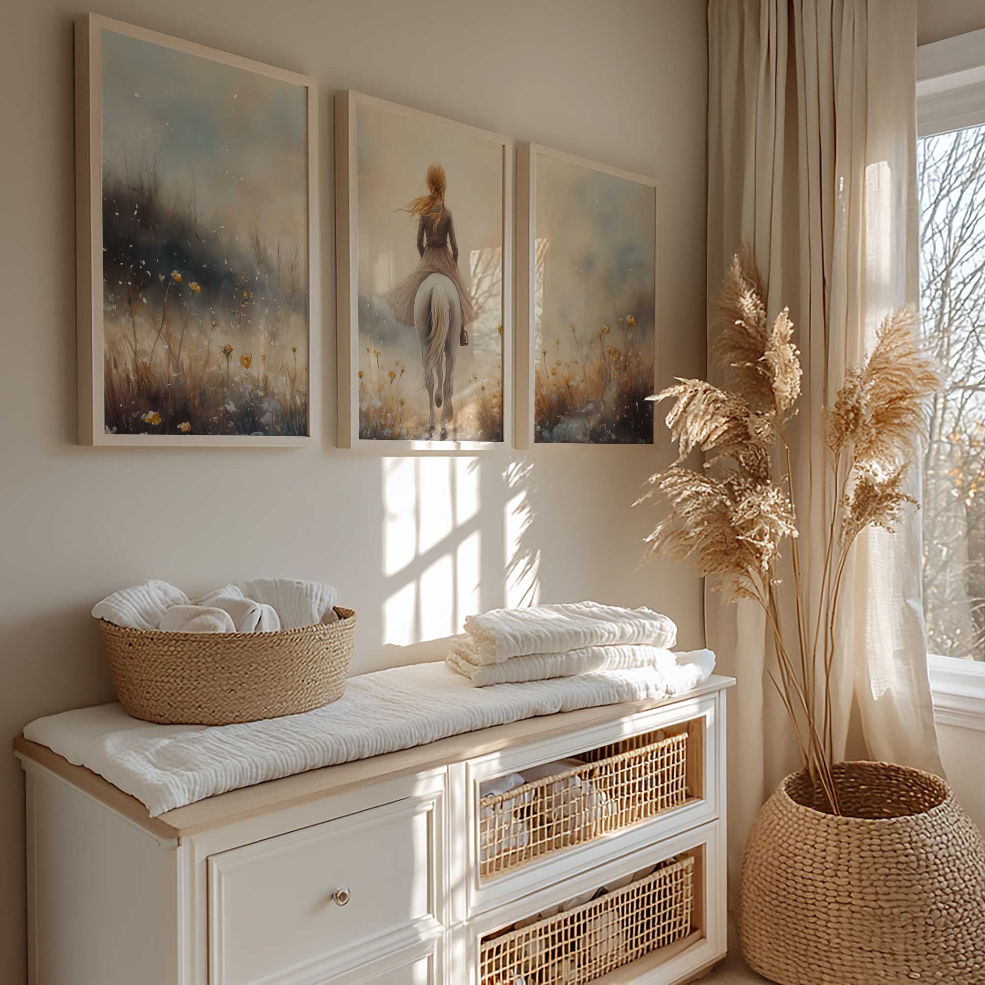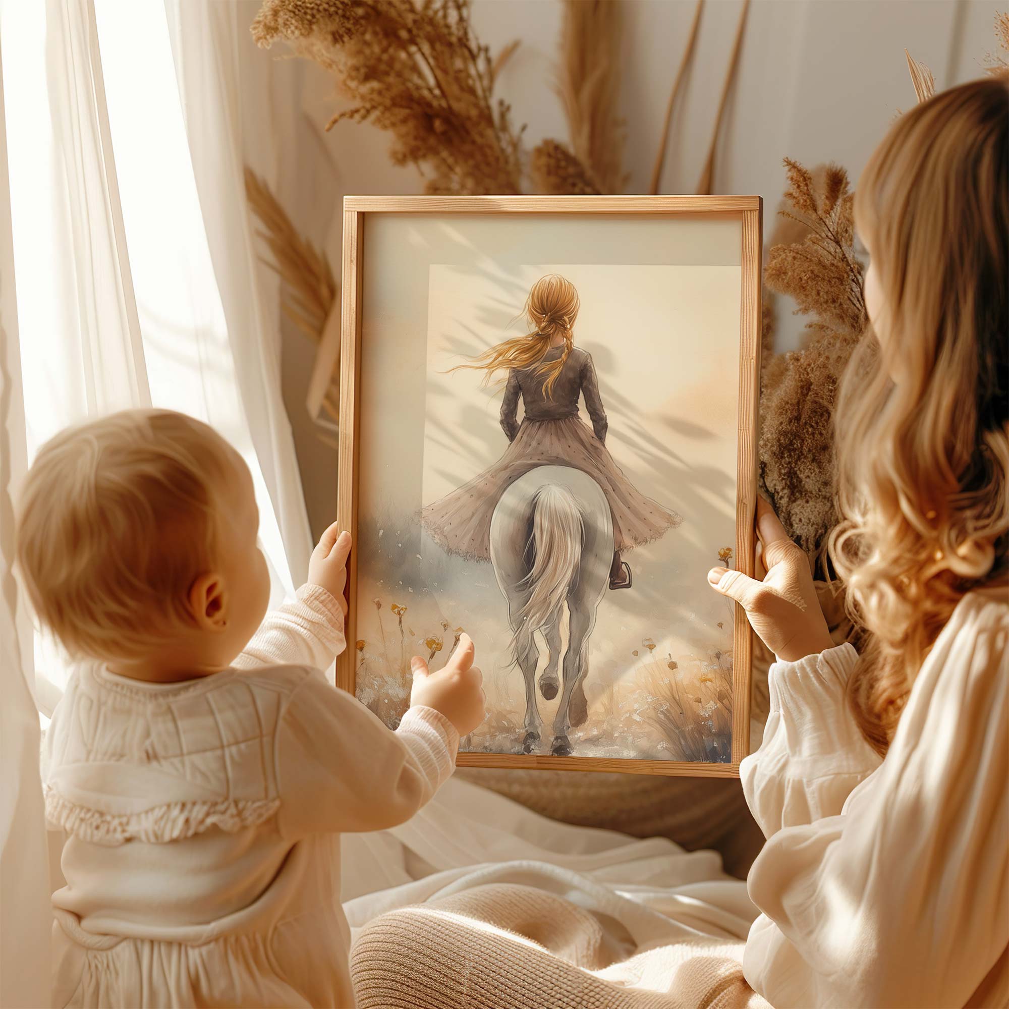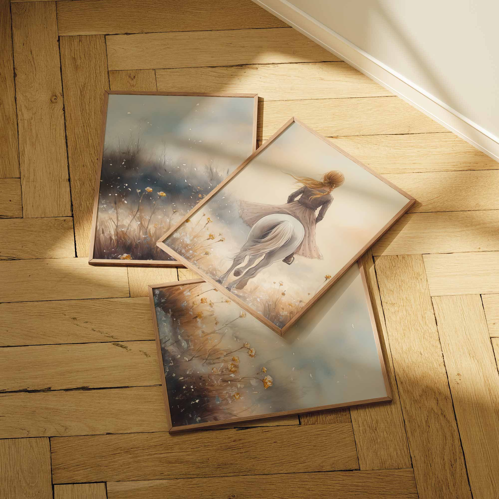 Elegante Dame op Wit Paard in Bloemenveld
