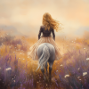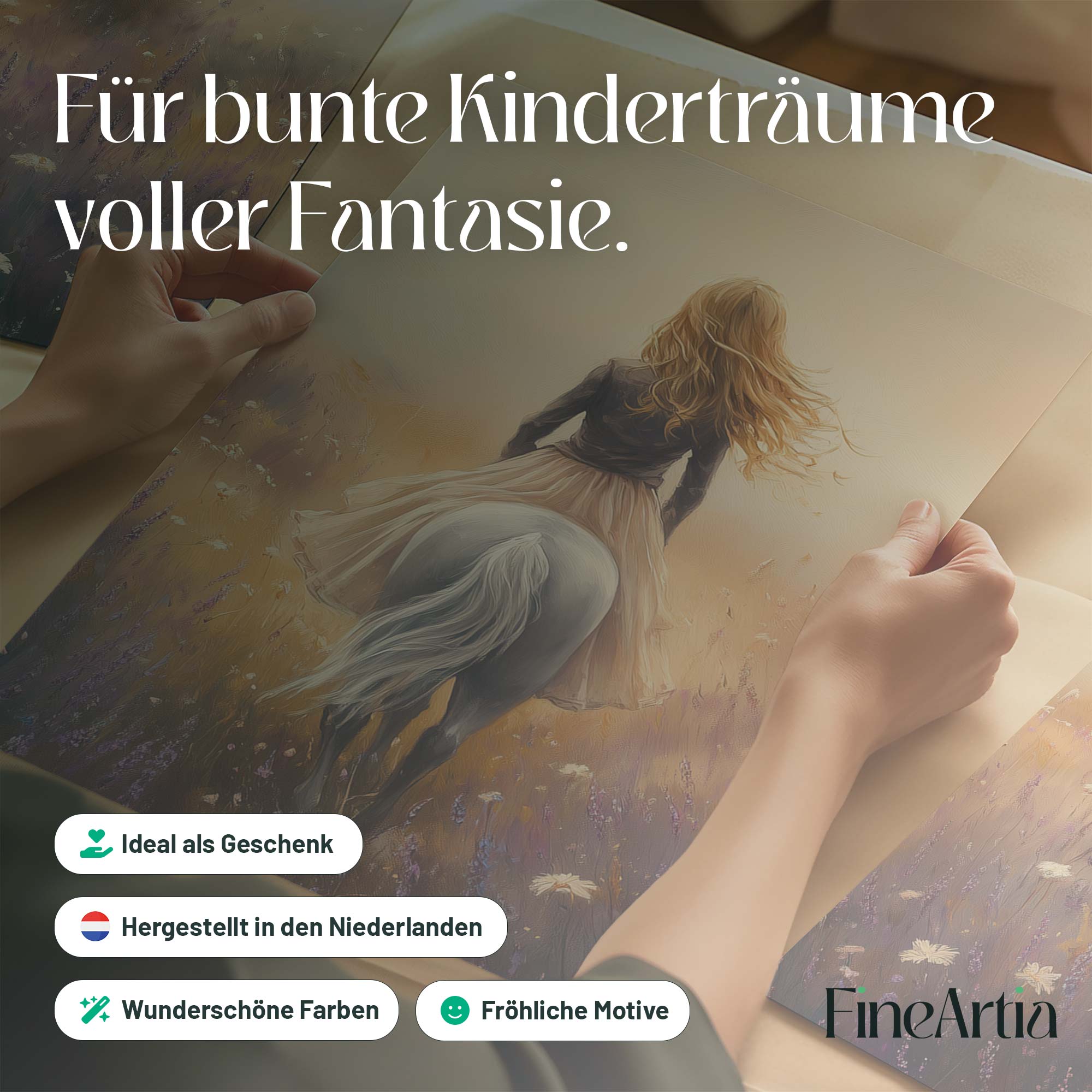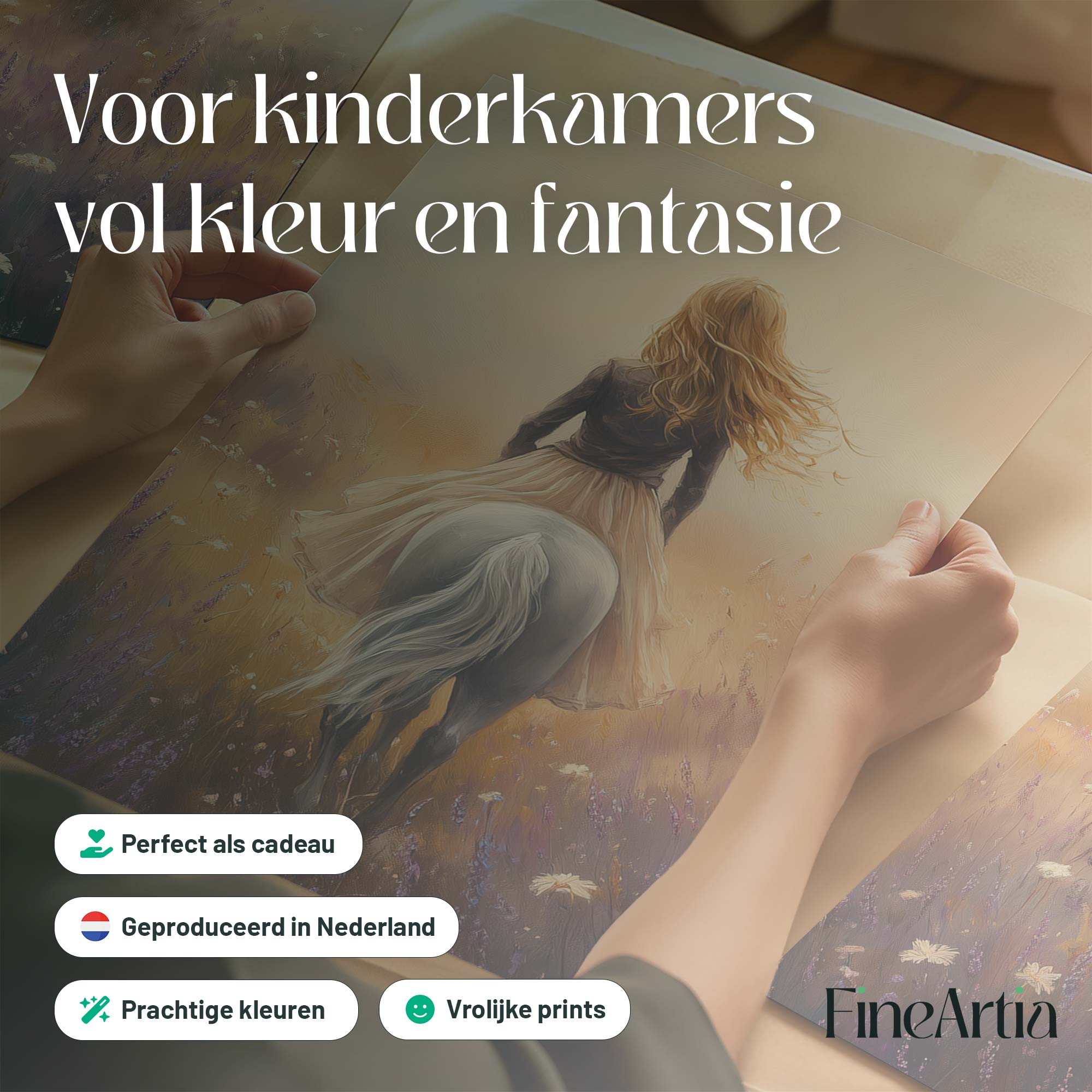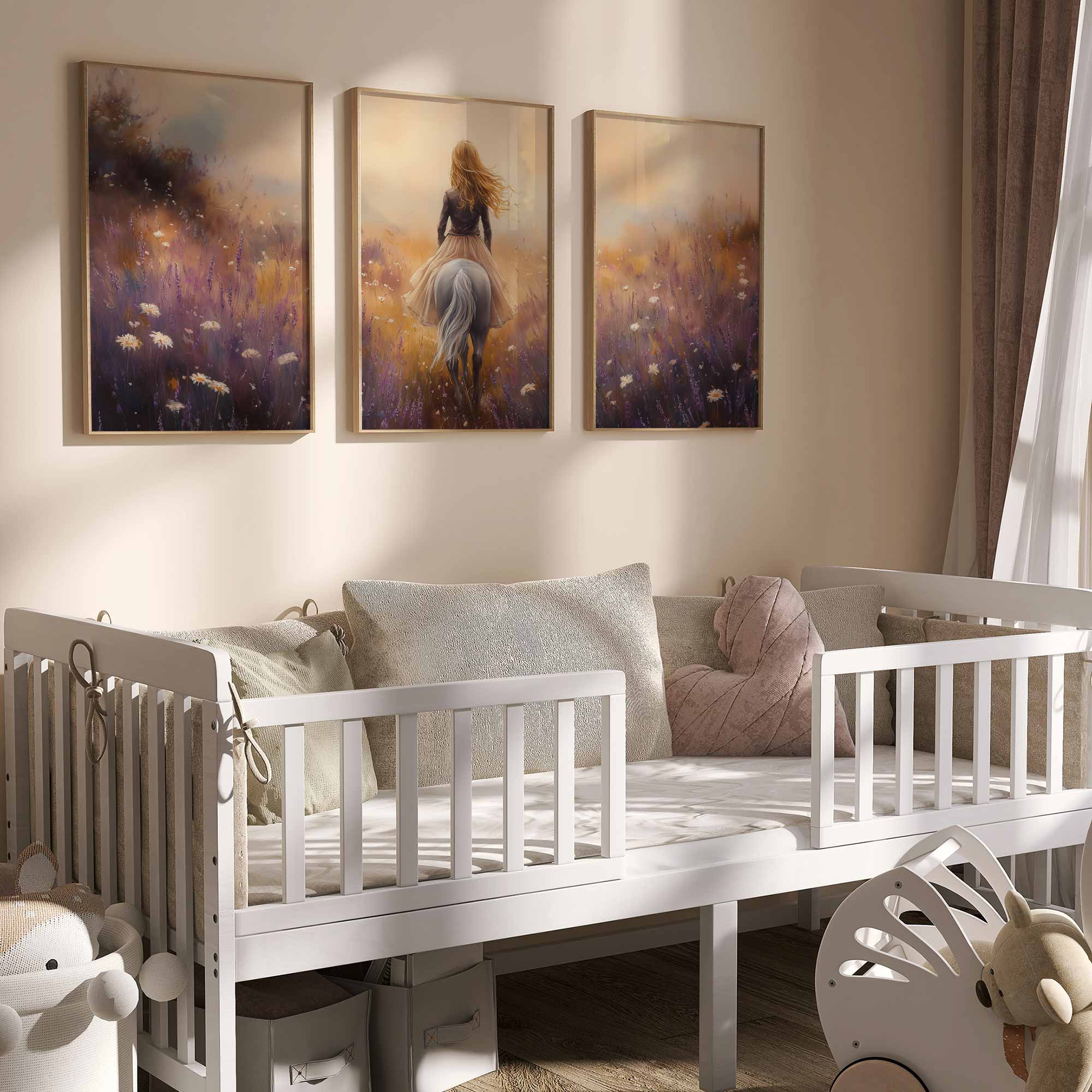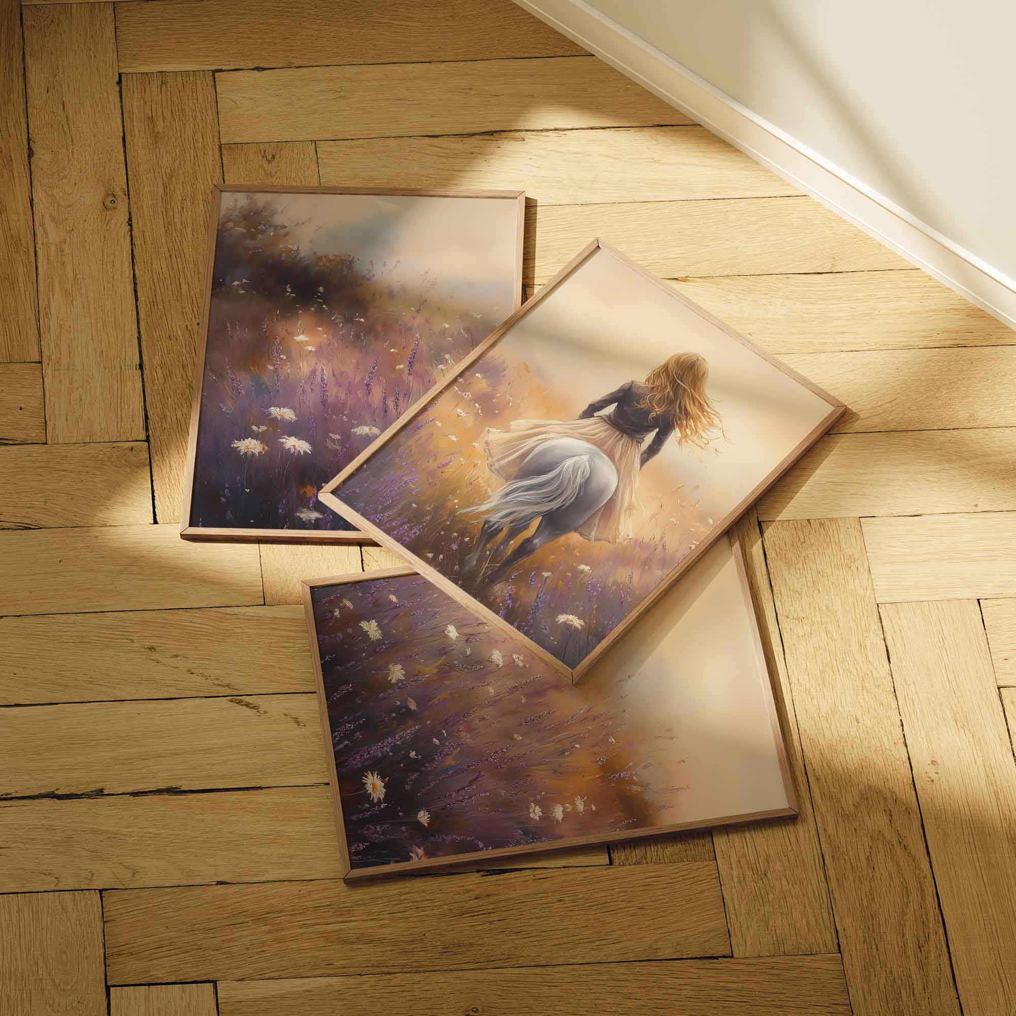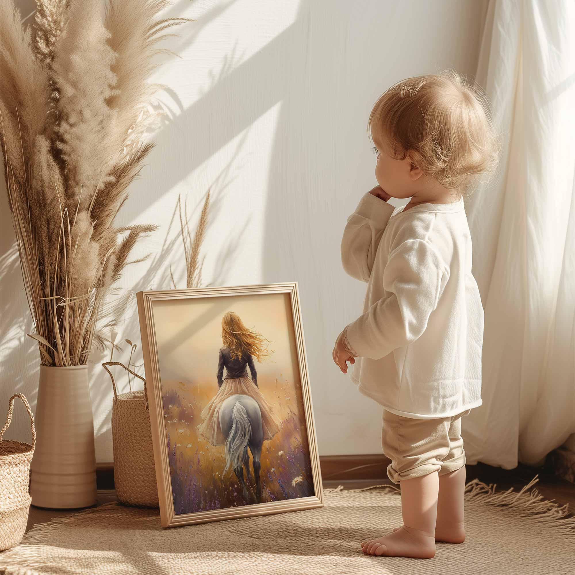 Elegante Dame te Paard in Bloeiend Paars Landschap