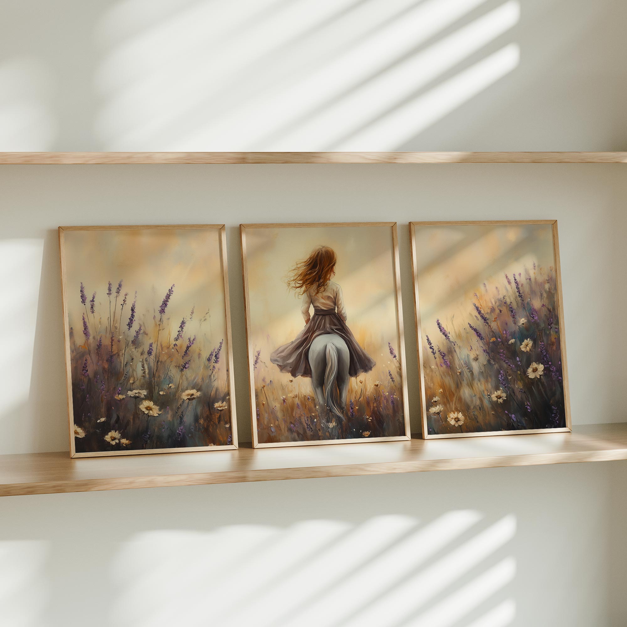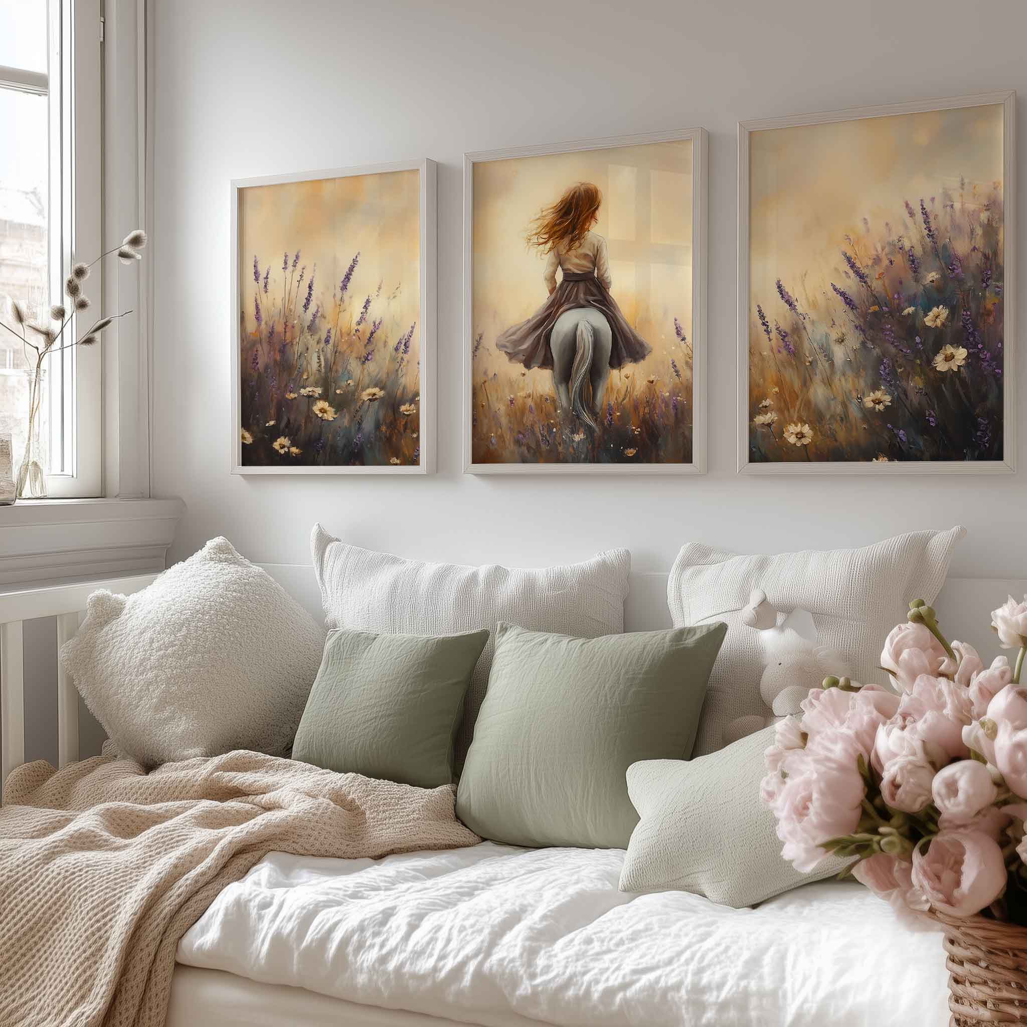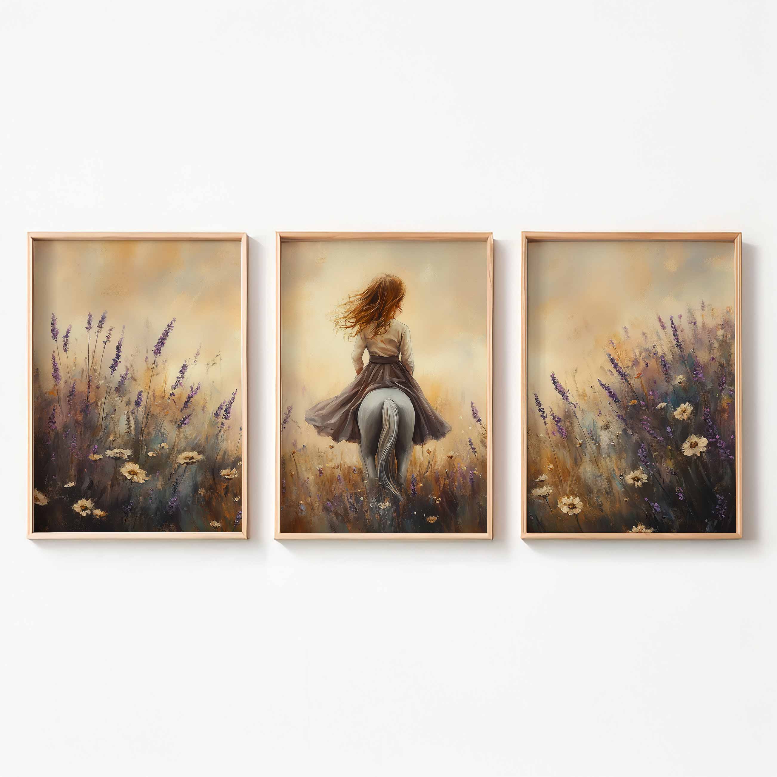 Elegante dame te paard in bloemenveld