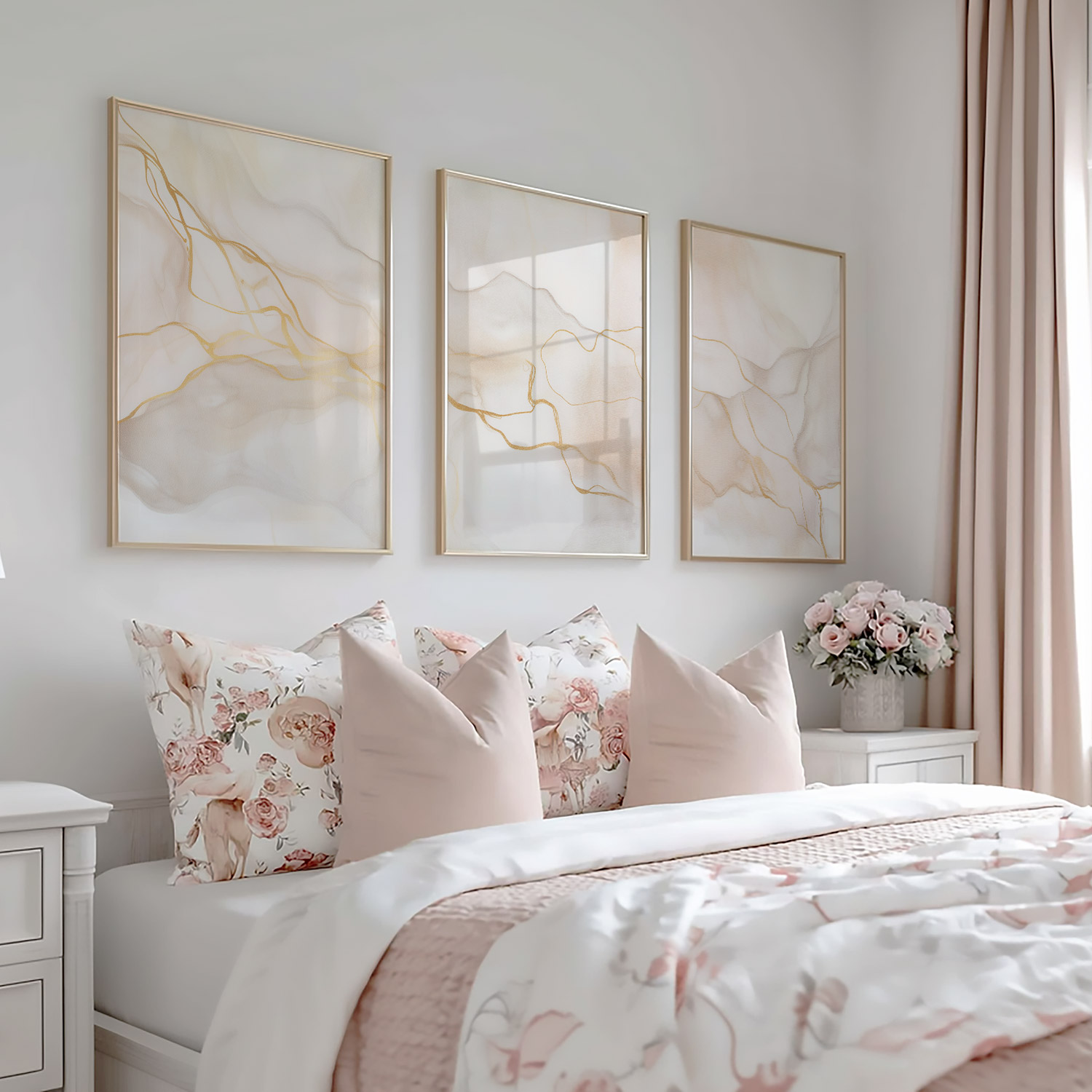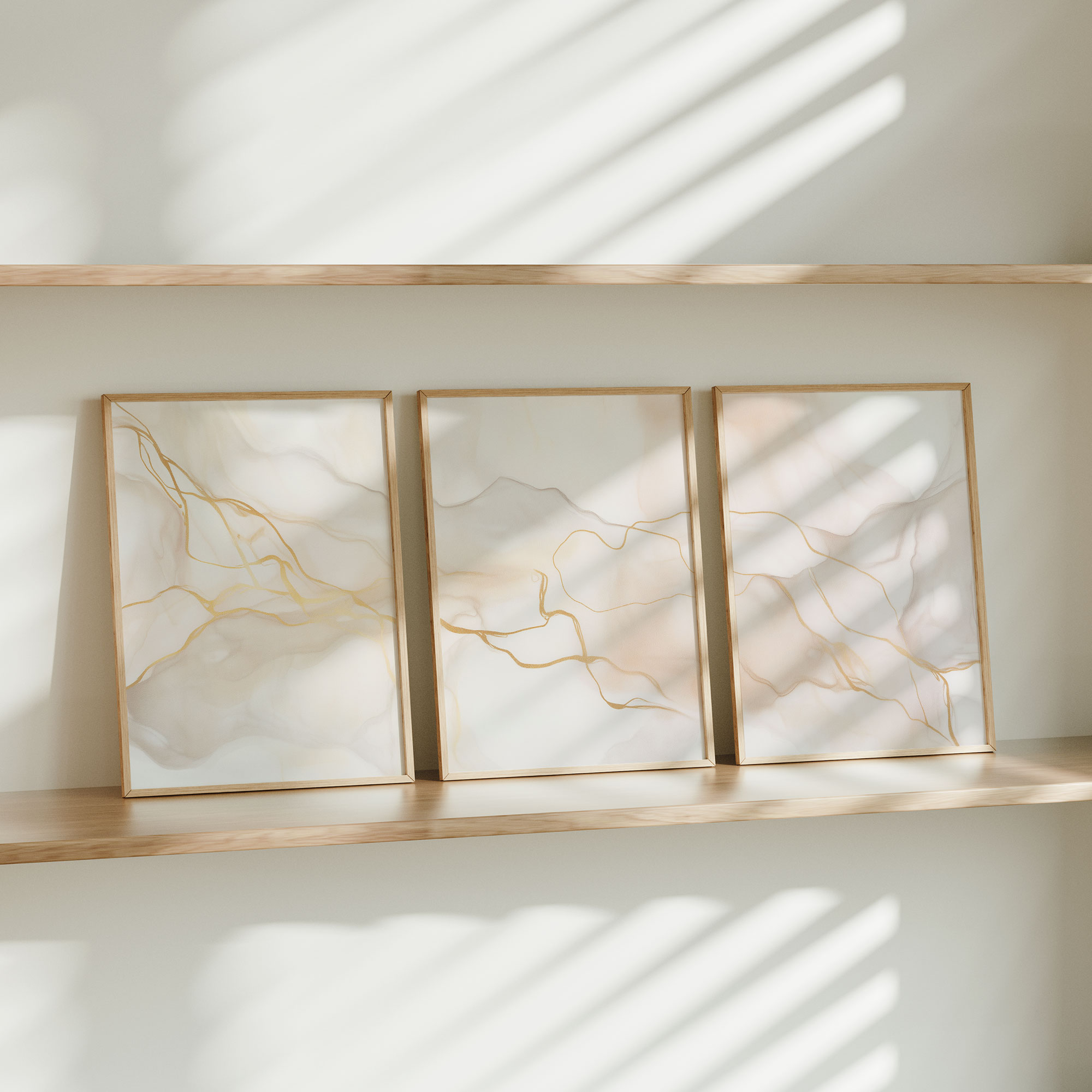 Elegante Marmeren Stroom in Wit, Beige en Goud