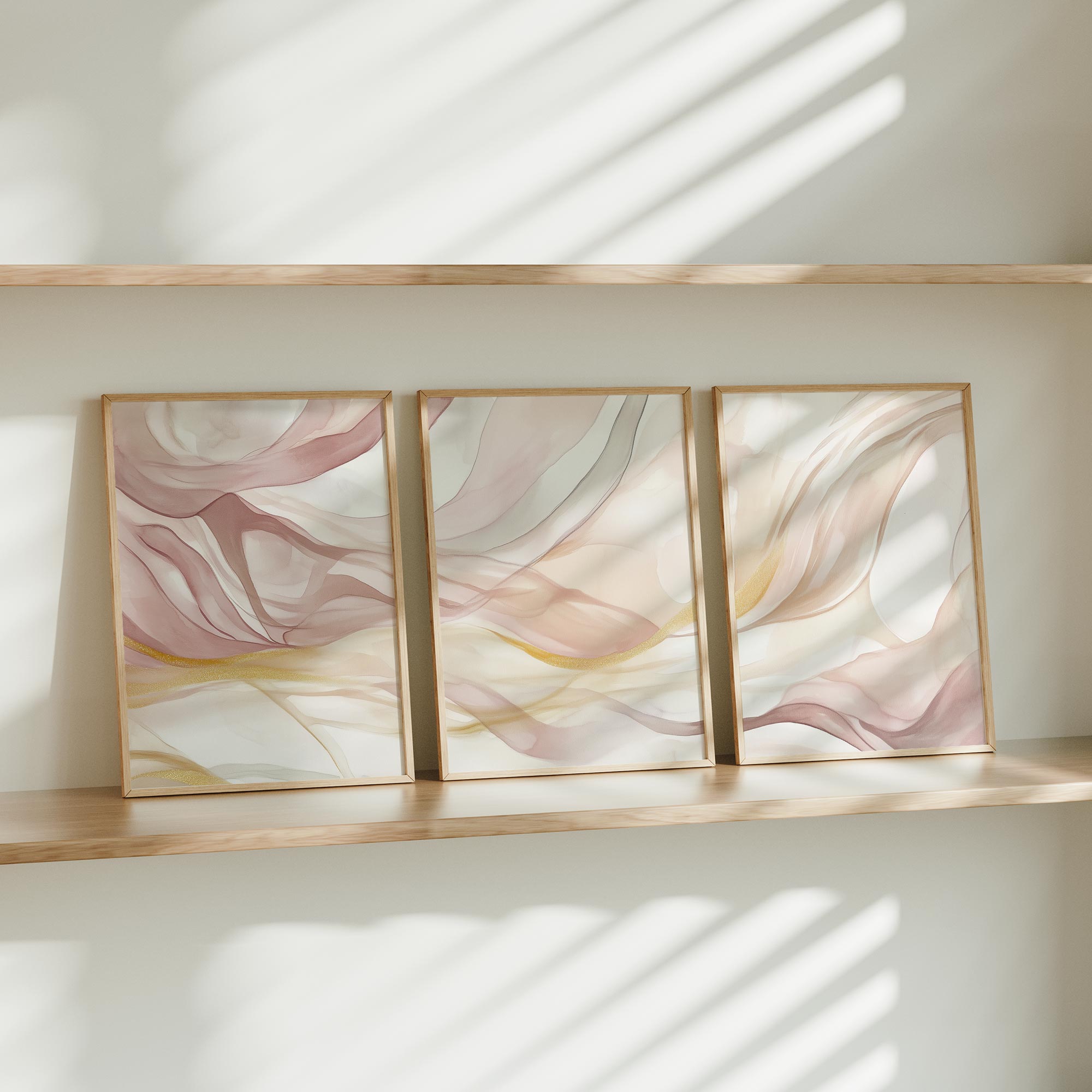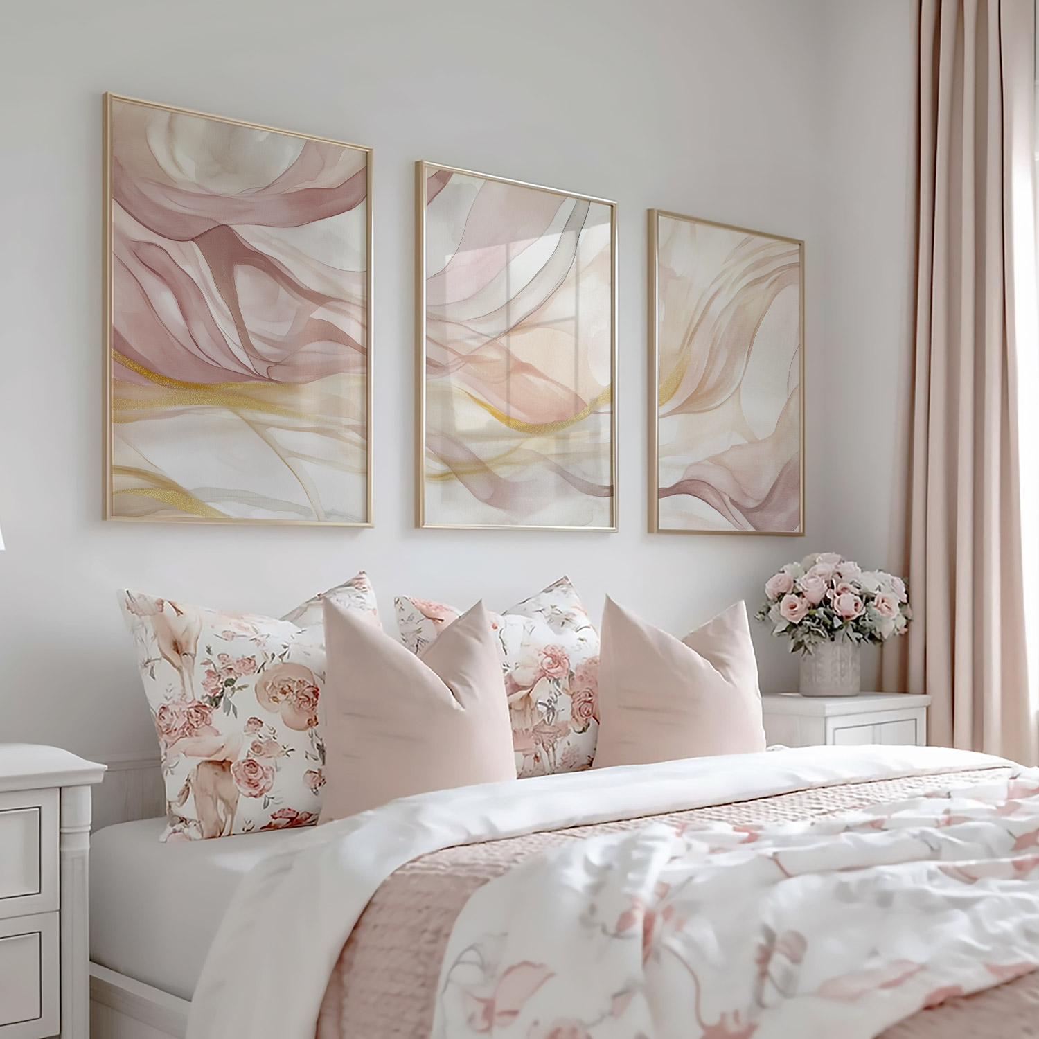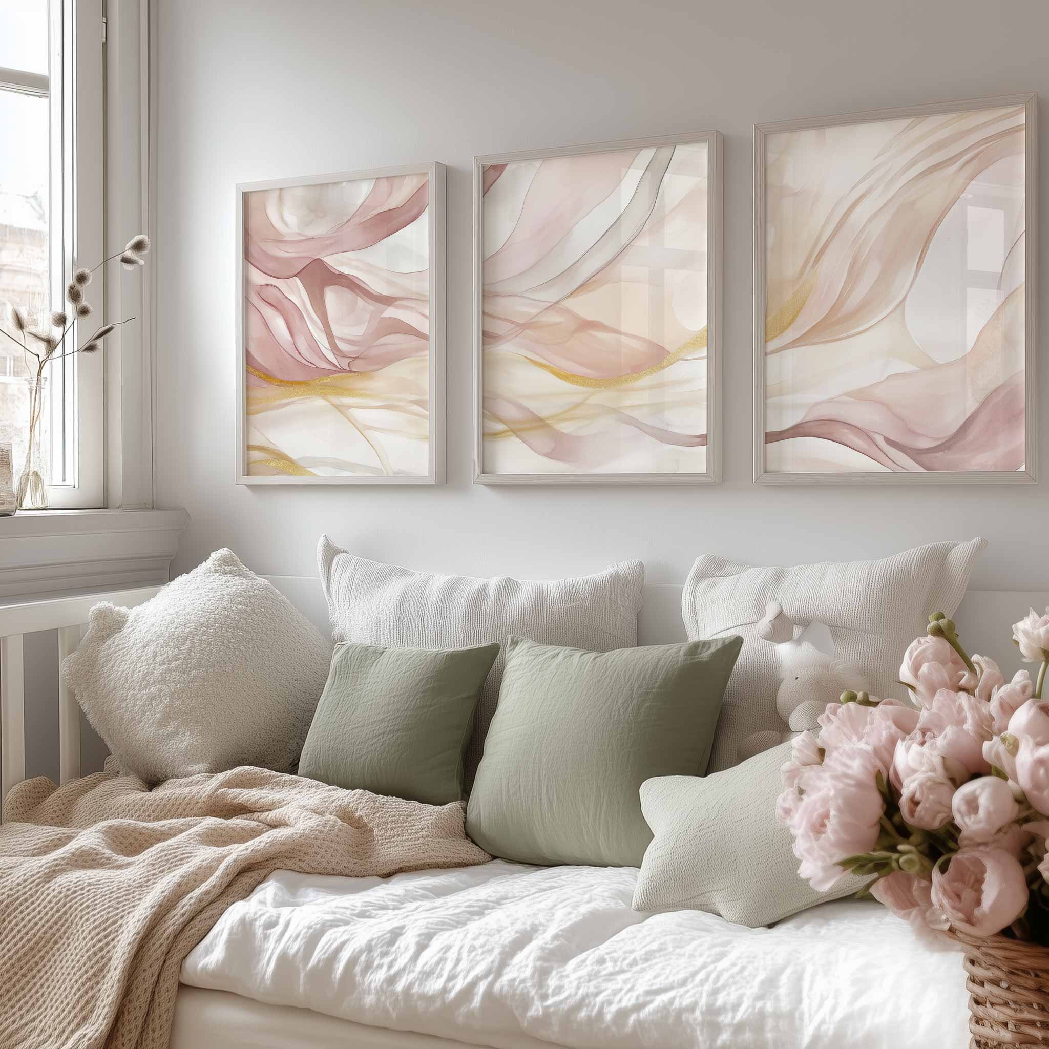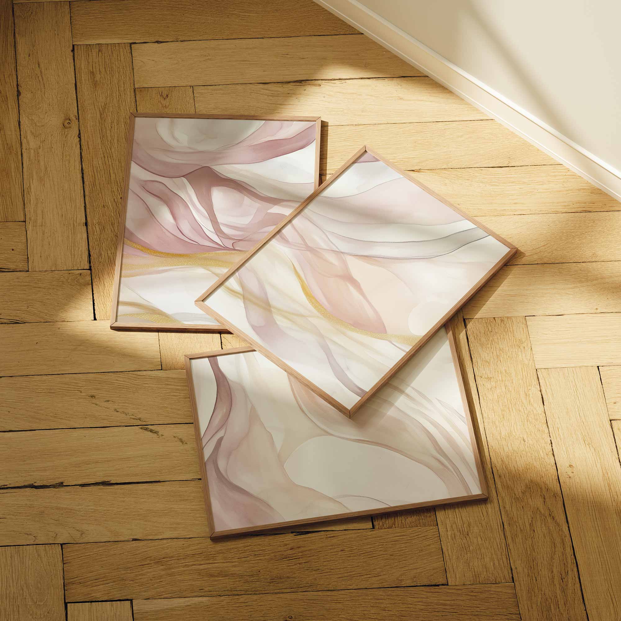 Terug naar collectie Posters Elegante Pastel Dromen: Roze en Witte Vloeiende Abstractie