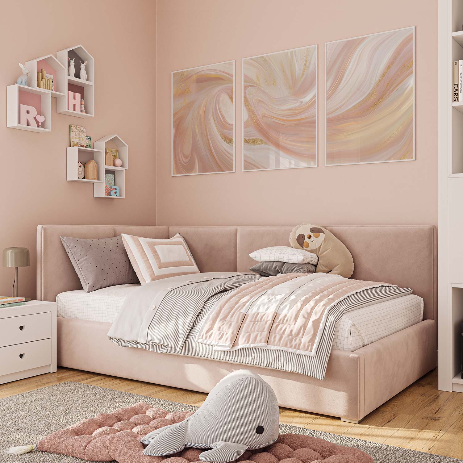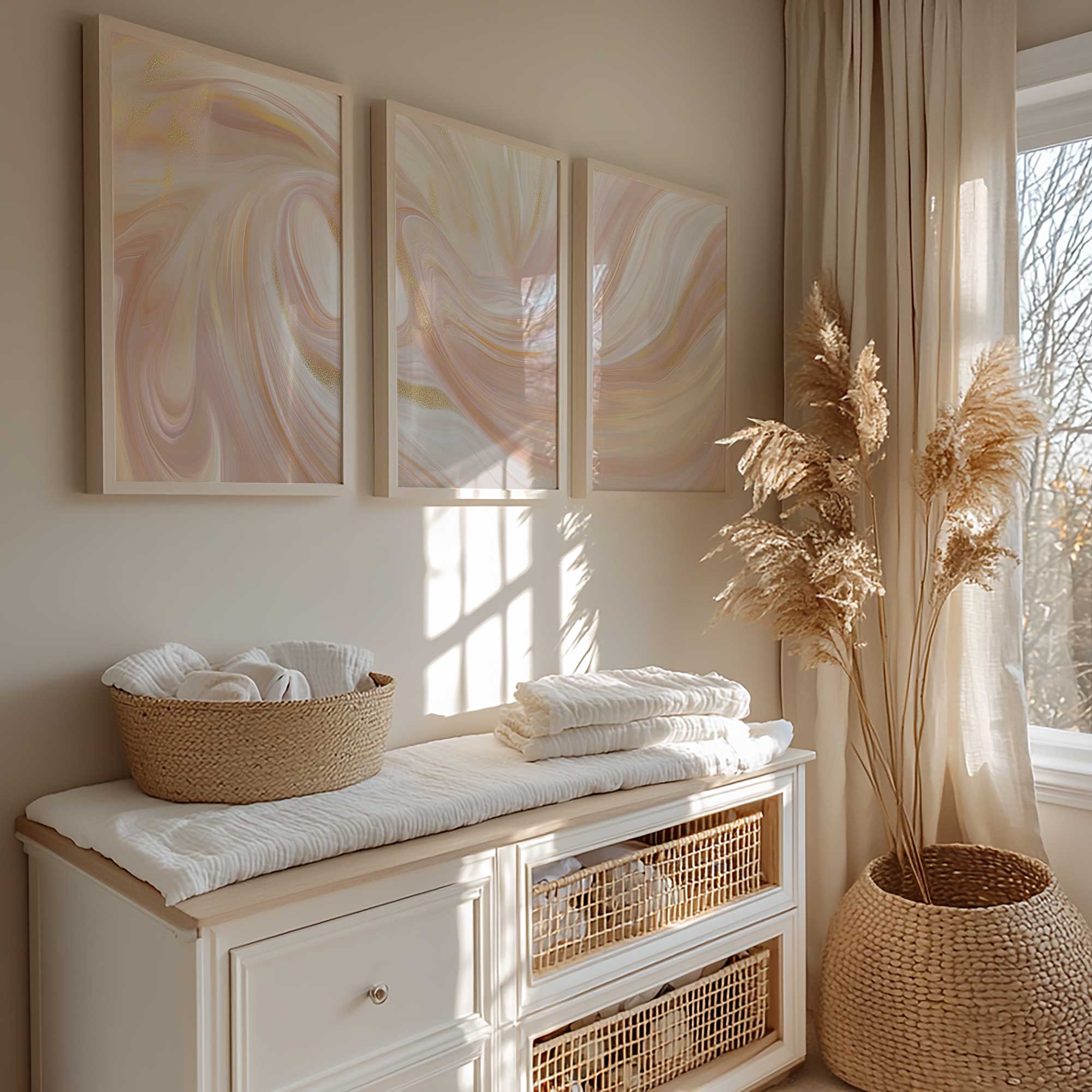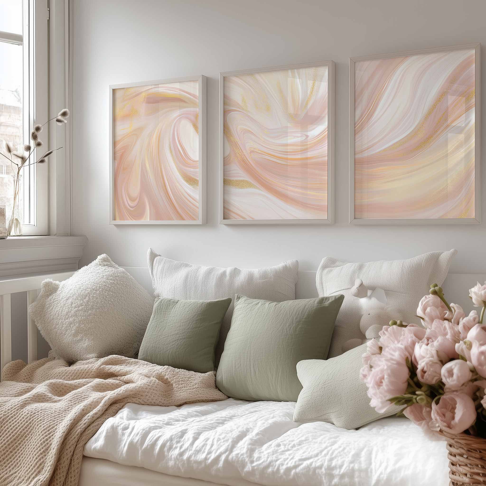 Elegante Roze Swirls met Gouden Accenten – Stijlvolle Wanddecoratie