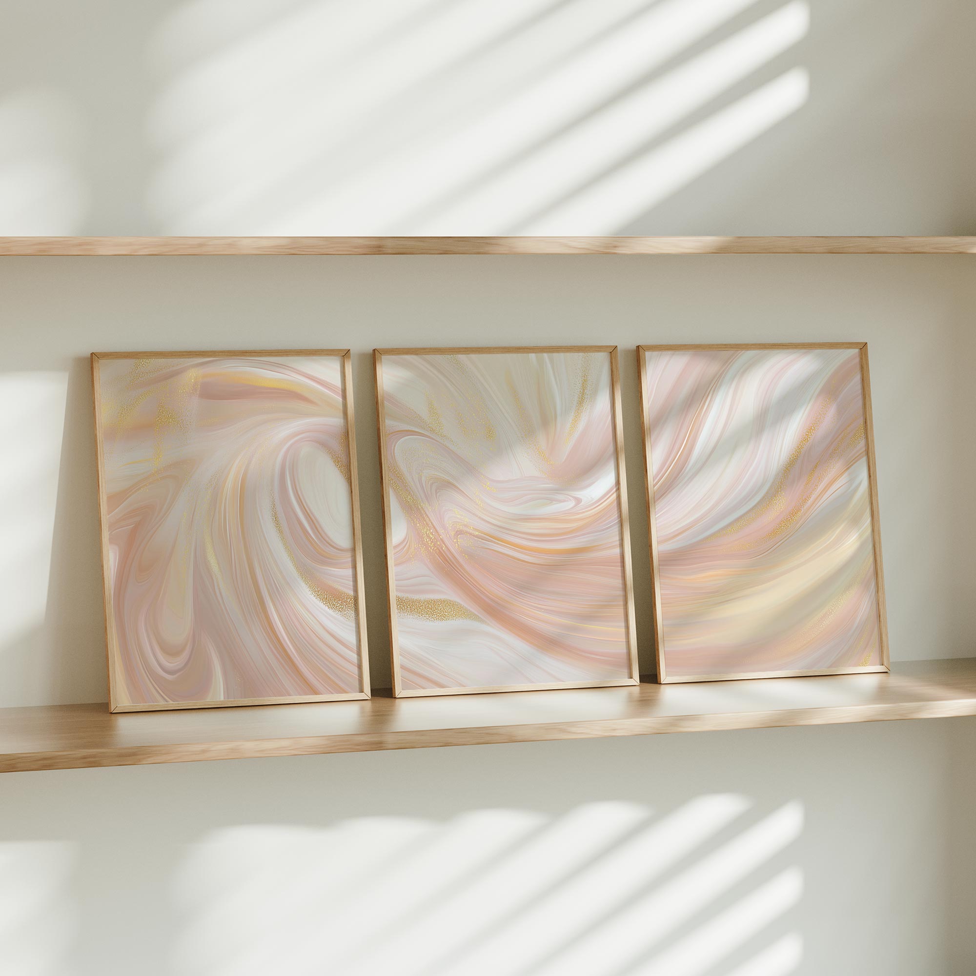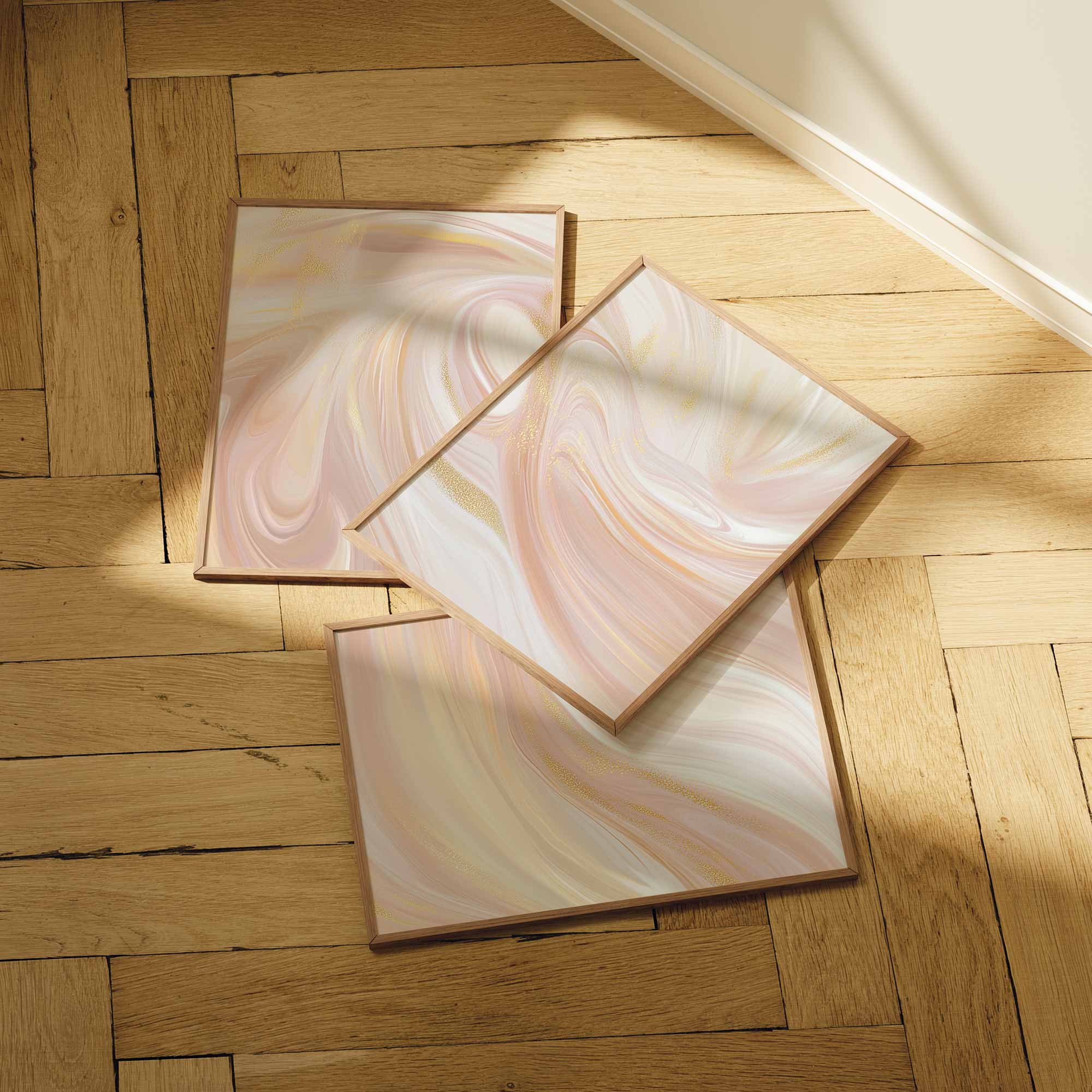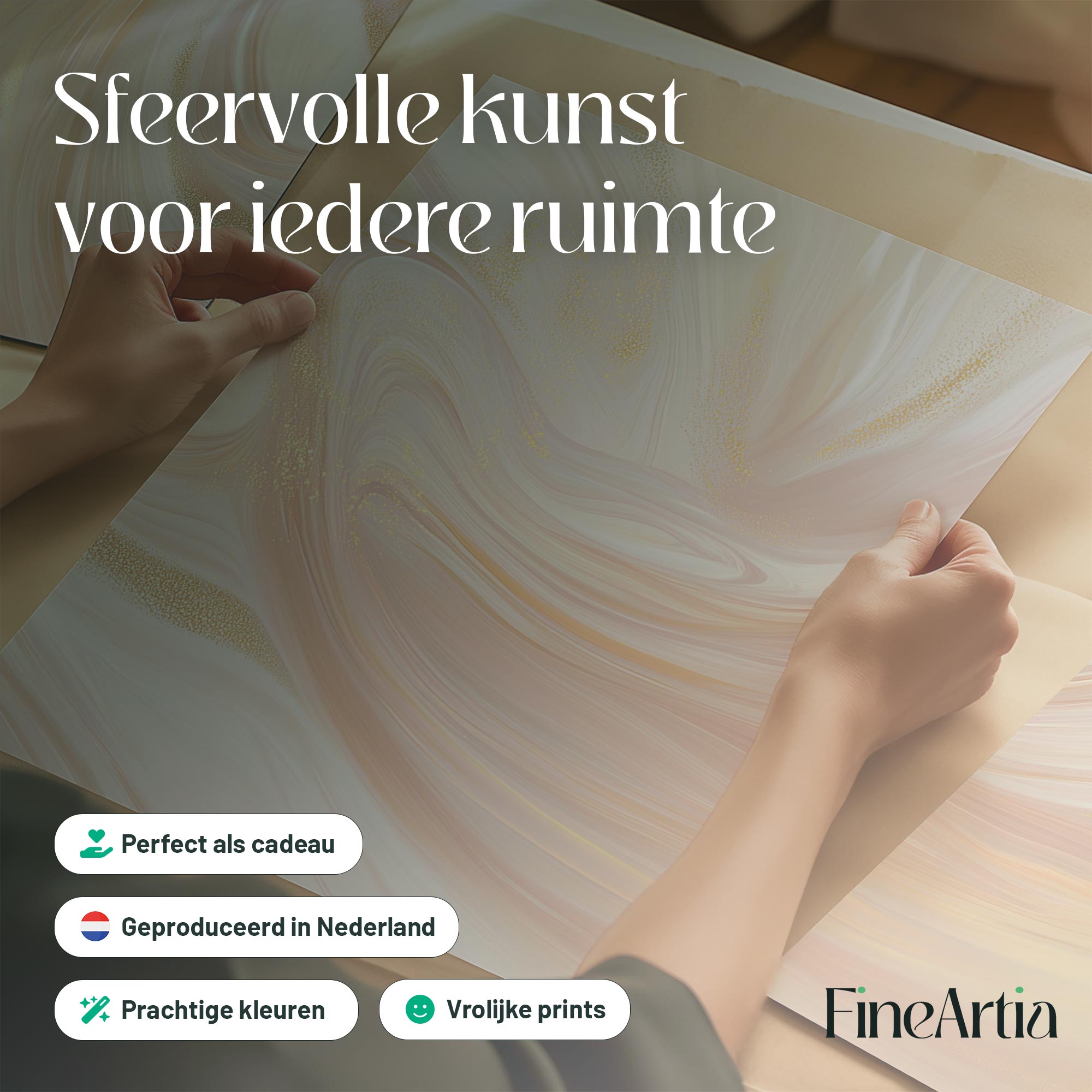 Terug naar collectie Posters Elegante Roze Swirls met Gouden Accenten – Stijlvolle Wanddecoratie