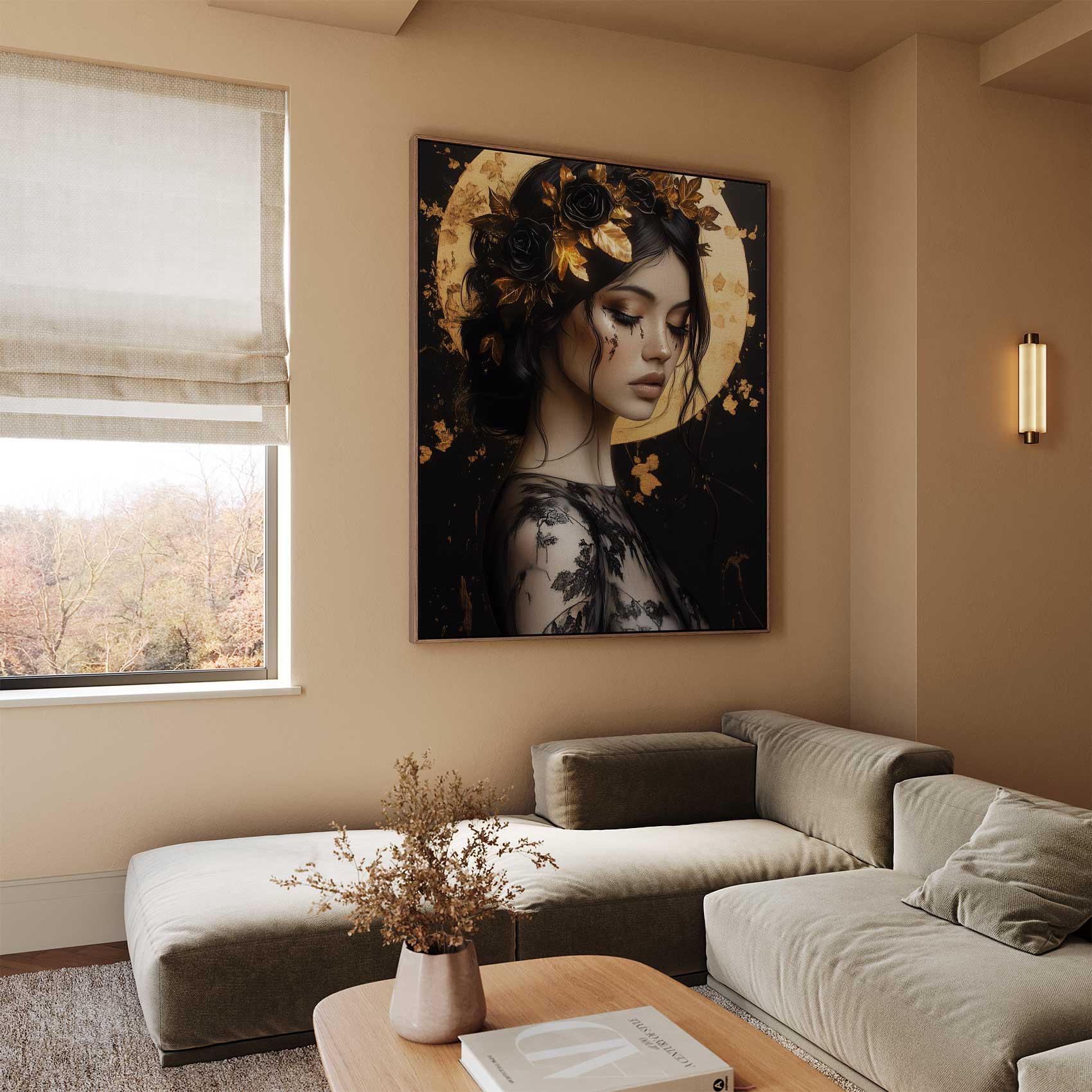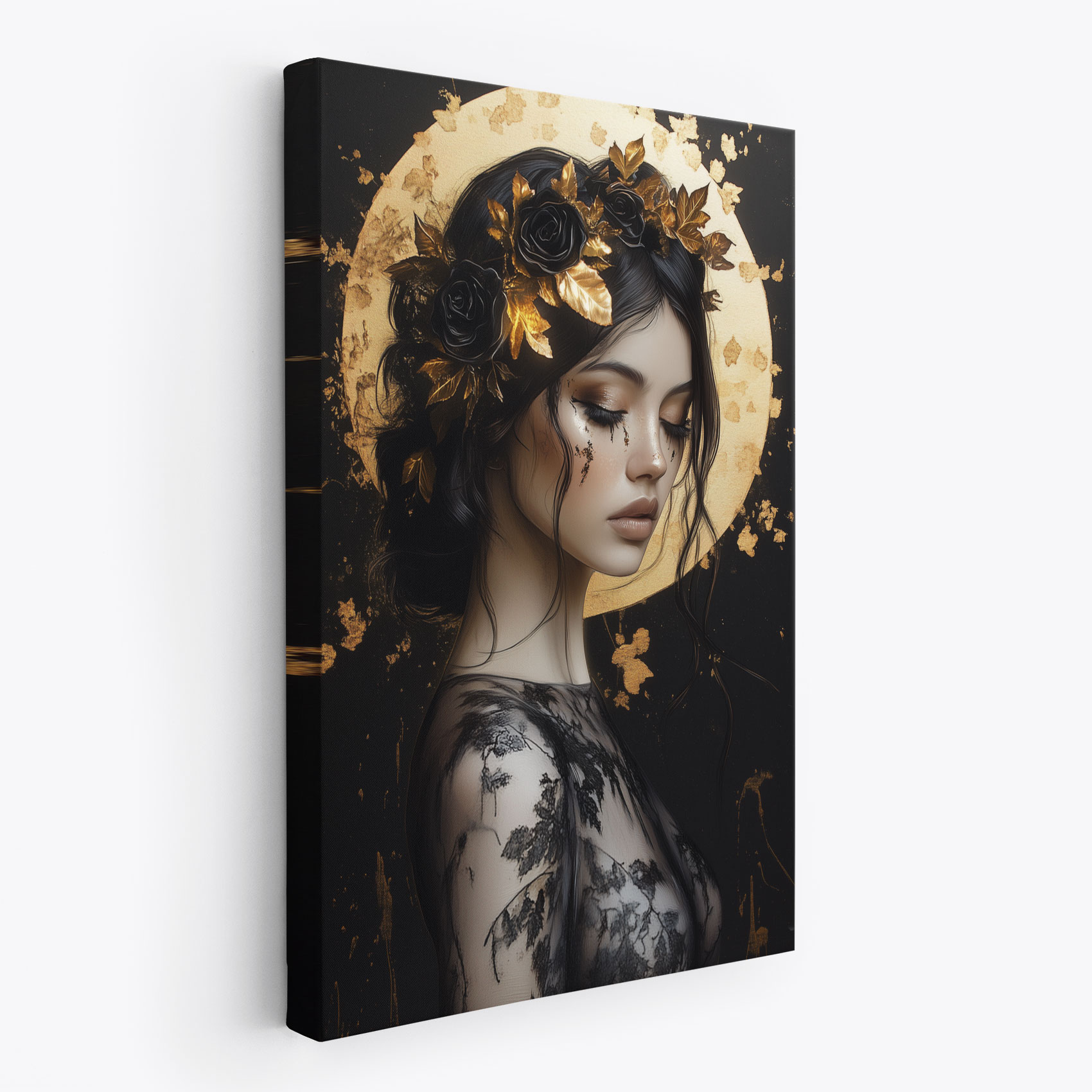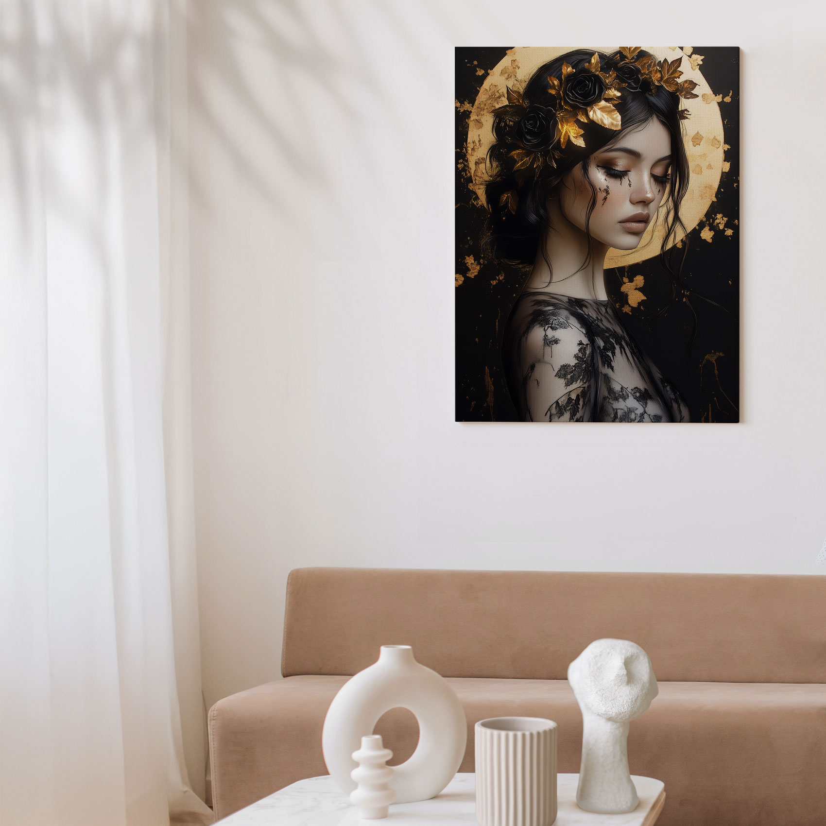 Terug naar collectie Canvas Elegante vrouw in zwart-goud