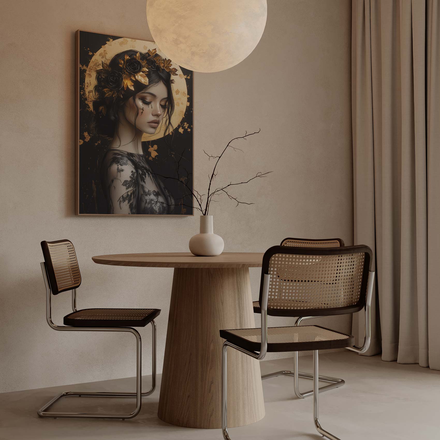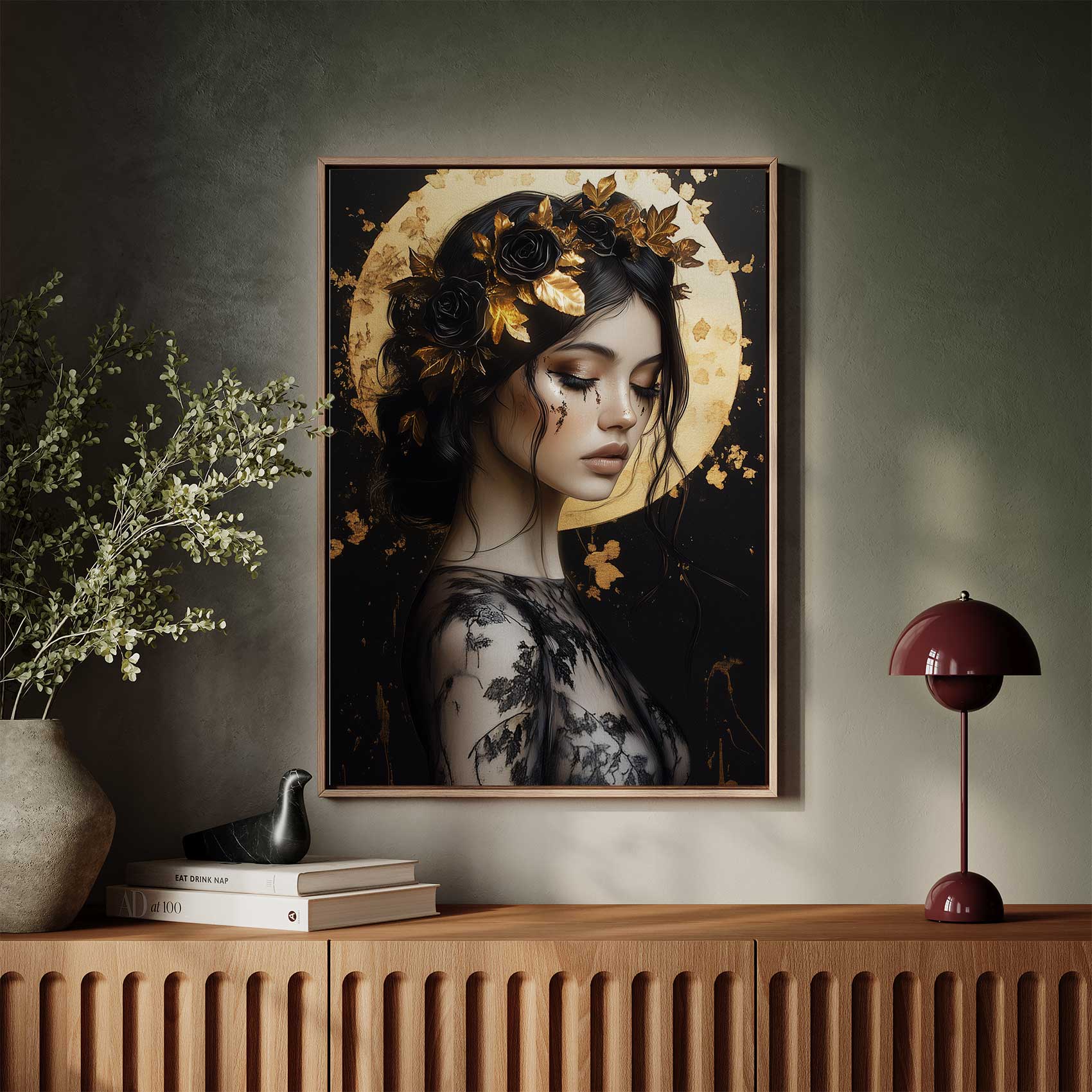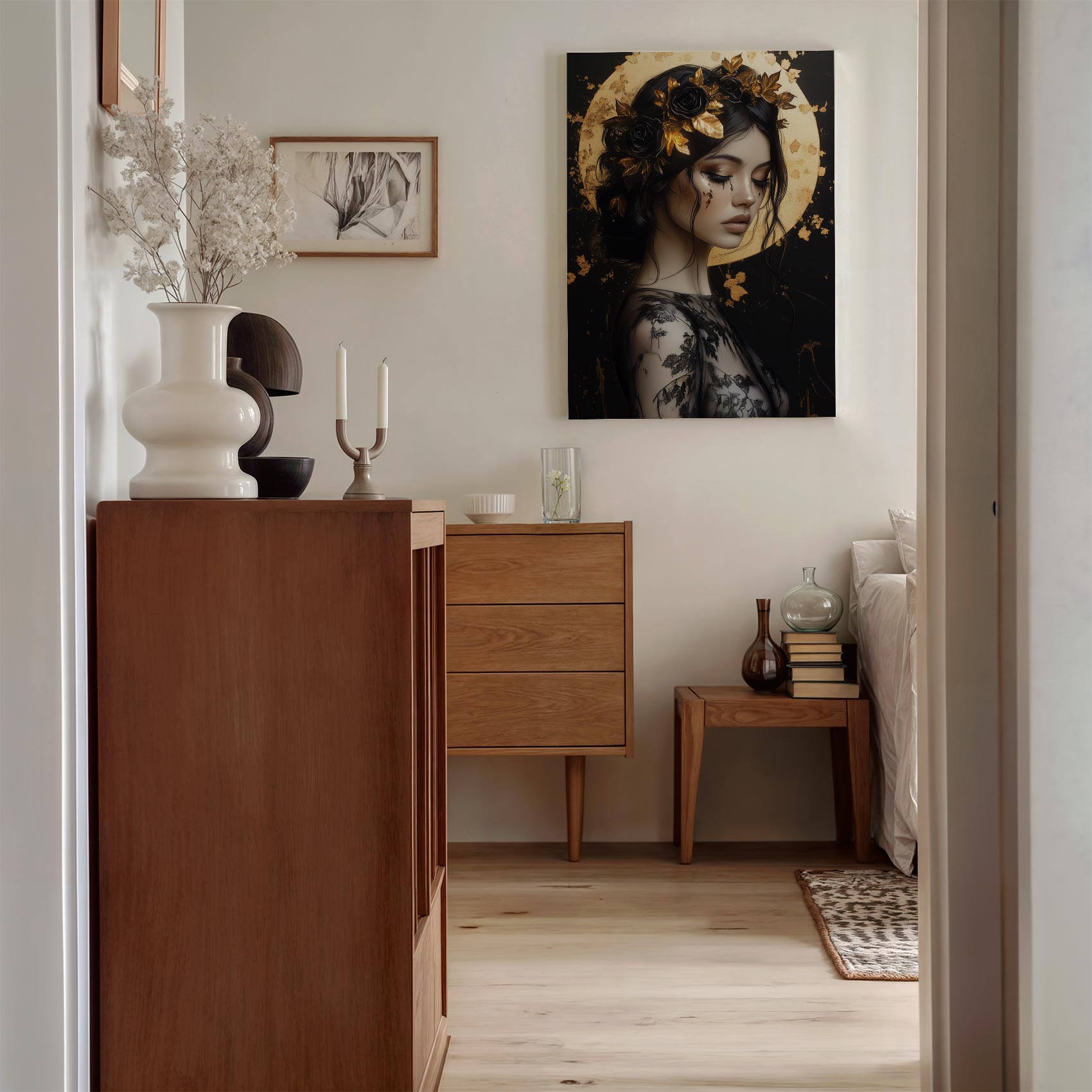 Terug naar collectie Canvas Elegante vrouw in zwart-goud