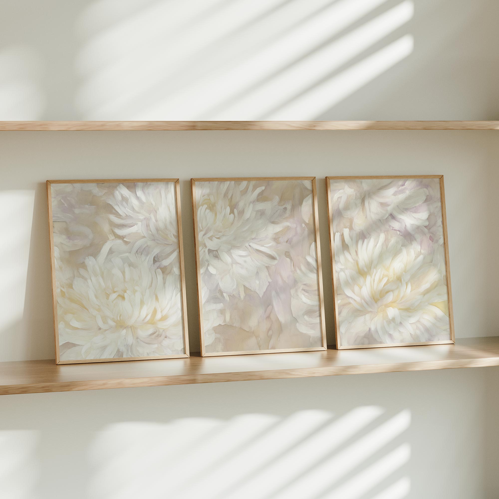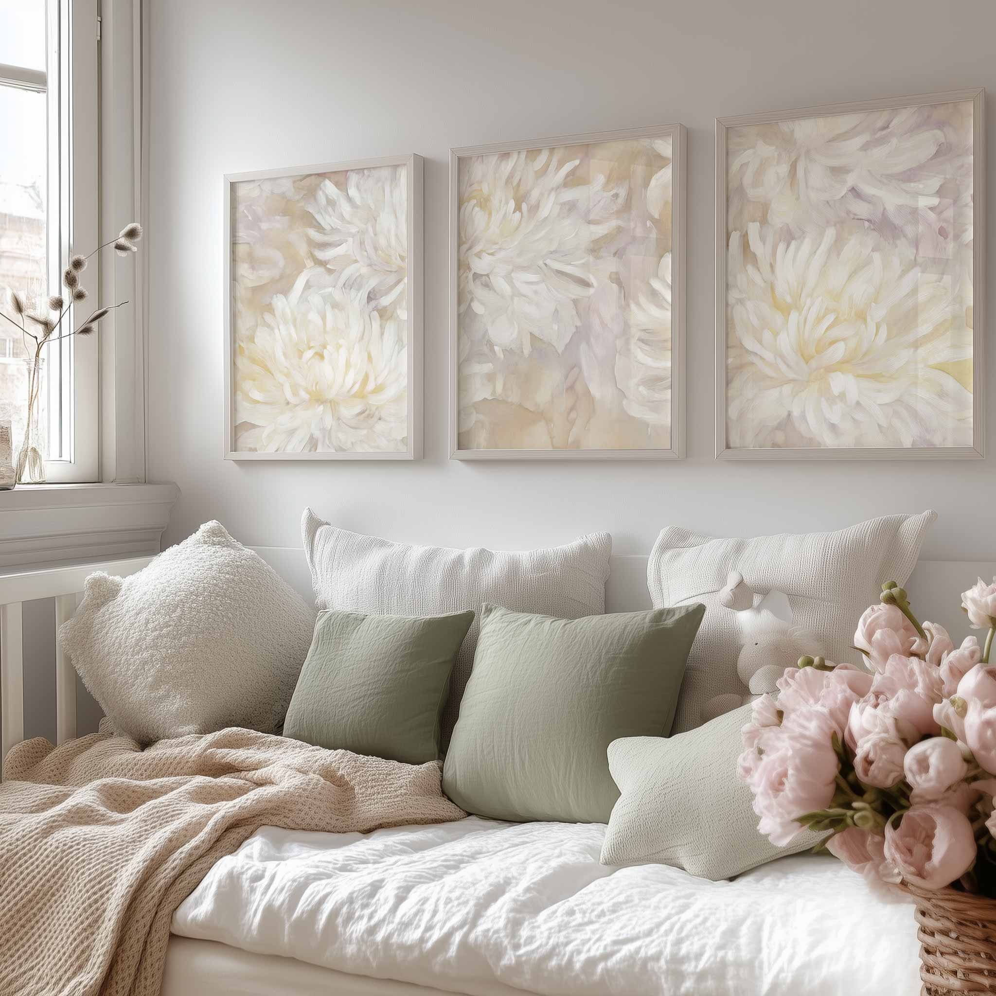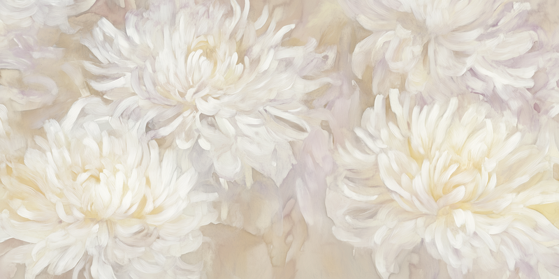 Elegante Witte Chrysanten – Speelse Sereniteit aan de Muur