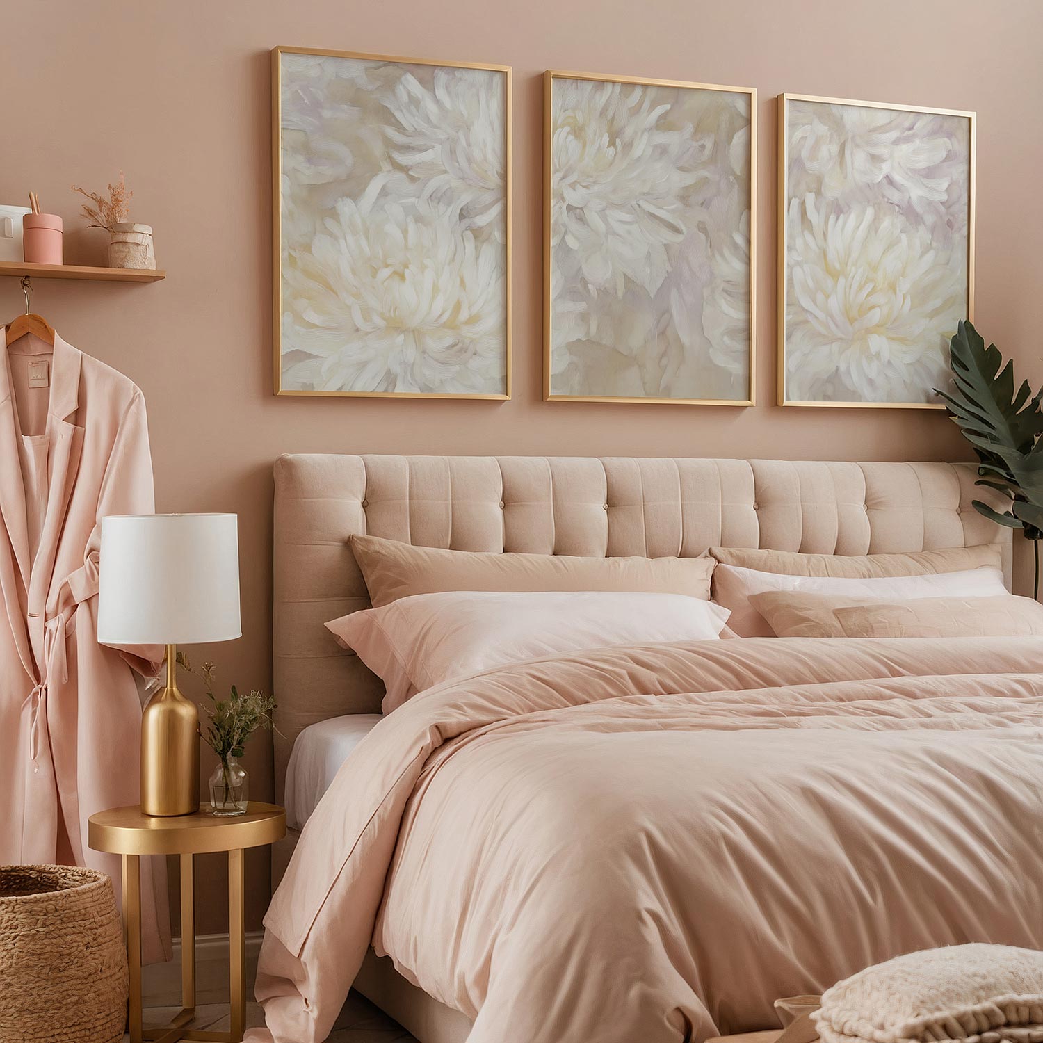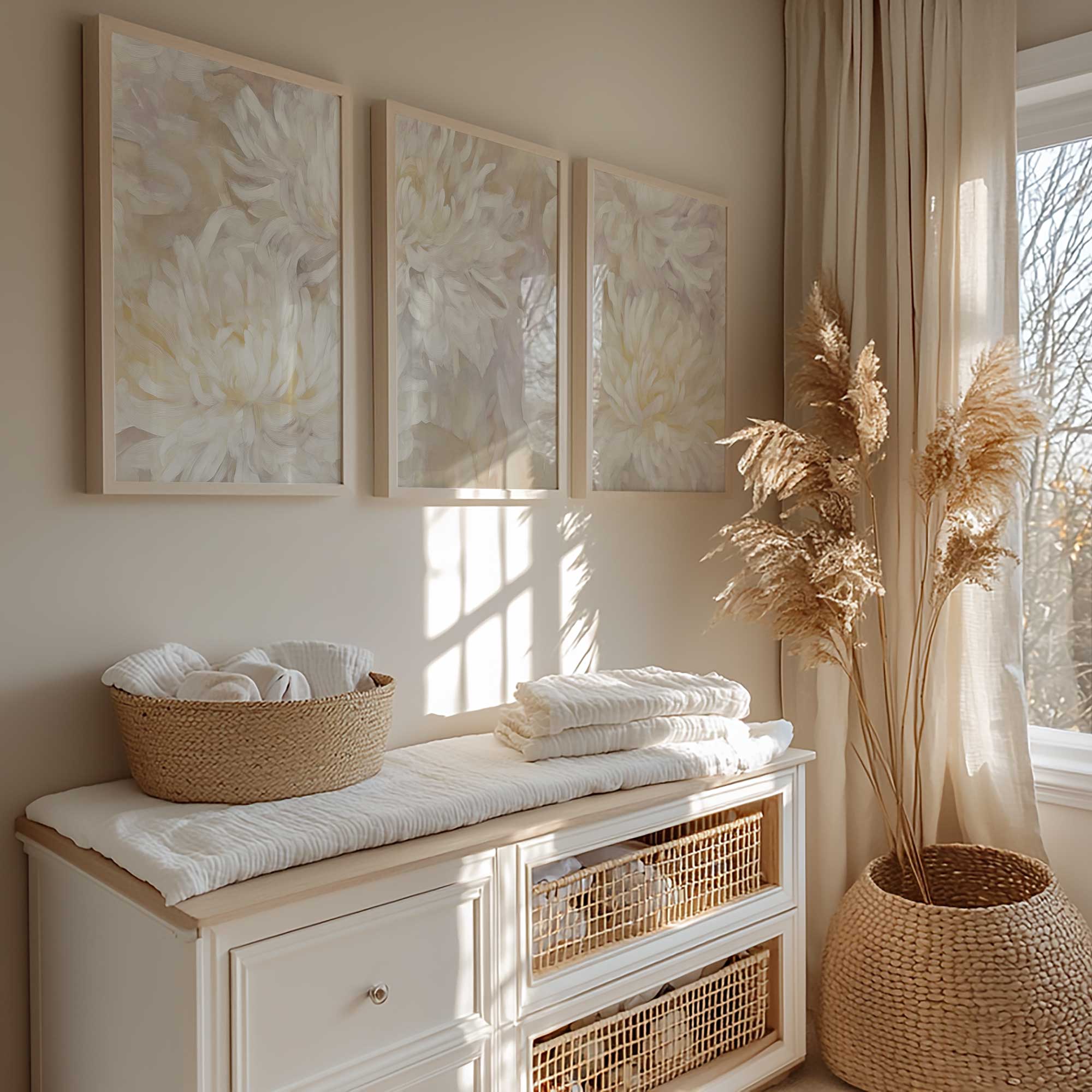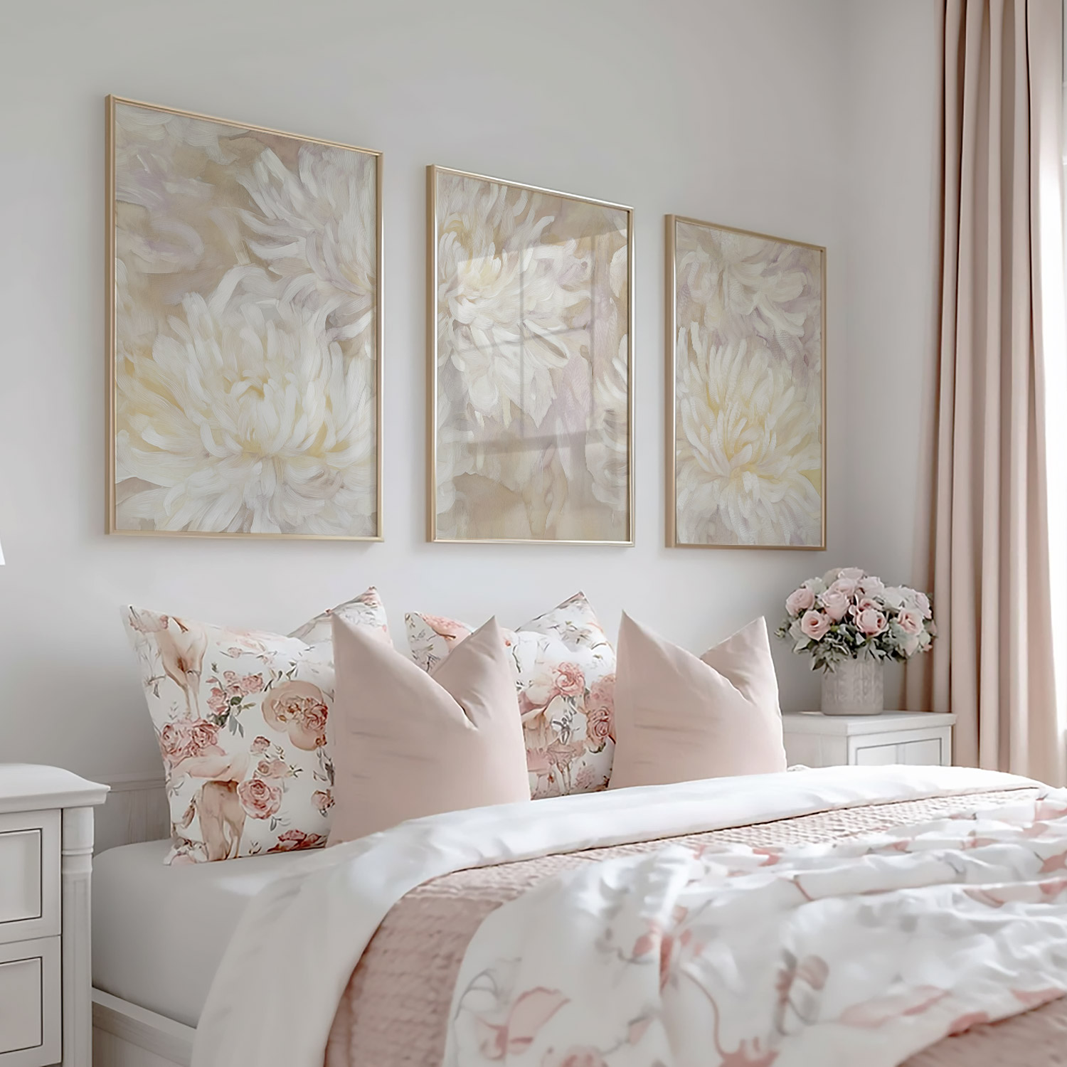 Elegante Witte Chrysanten – Speelse Sereniteit aan de Muur