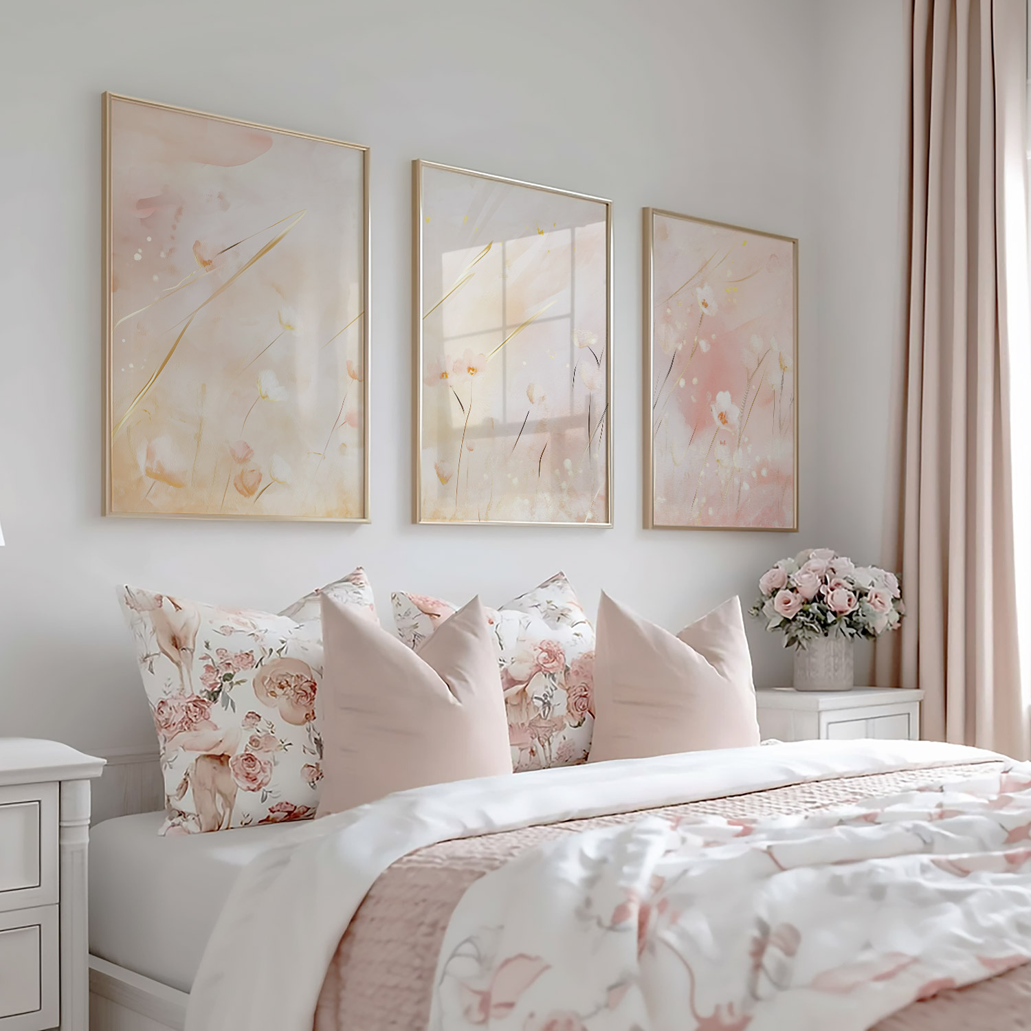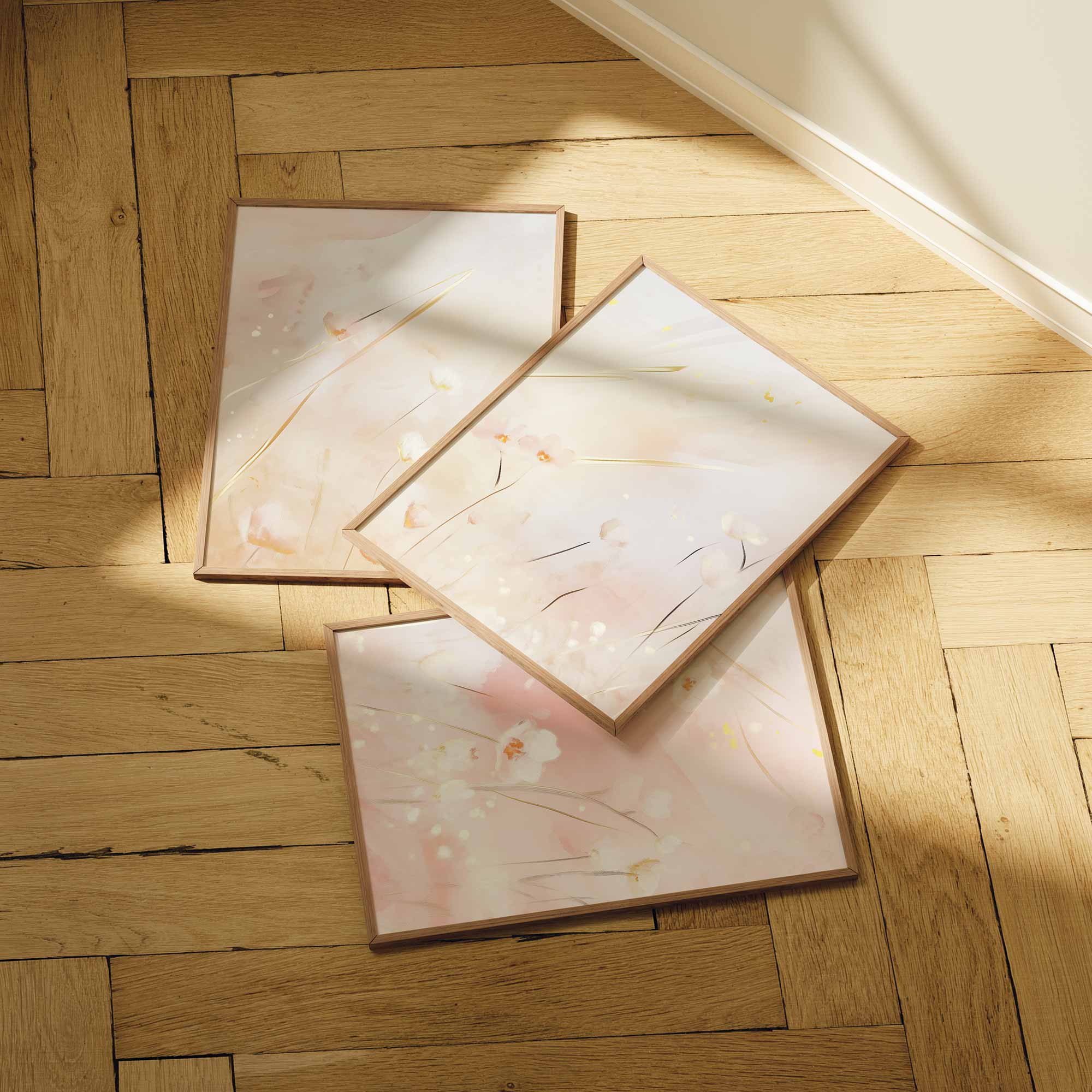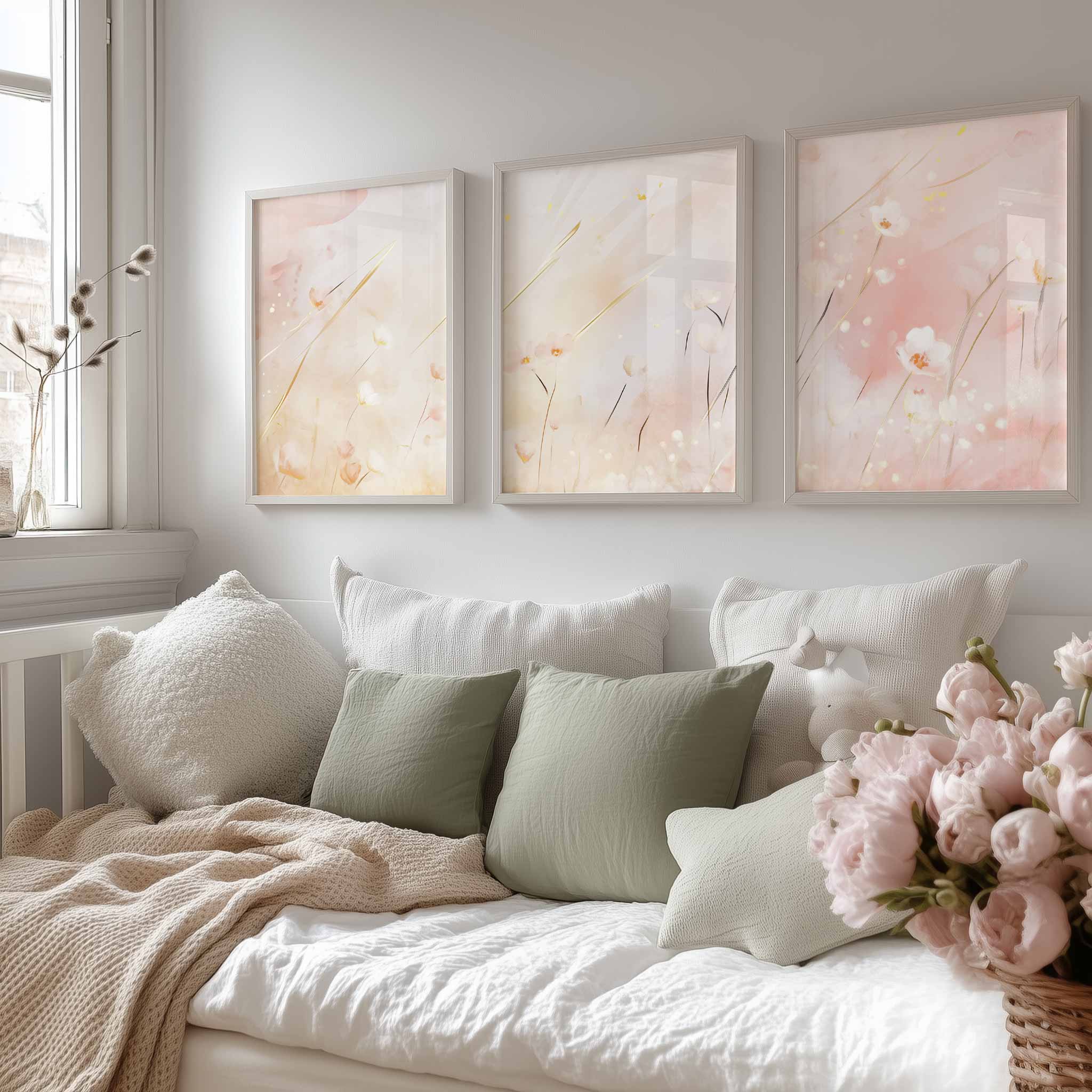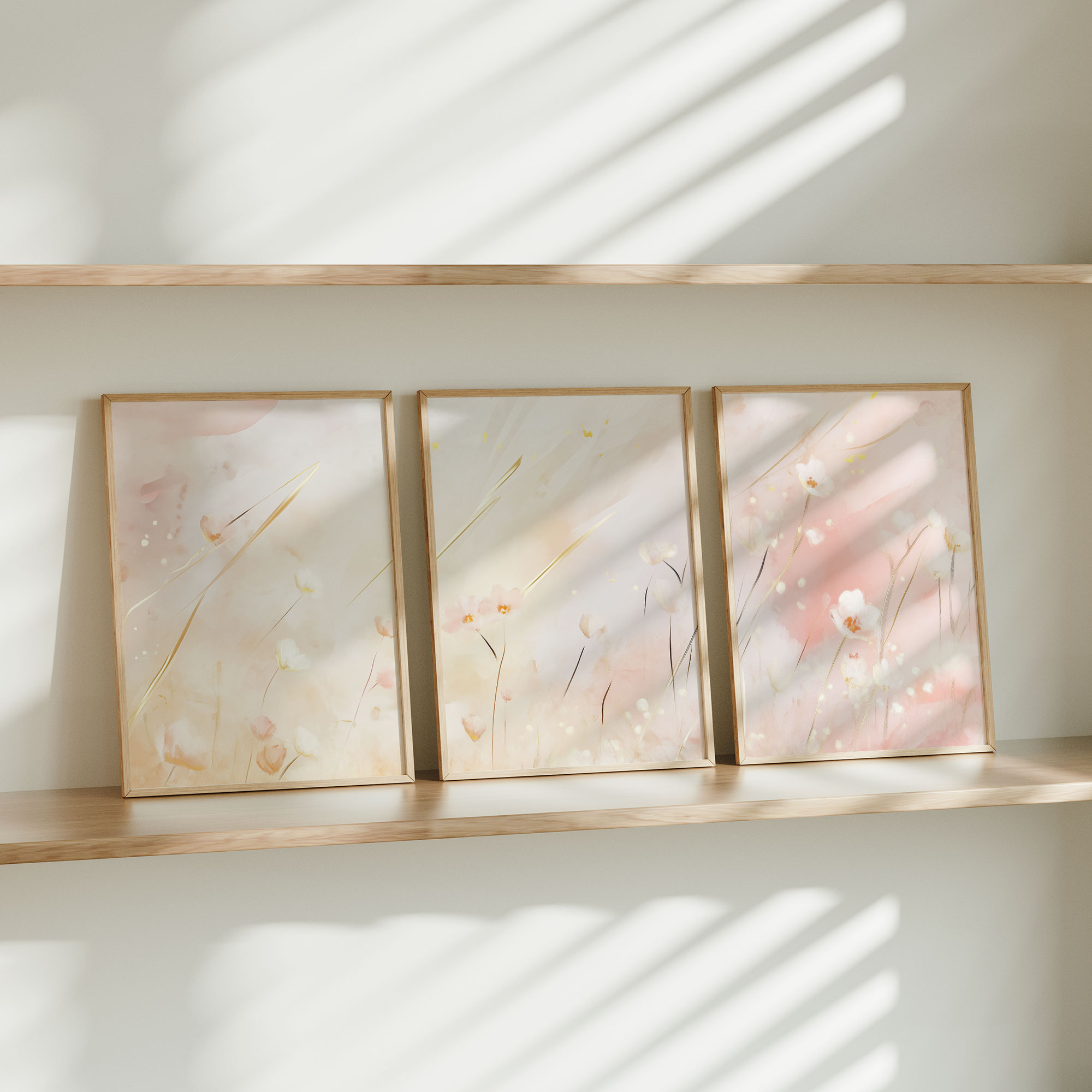 Ethereal Watercolor Bloemenveld in Pastel Roze en Wit