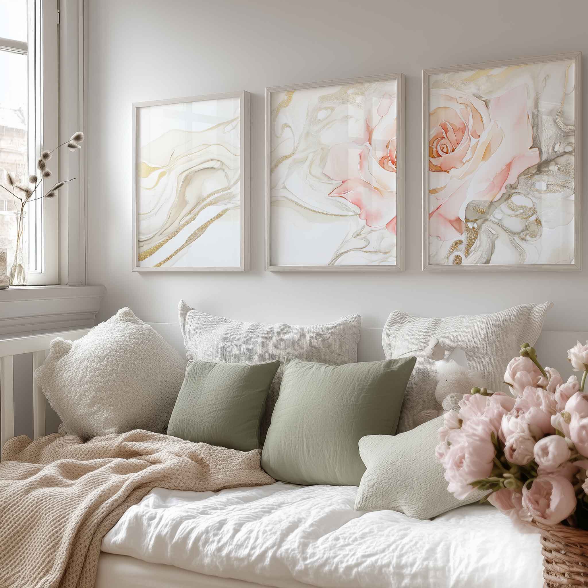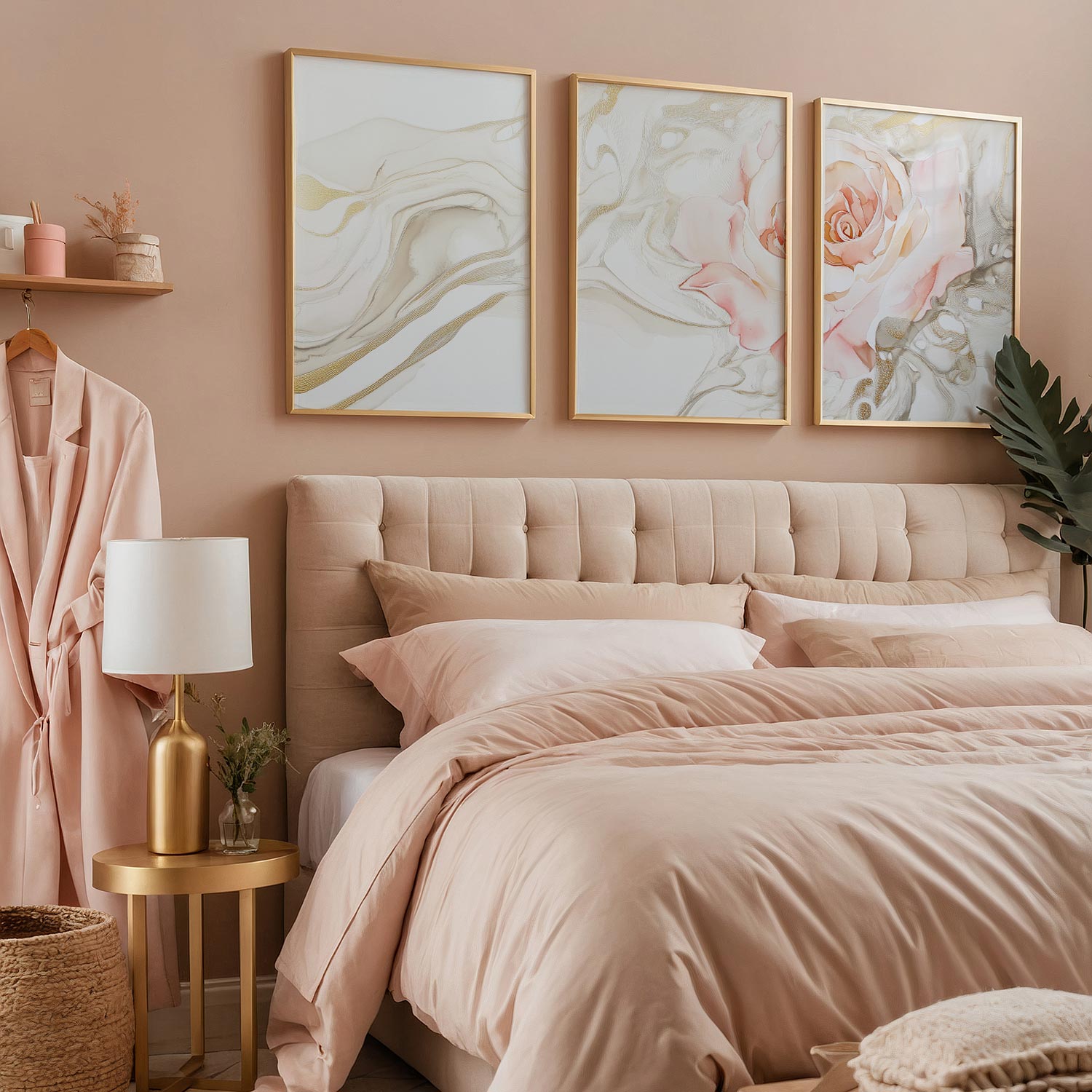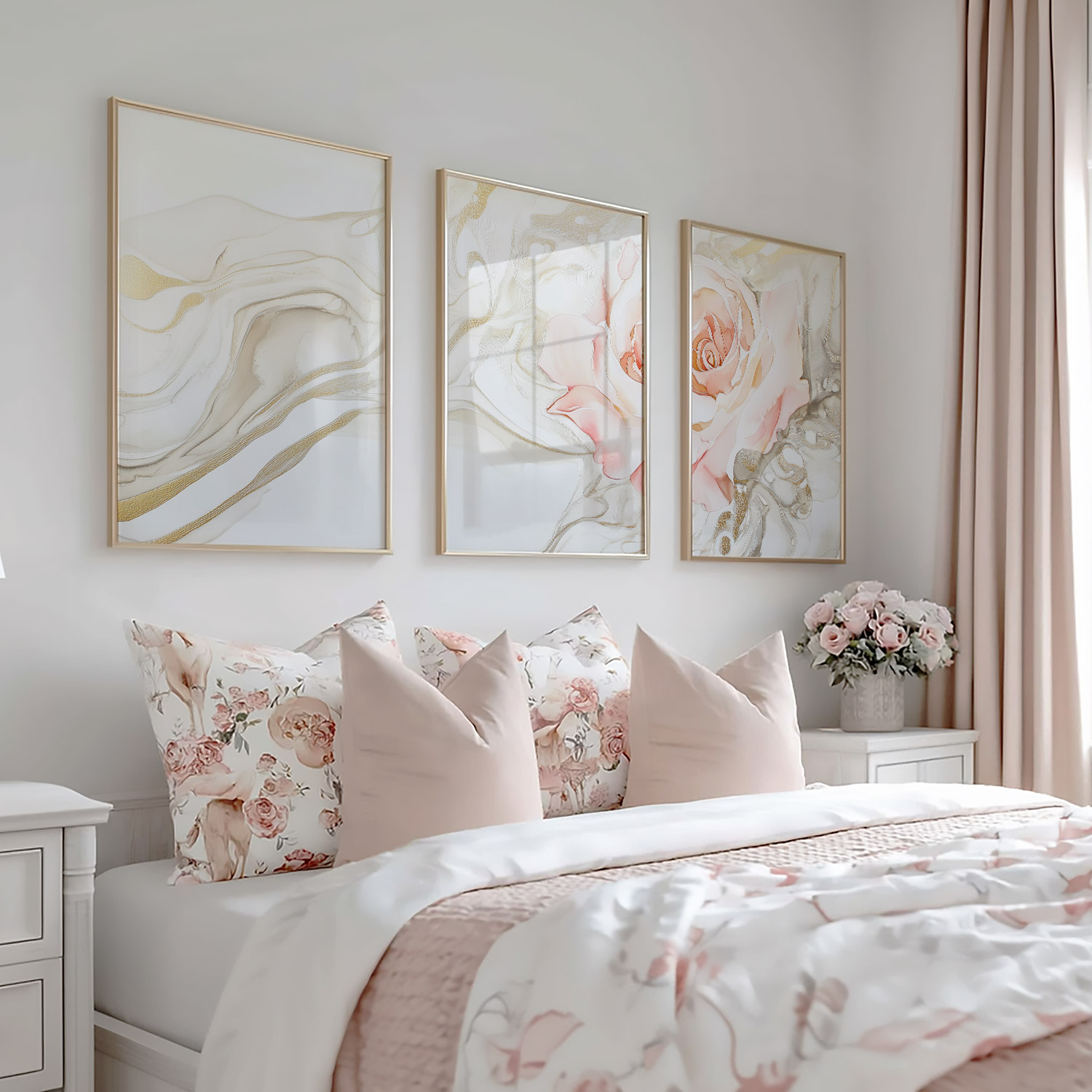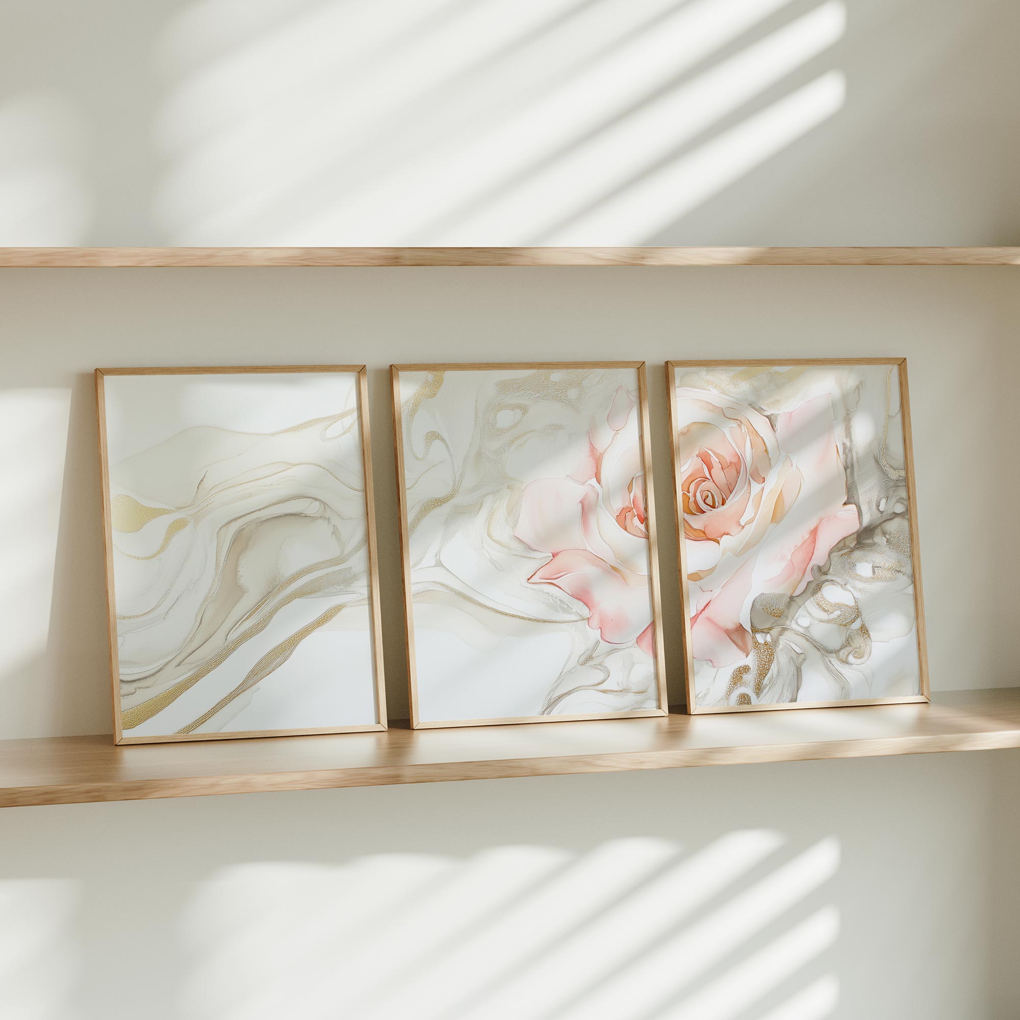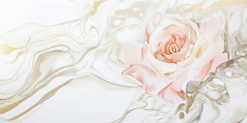 Ethereale Roos in Gouden Droomwereld – Stijlvolle Wanddecoratie