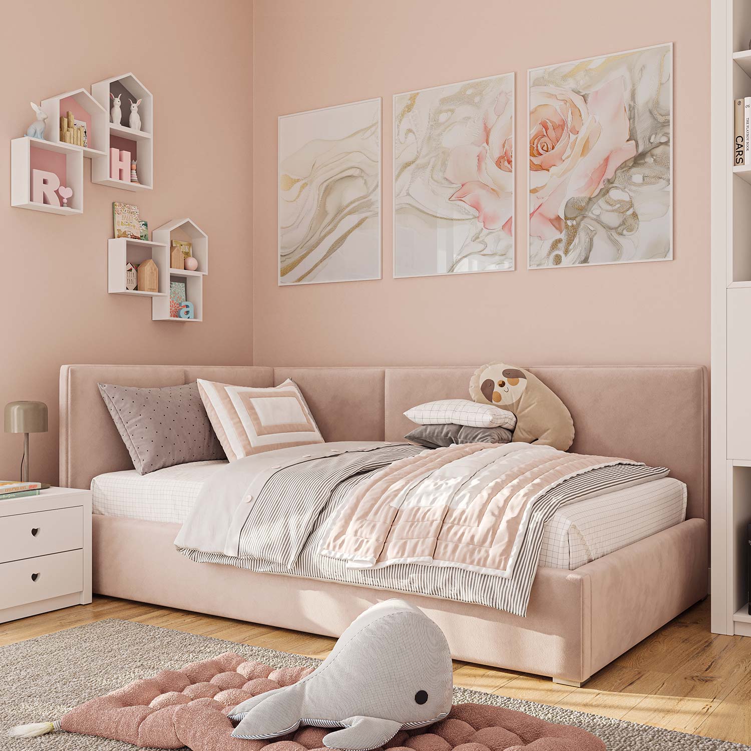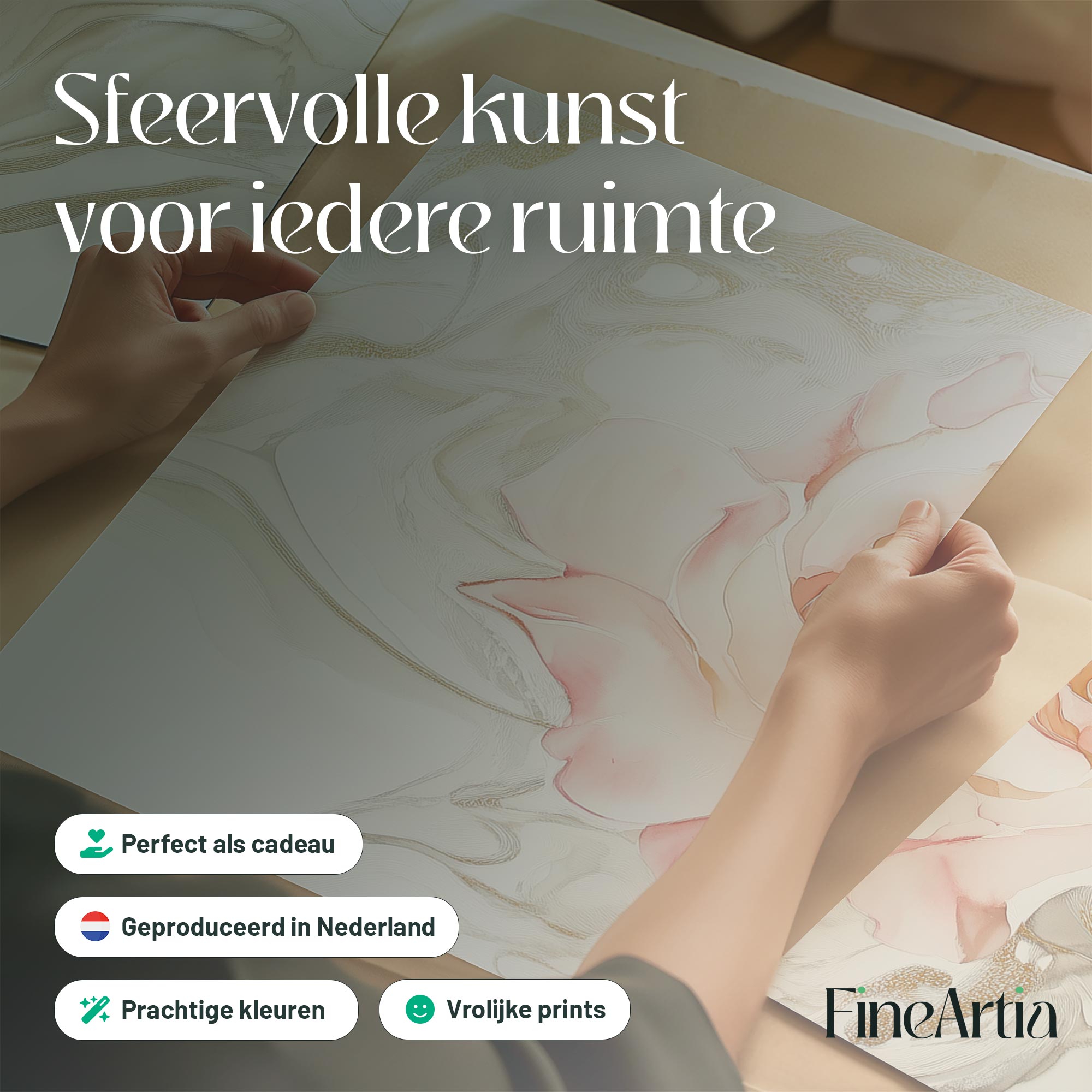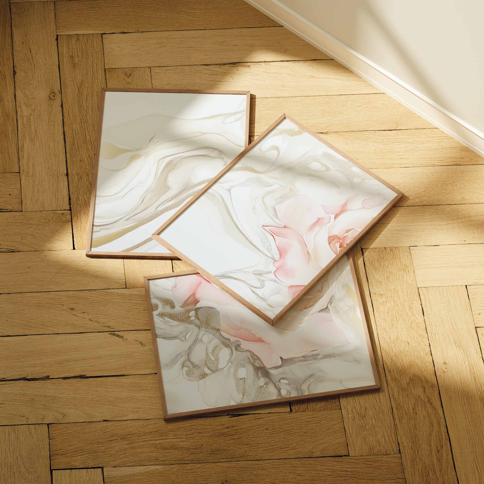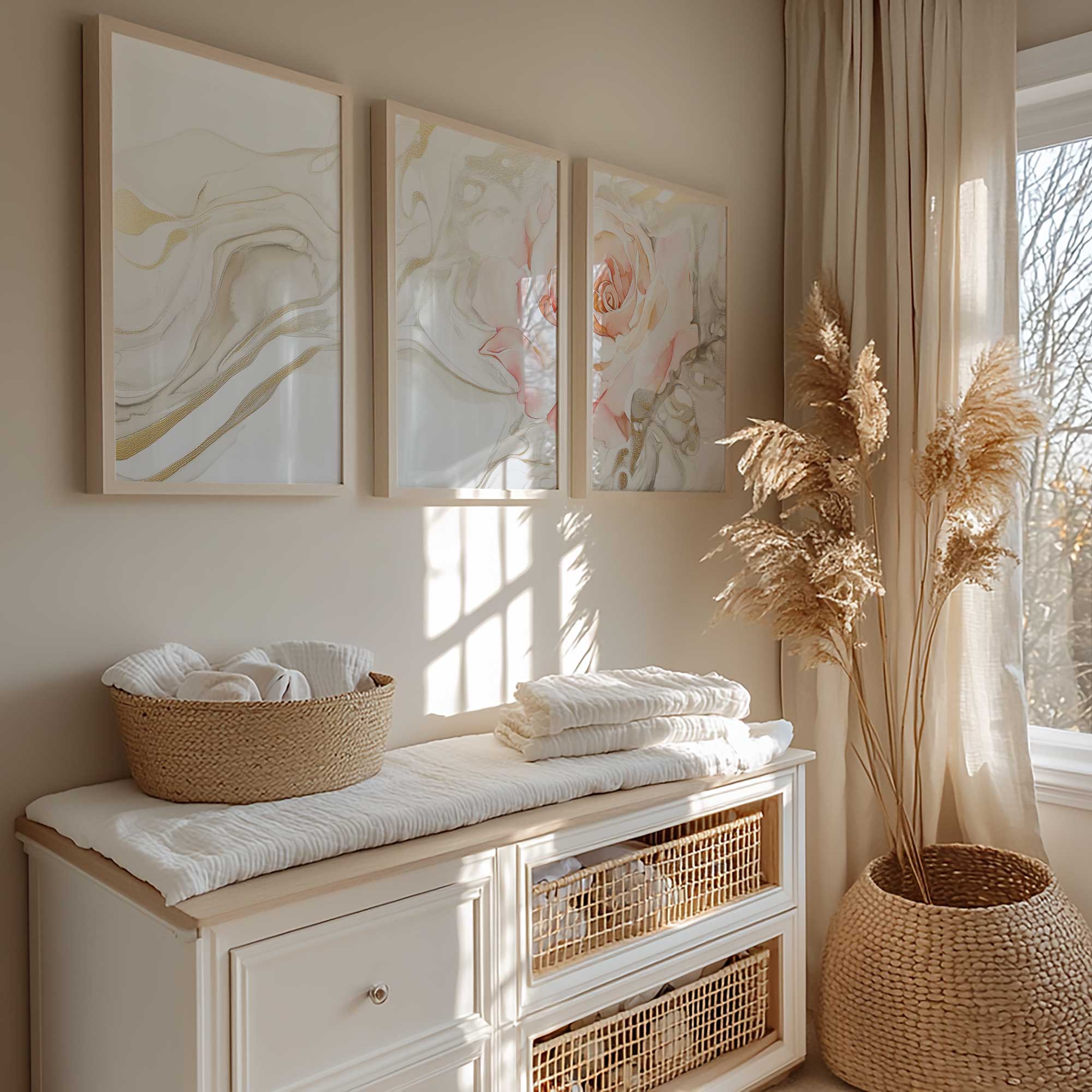 Ethereale Roos in Gouden Droomwereld – Stijlvolle Wanddecoratie