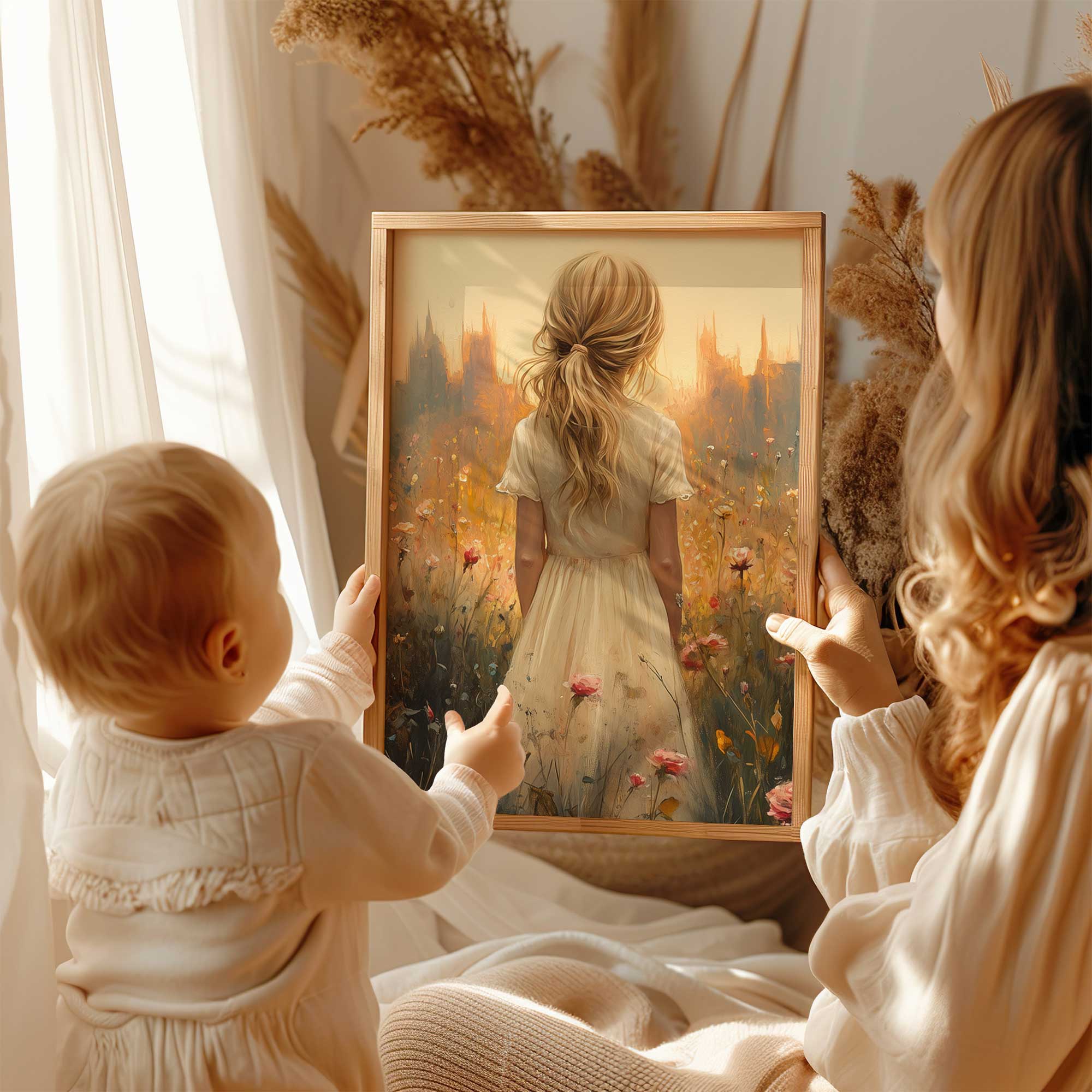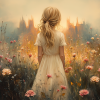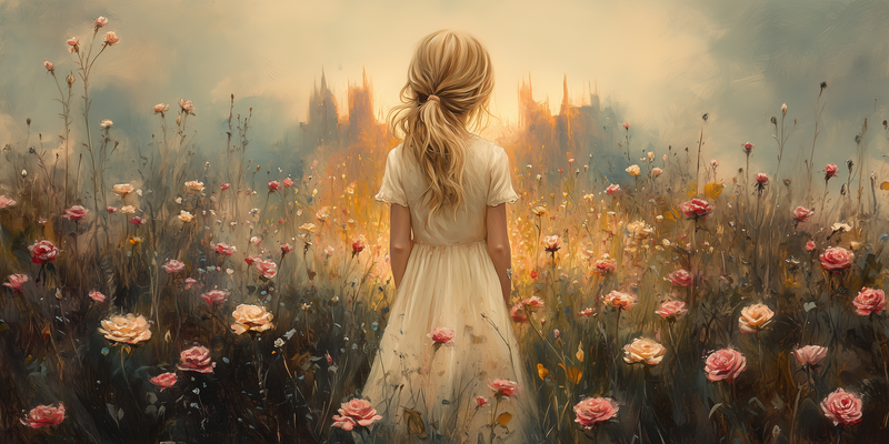 Feeëriek Landschap met Dromerige Dame en Kasteel