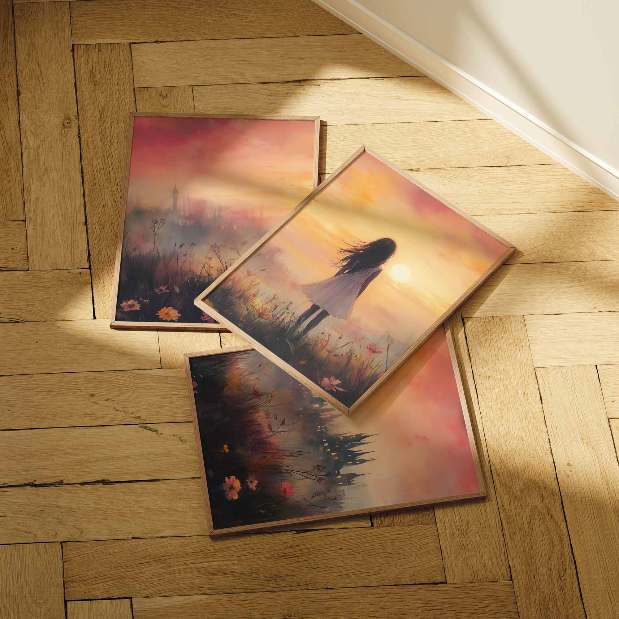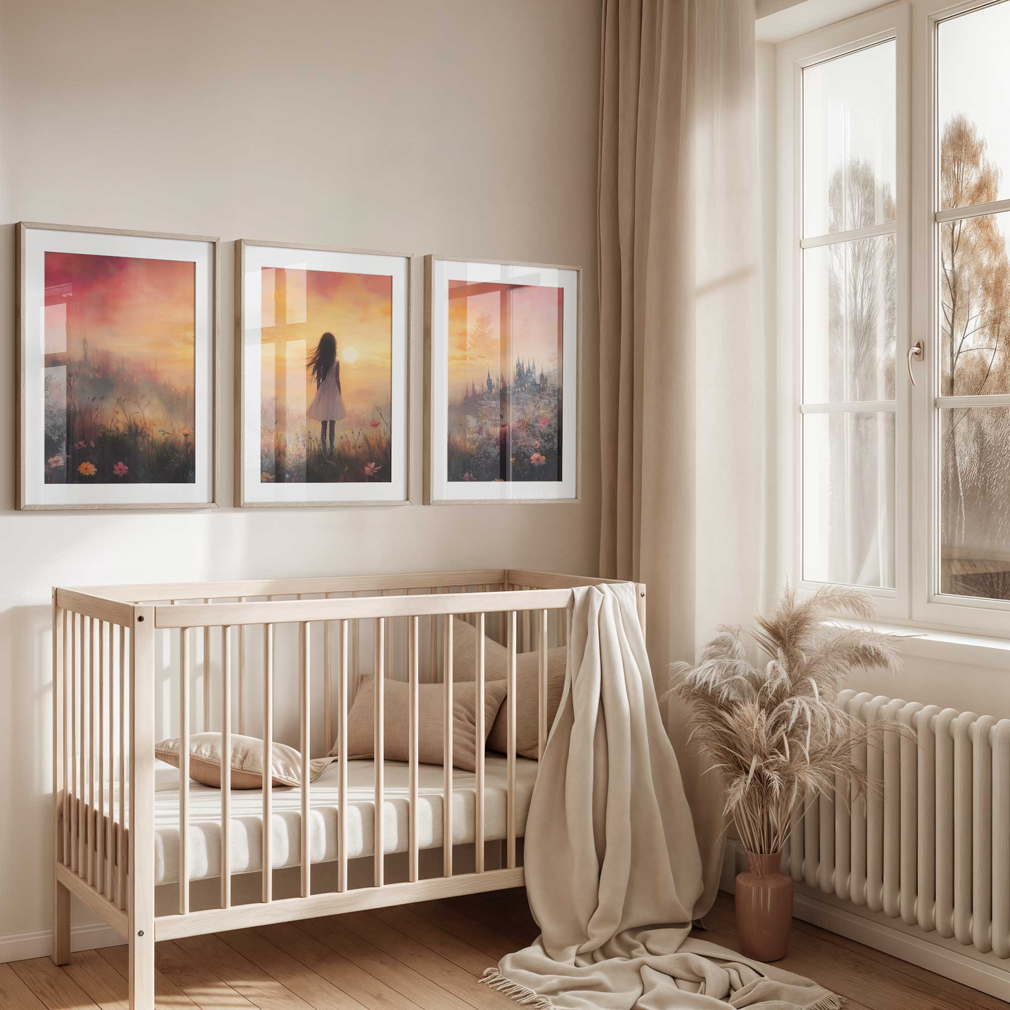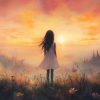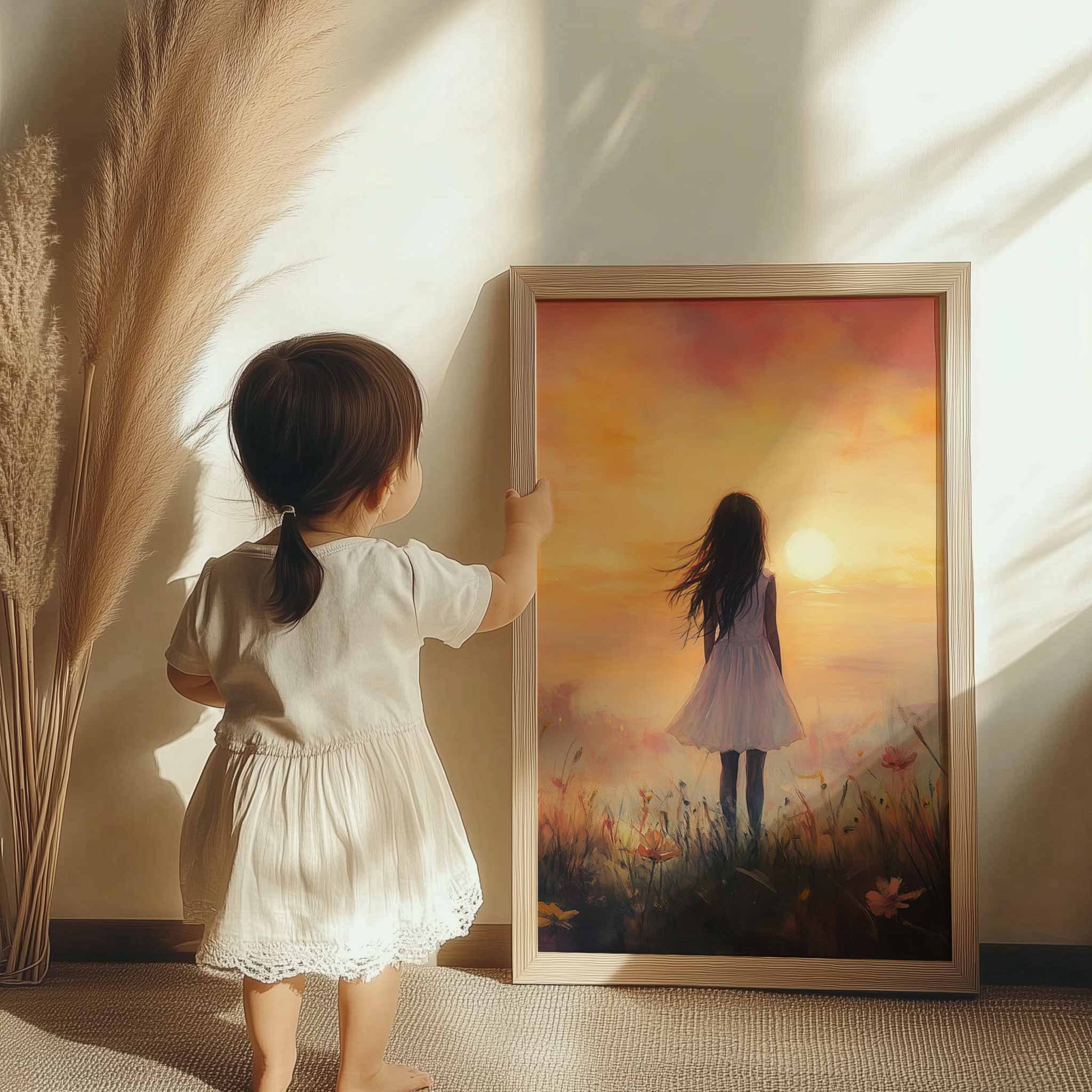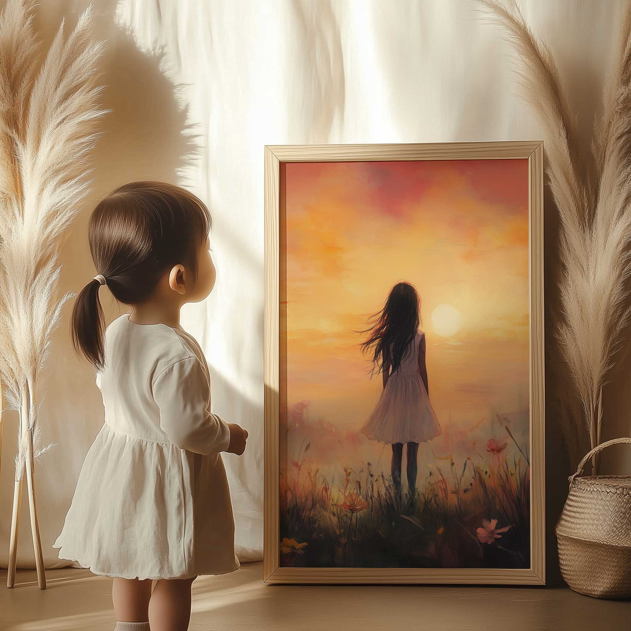 Feeëriek Meisje in Bloemenveld met Kasteel