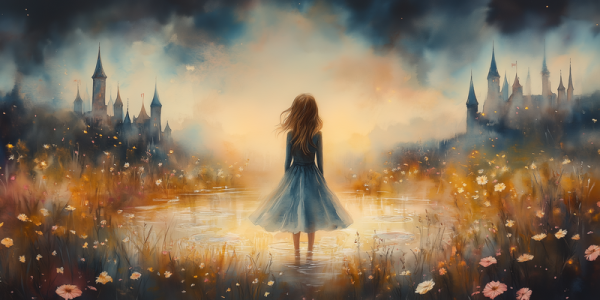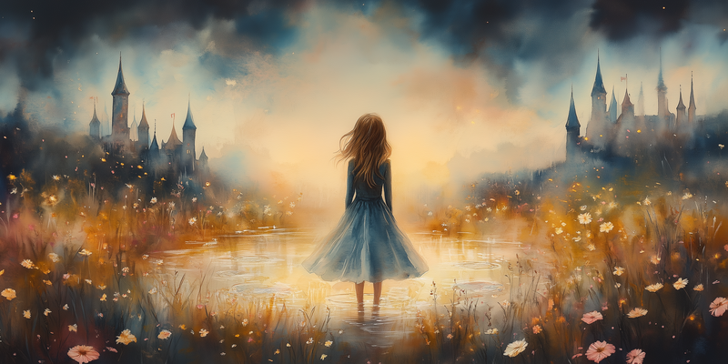 Feeërieke Dame bij het Kasteel – Blauwe Droom