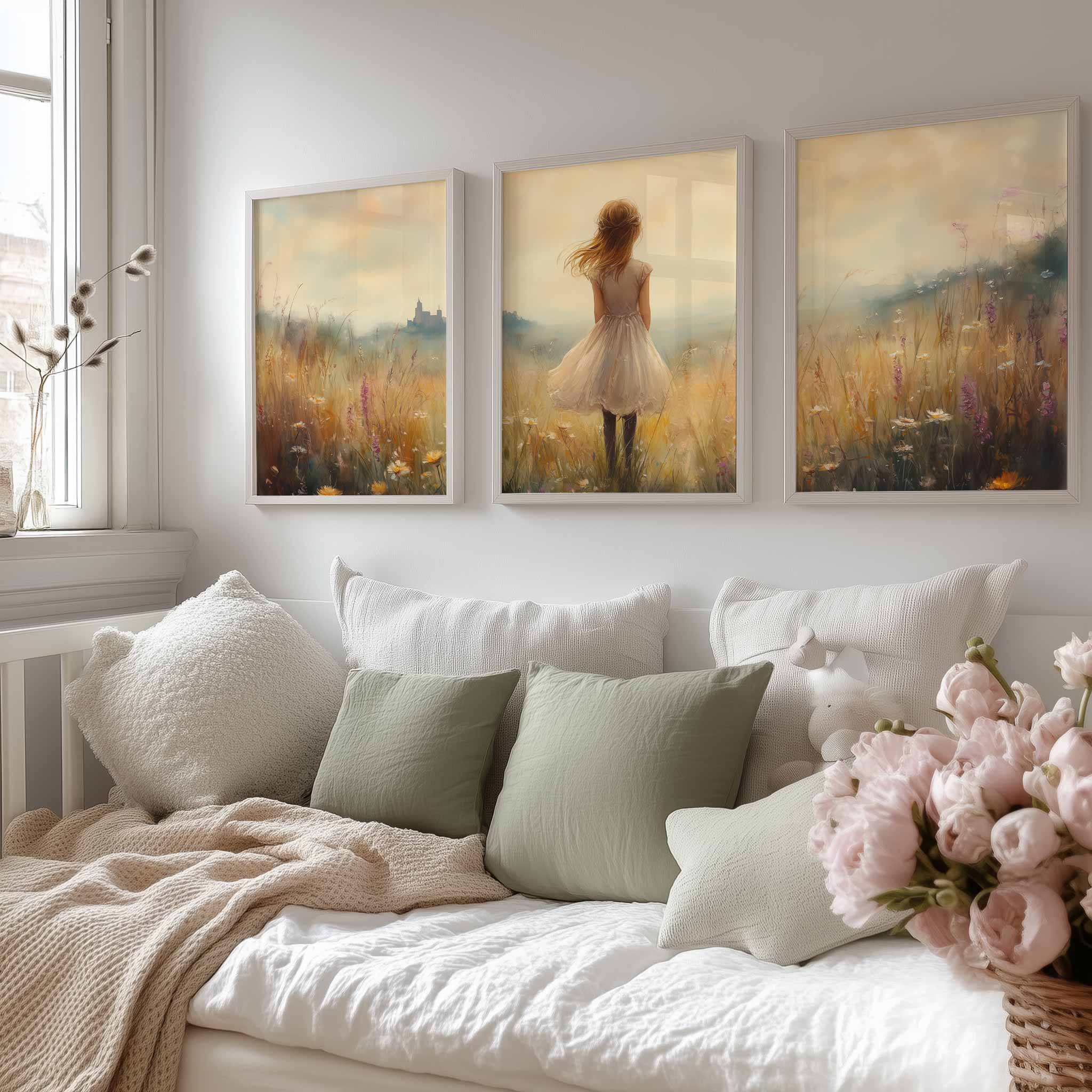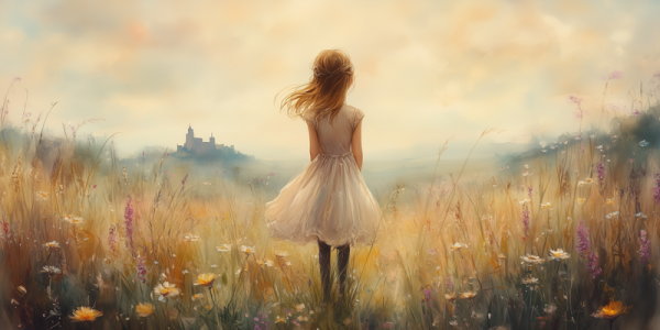 Feeërieke Droom in Bloemenveld met Kasteel