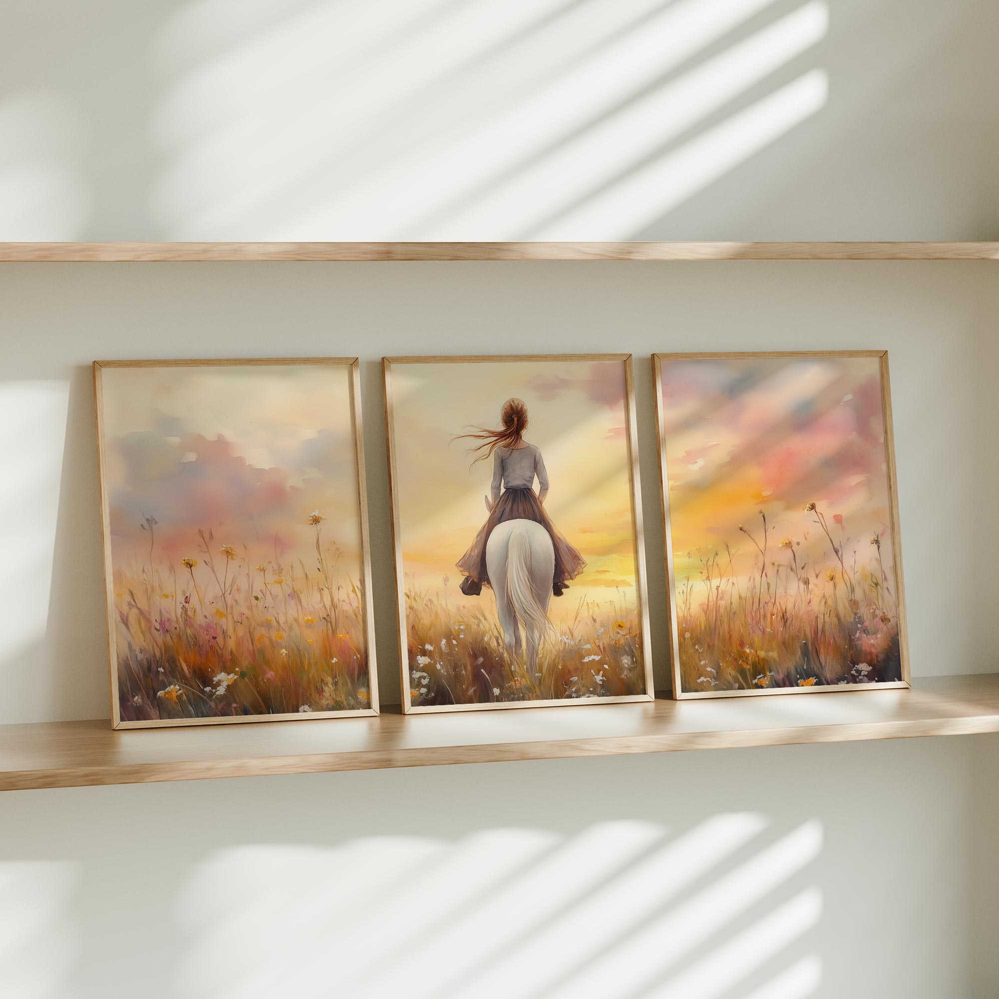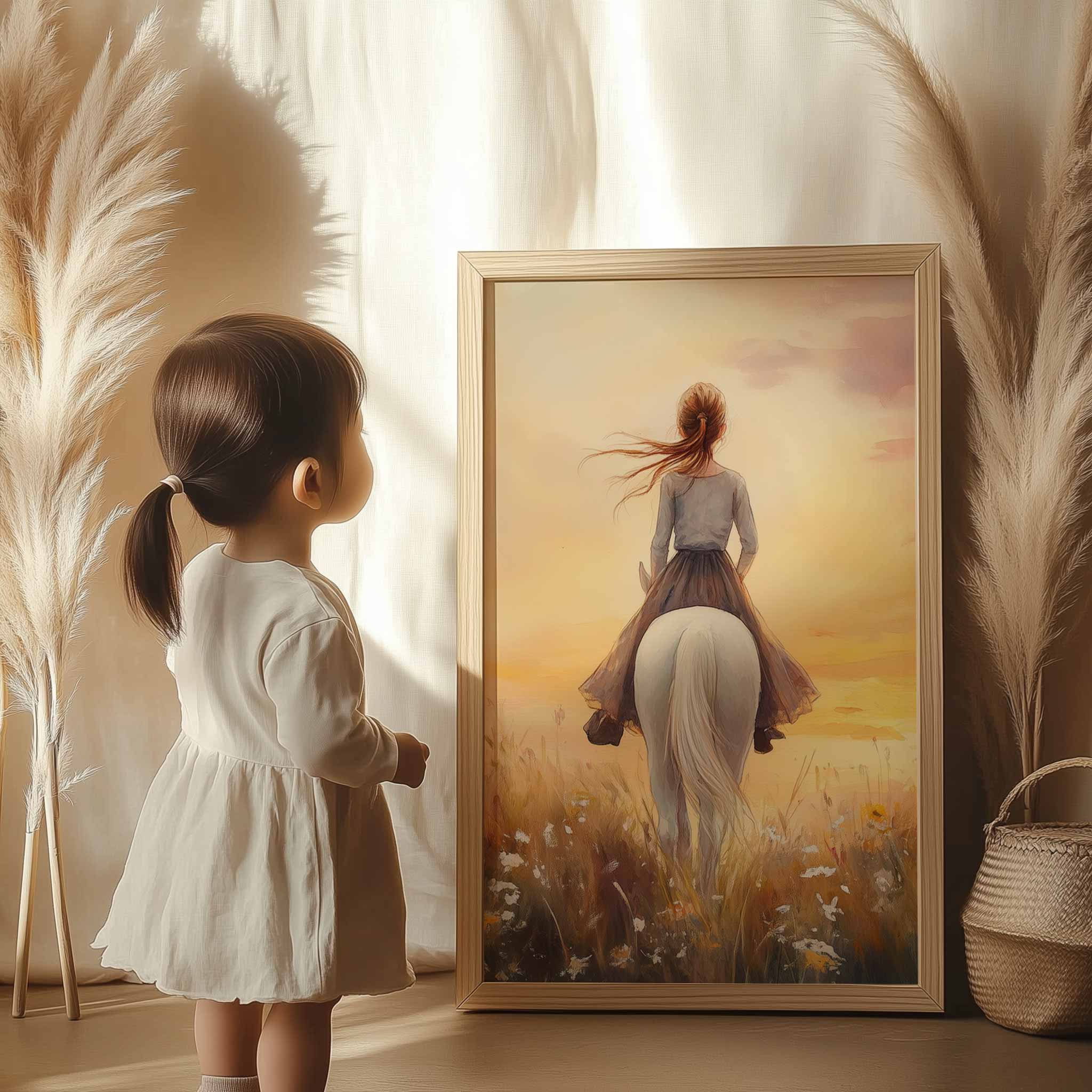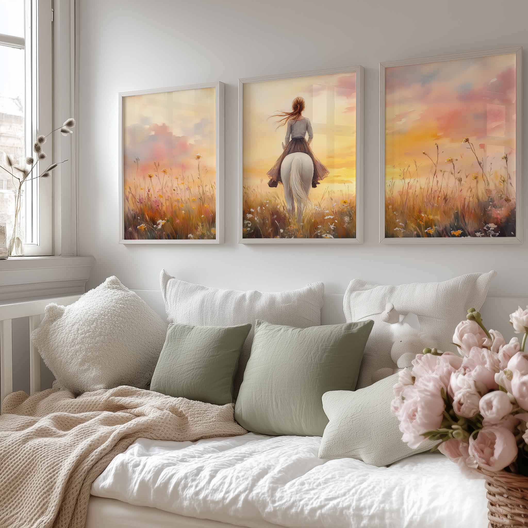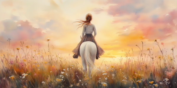 Feeërieke Droom: Vrouw en Paard in Bloemenveld