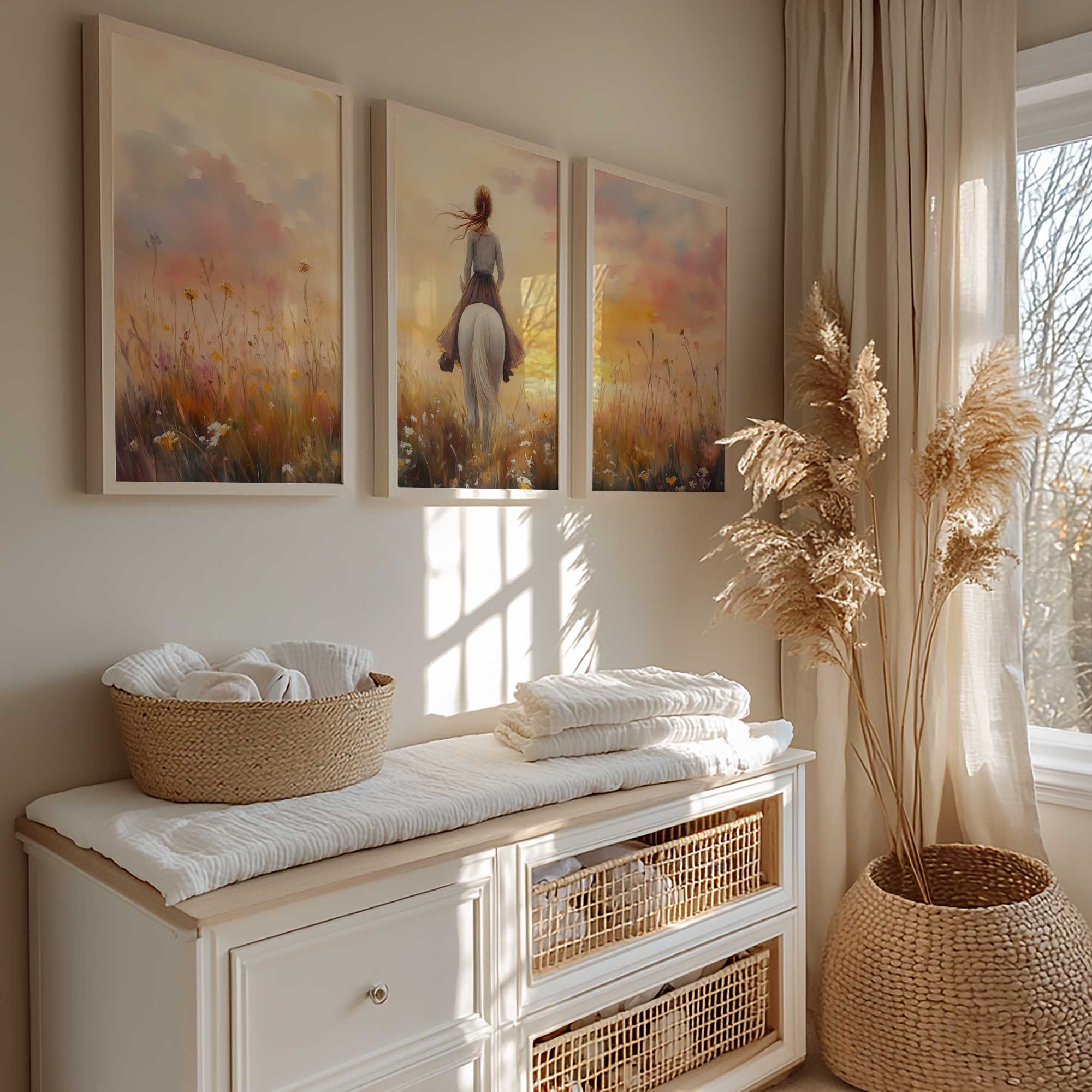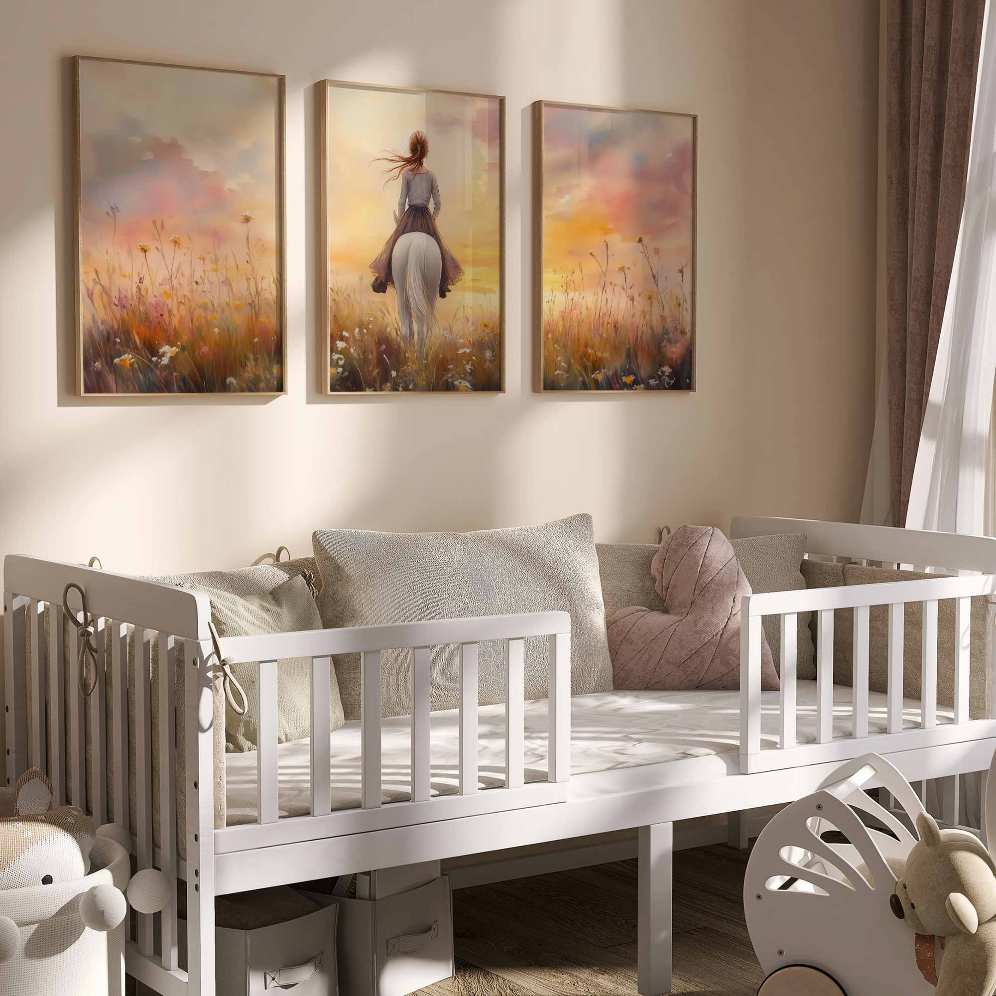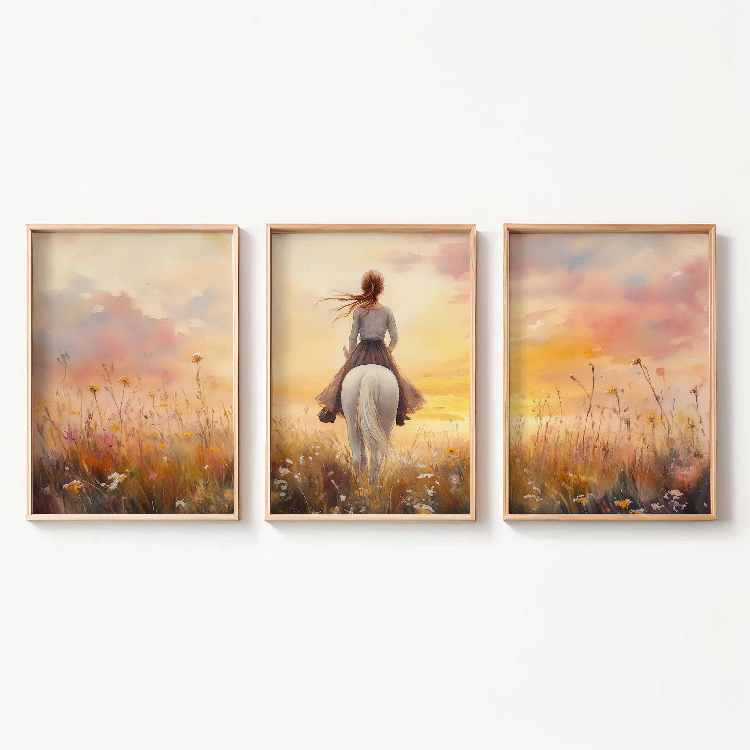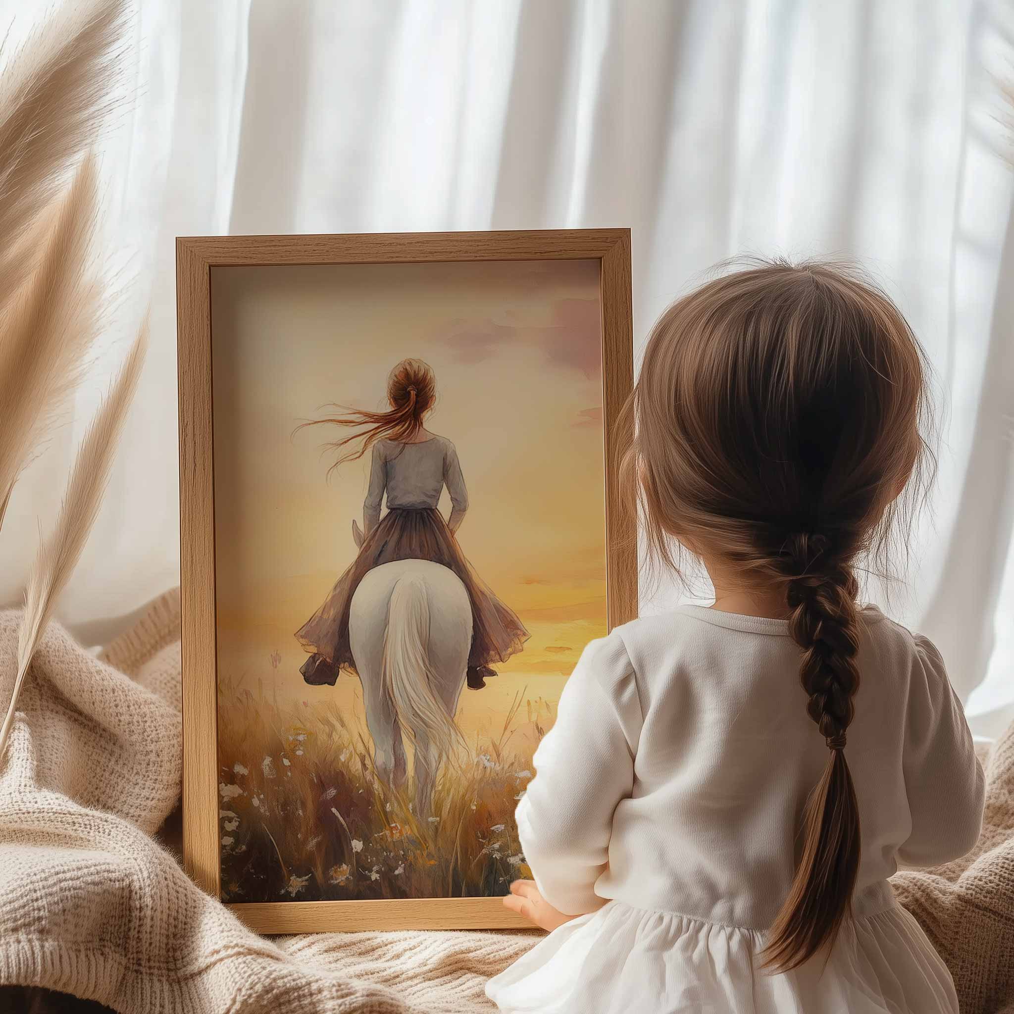 Feeërieke Droom: Vrouw en Paard in Bloemenveld