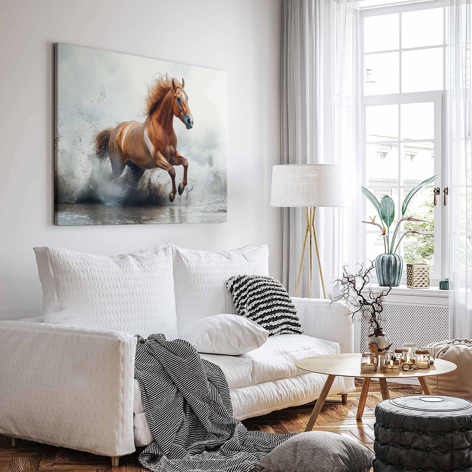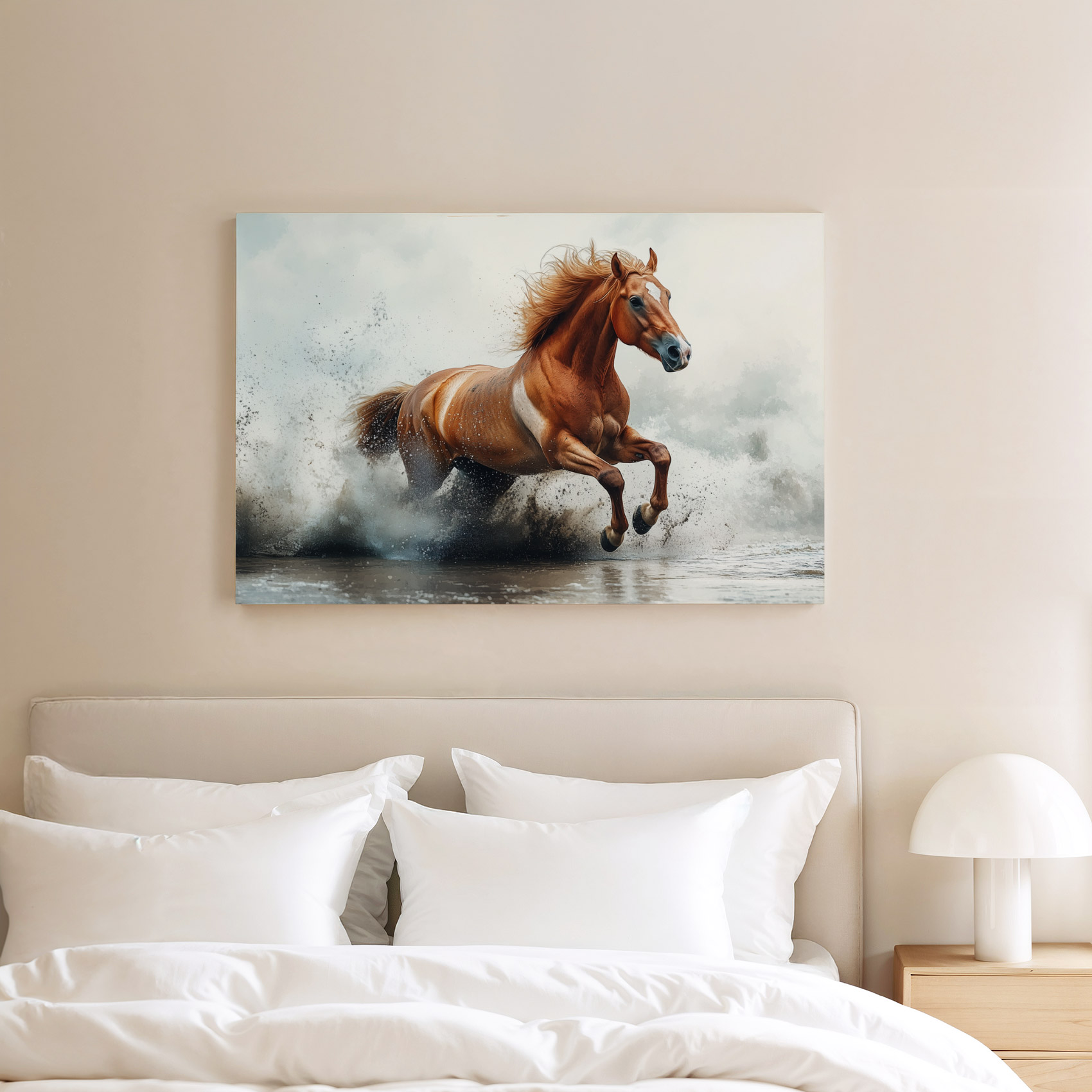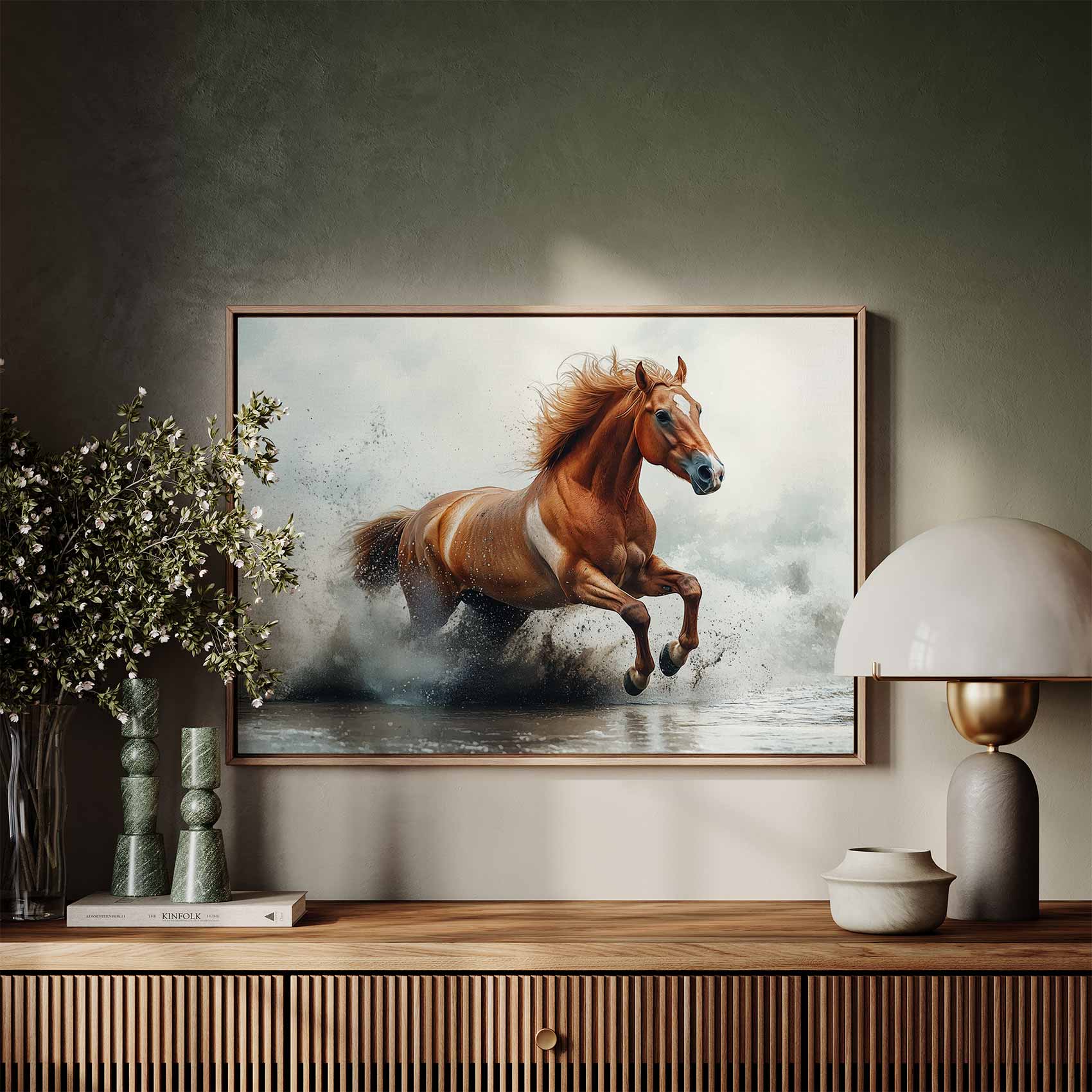 Galopperend paard in water