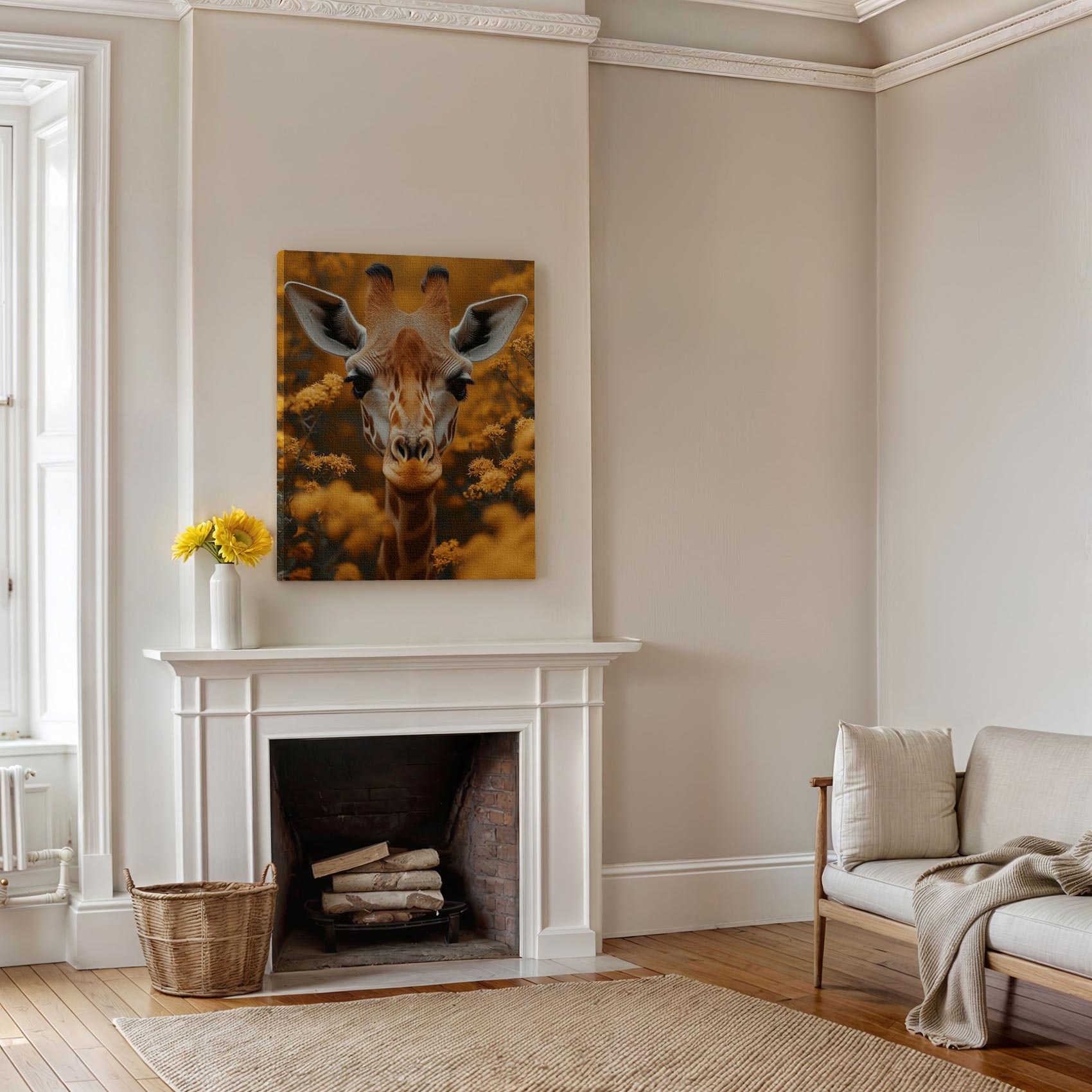 Terug naar collectie Canvas Giraf in Geel Bloemenveld