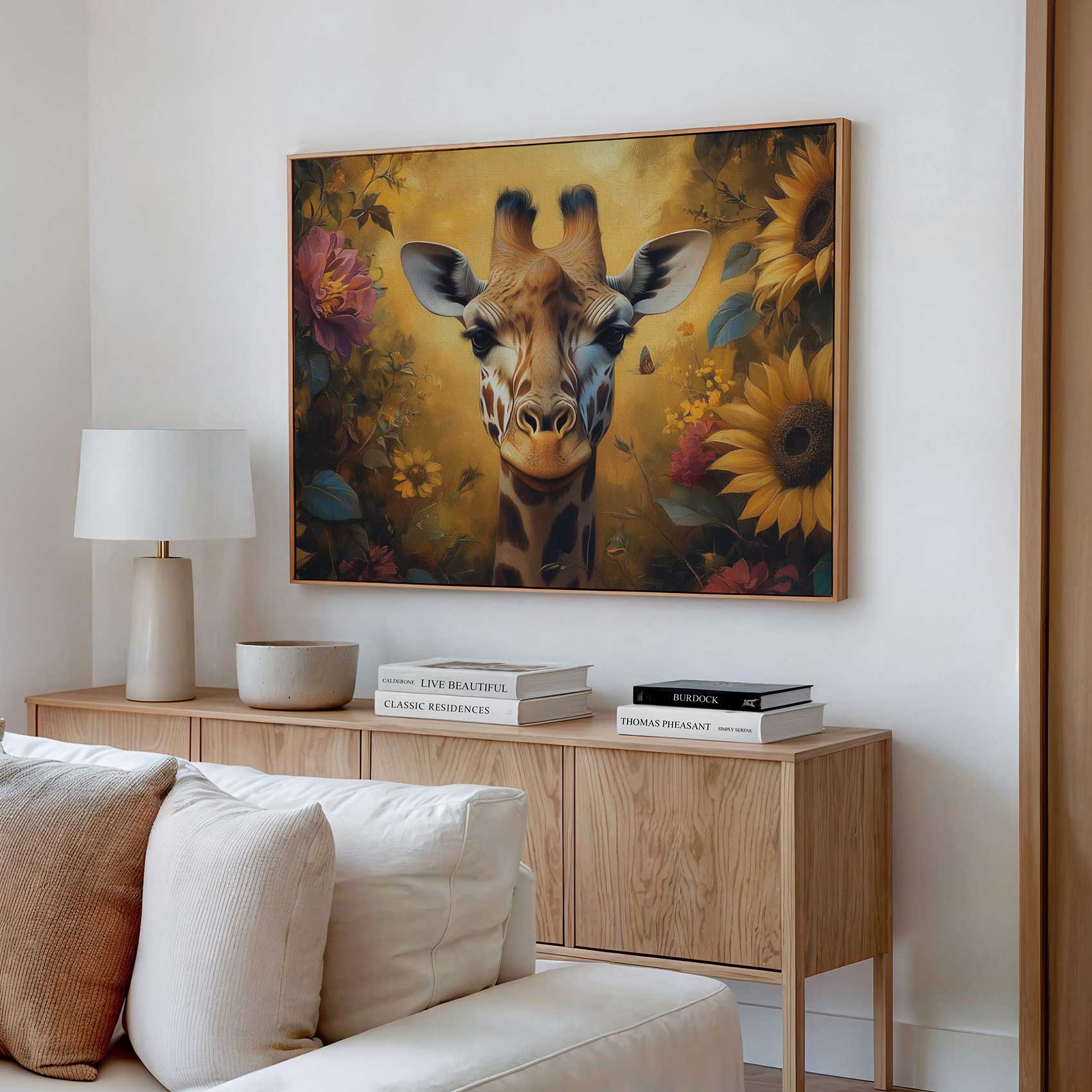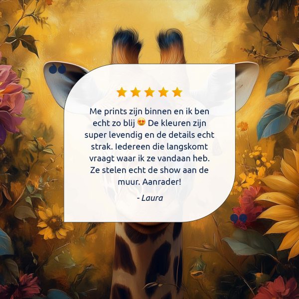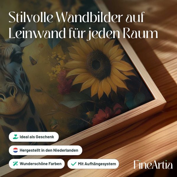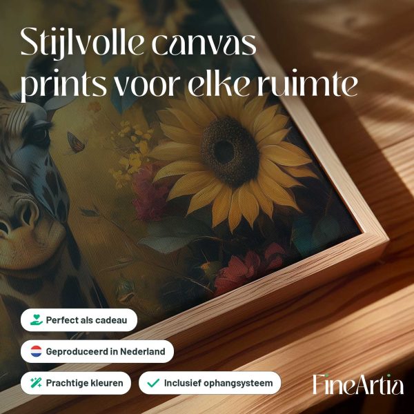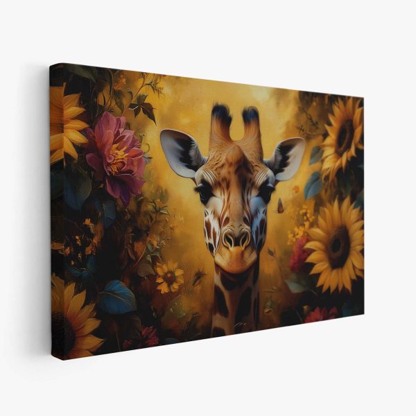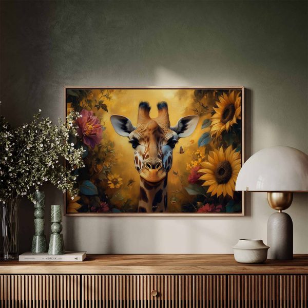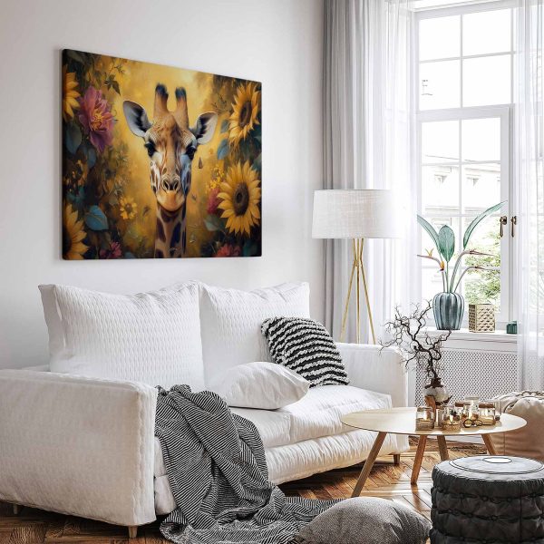 Terug naar collectie Canvas Giraf in kleurrijke bloementuin