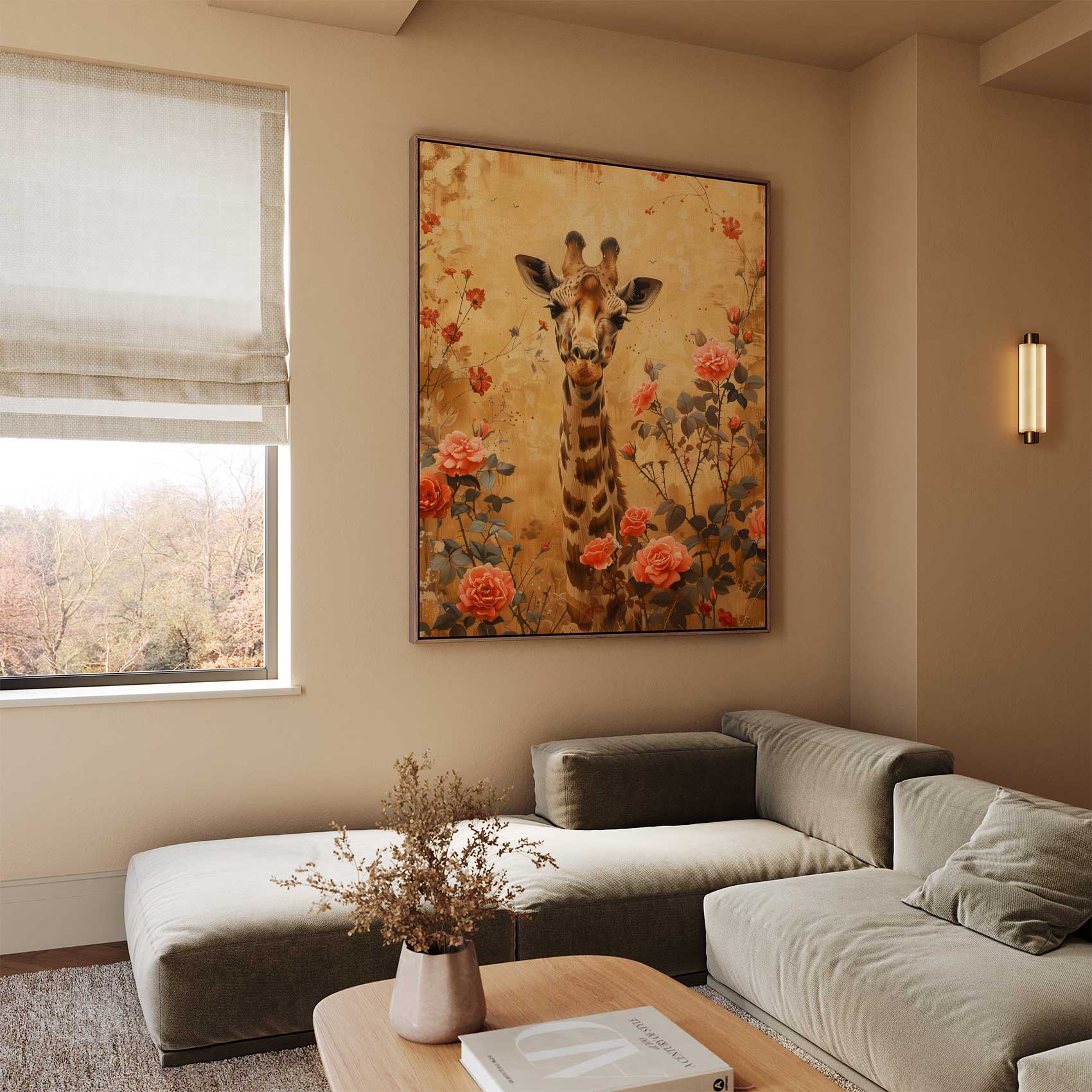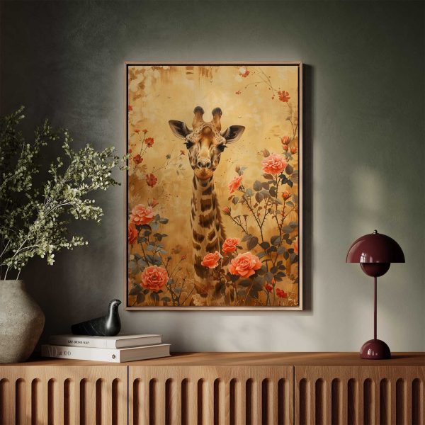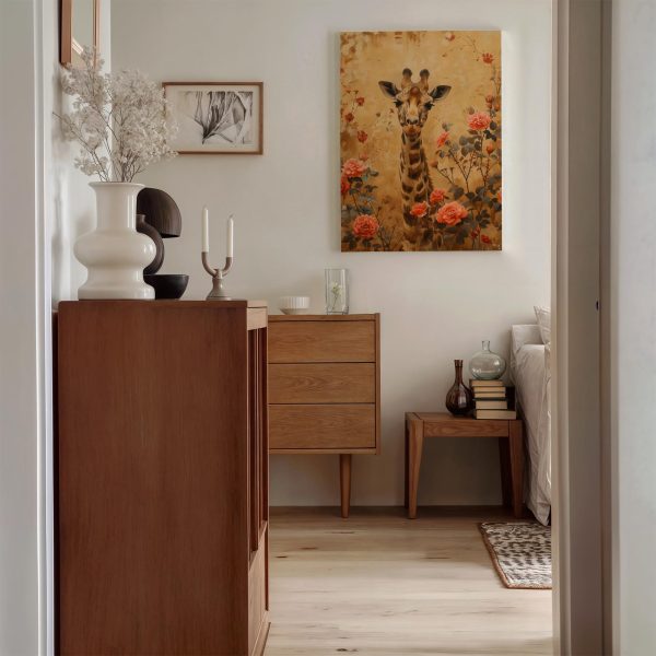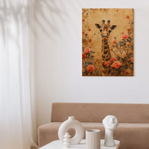 Giraf tussen bloemenveld