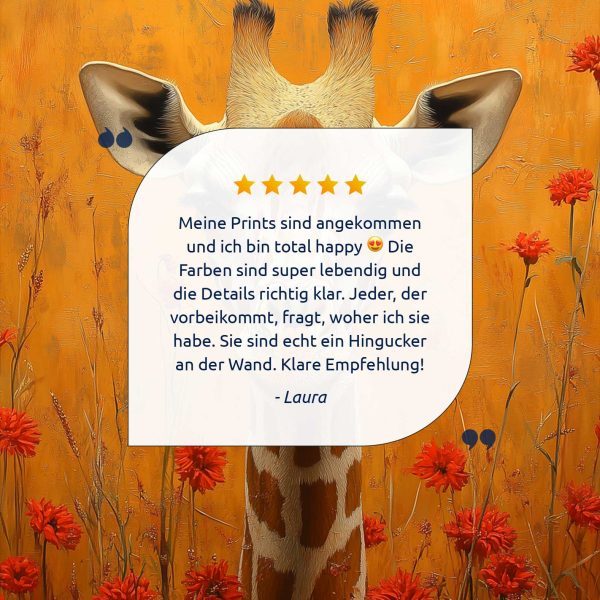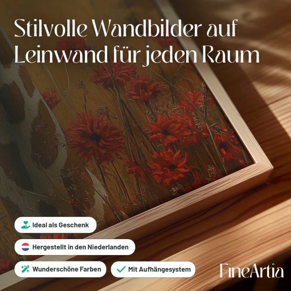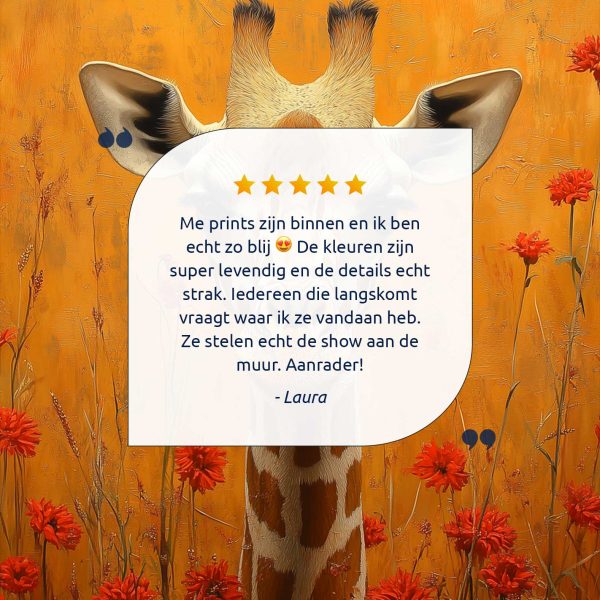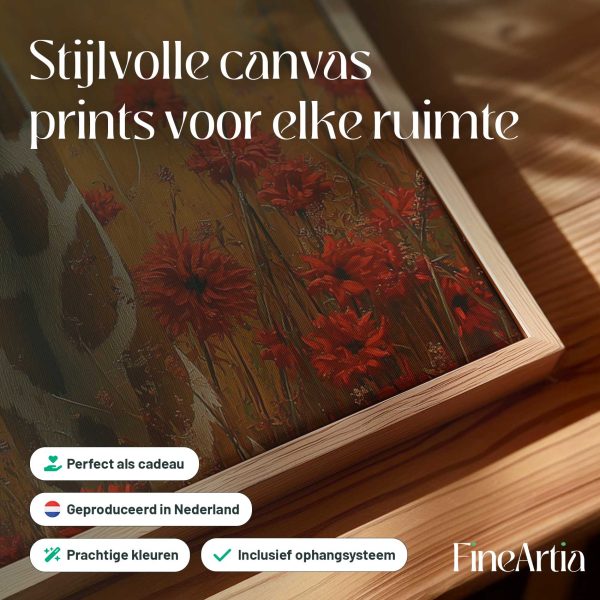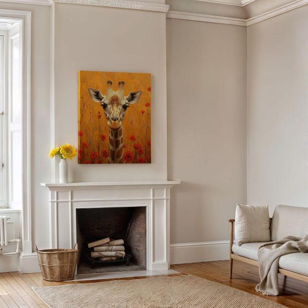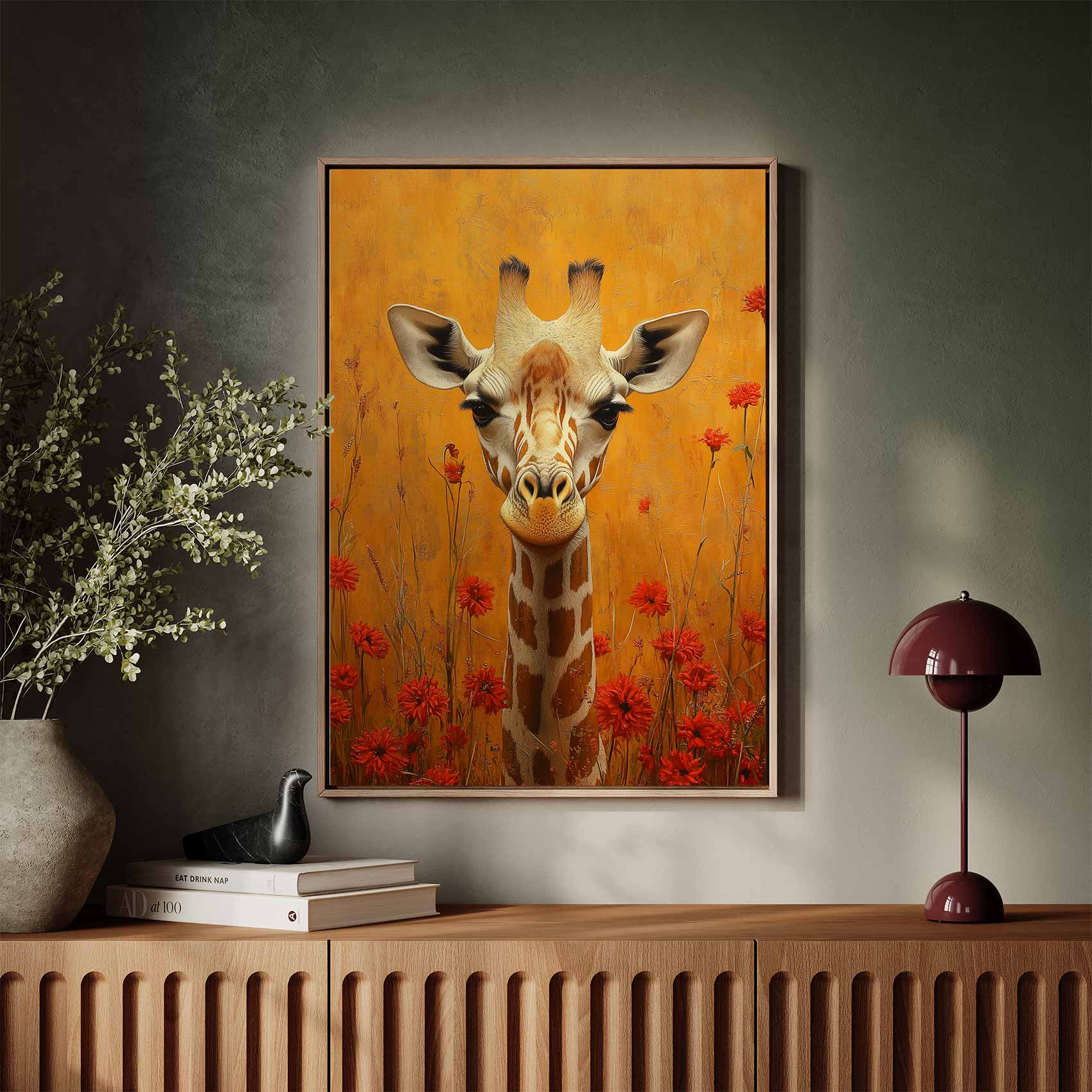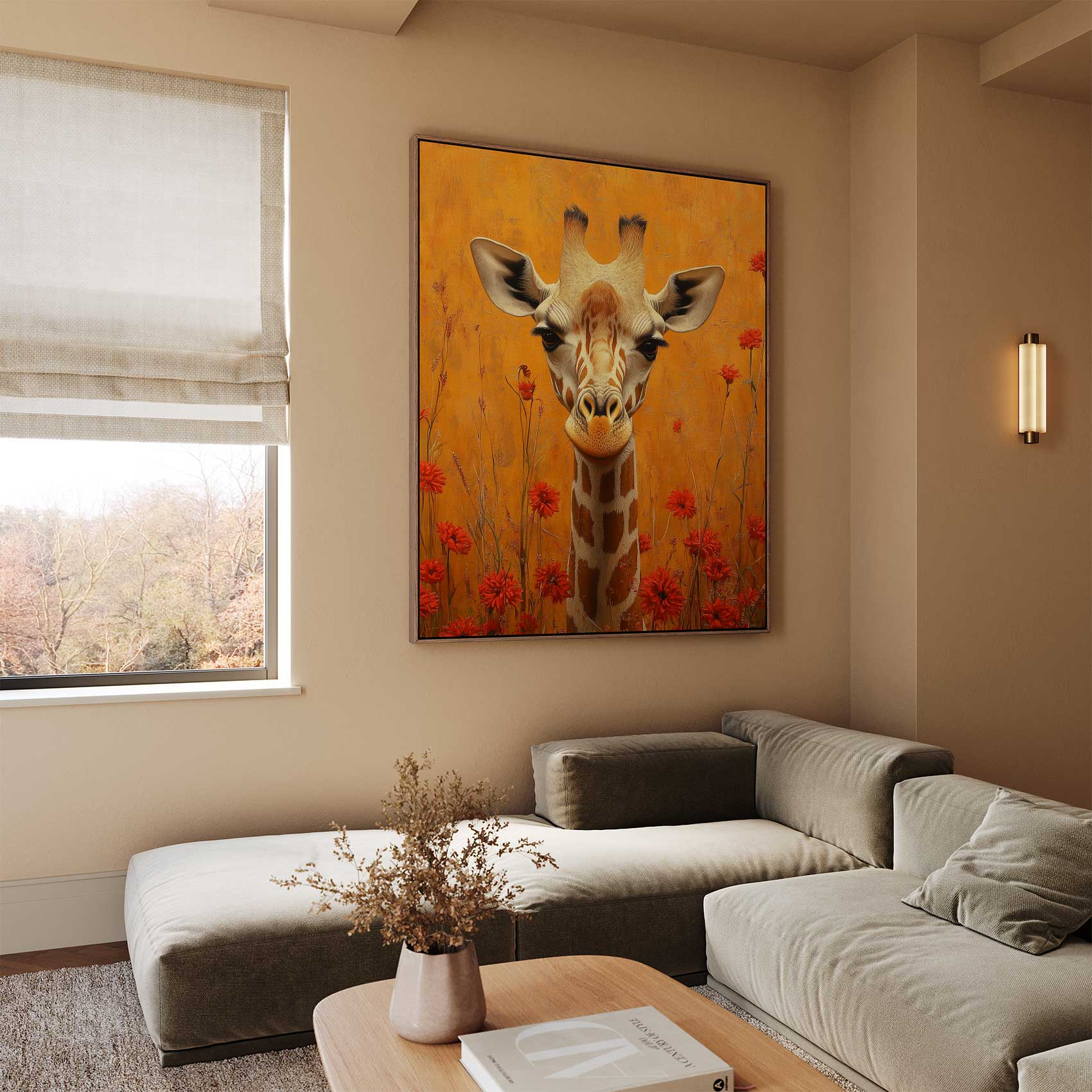 Terug naar collectie Canvas Giraf tussen rode bloemen