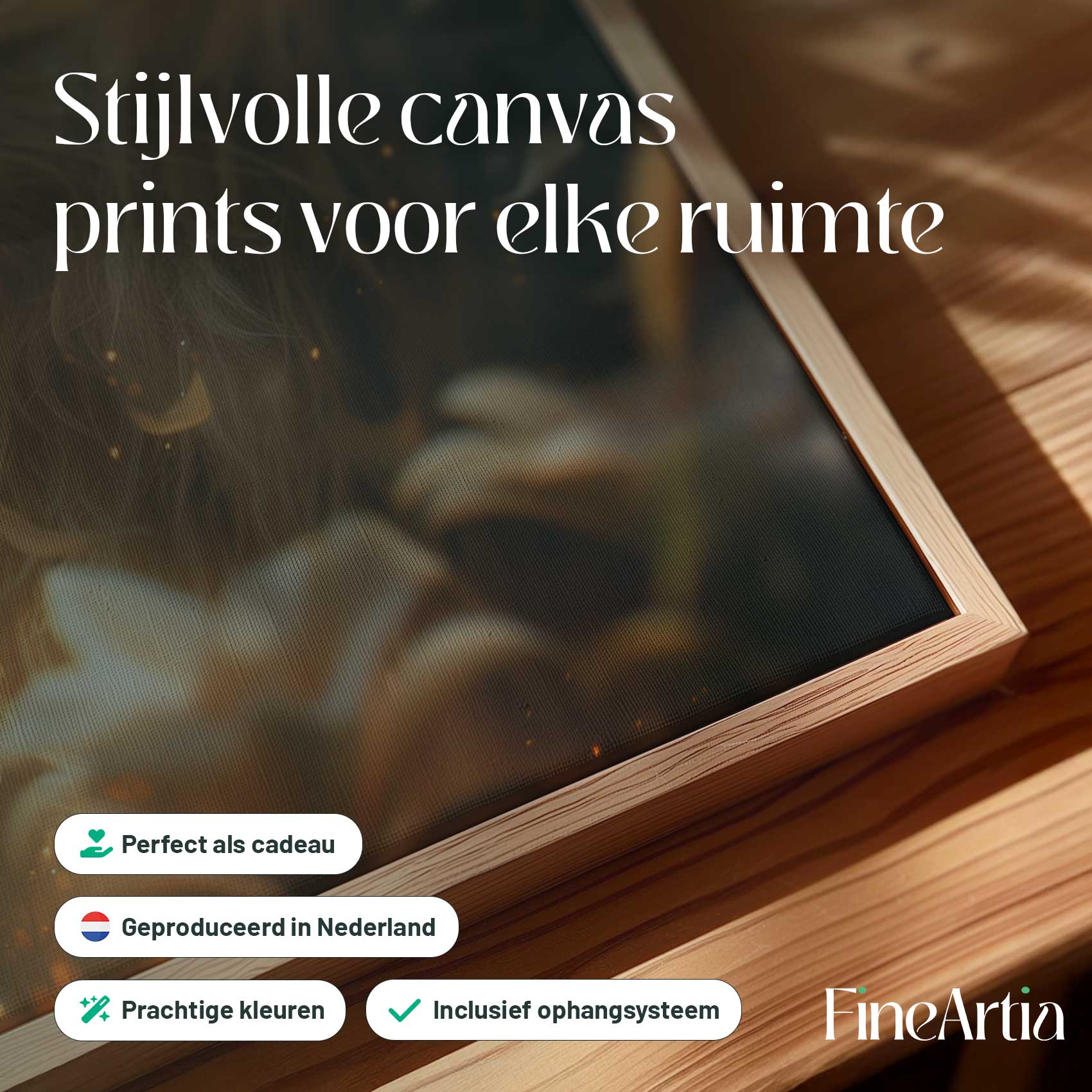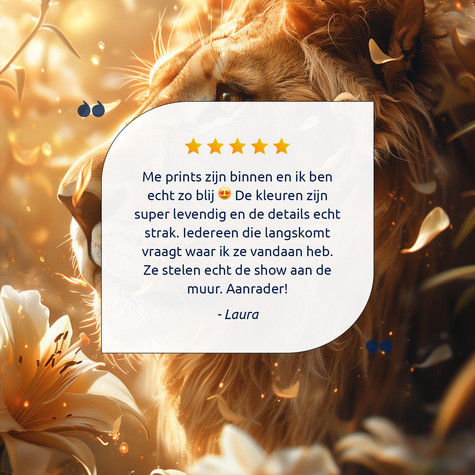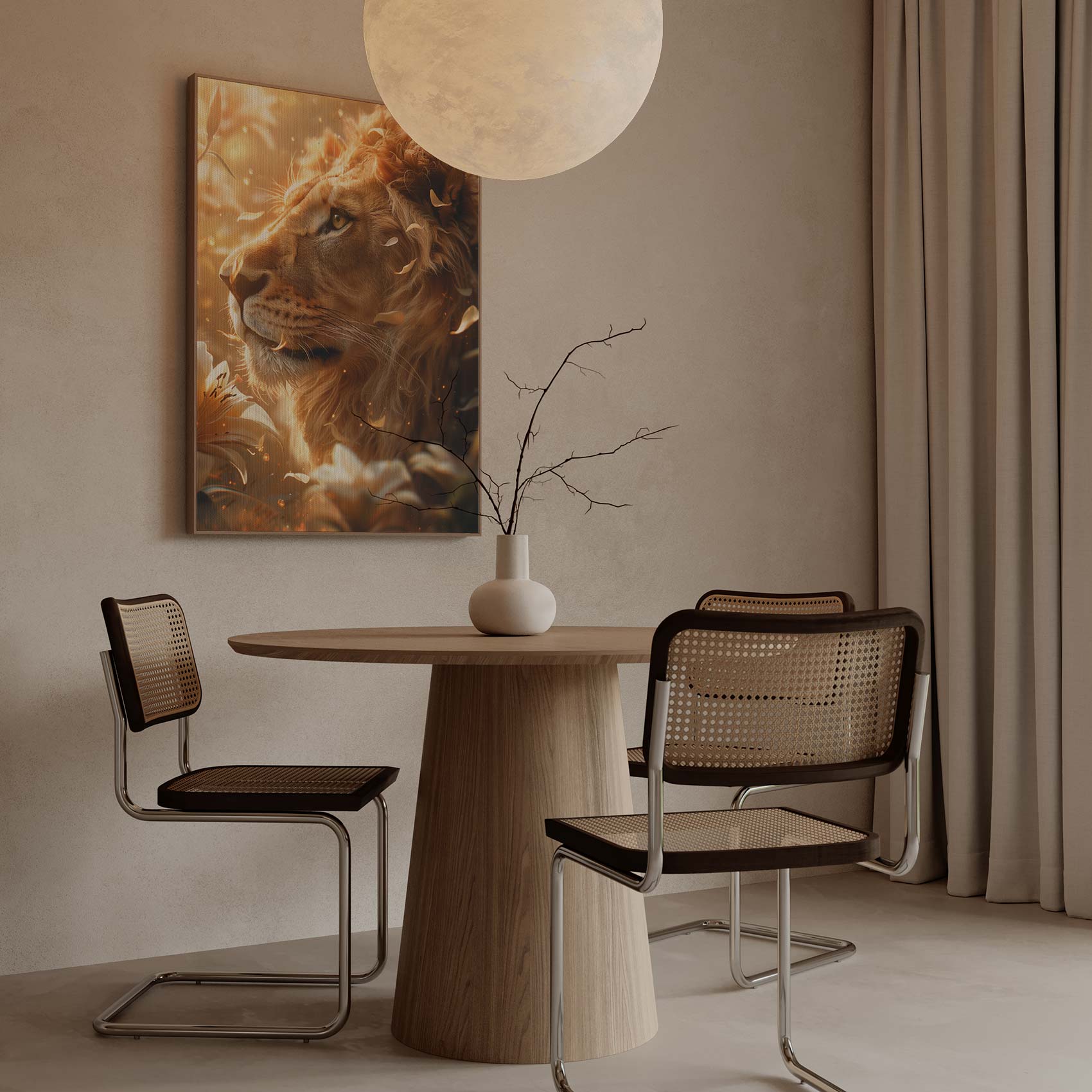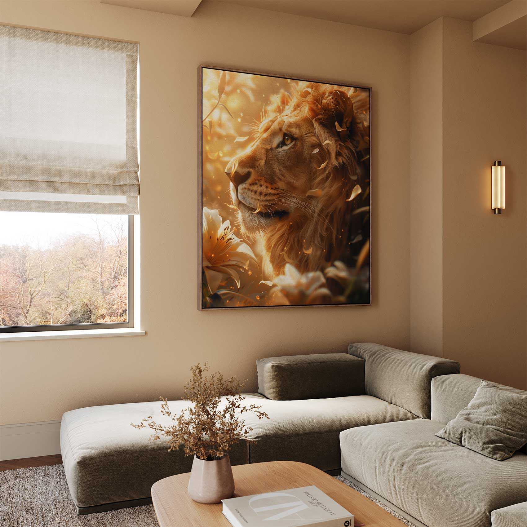 Terug naar collectie Canvas Gouden leeuw in bloemenpracht