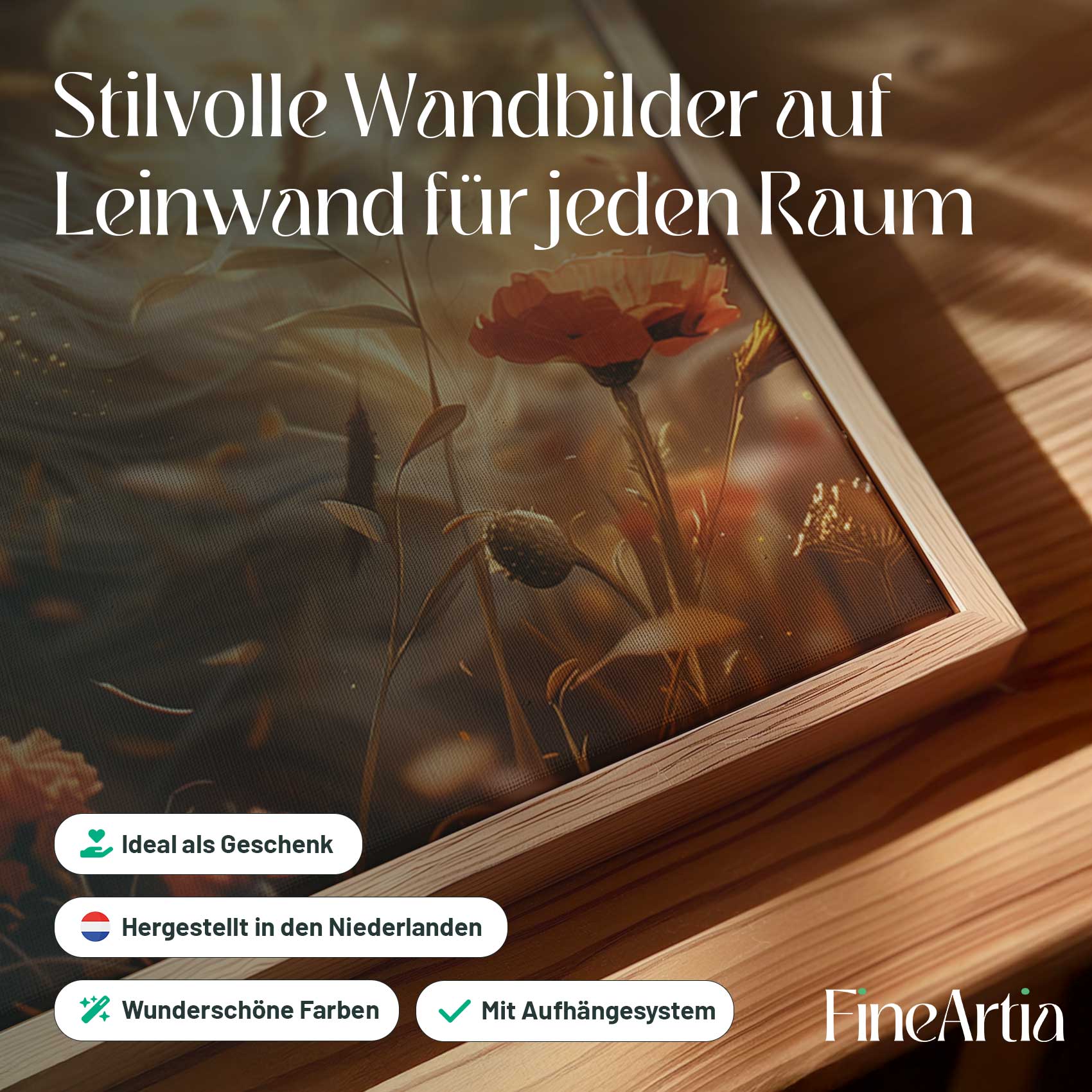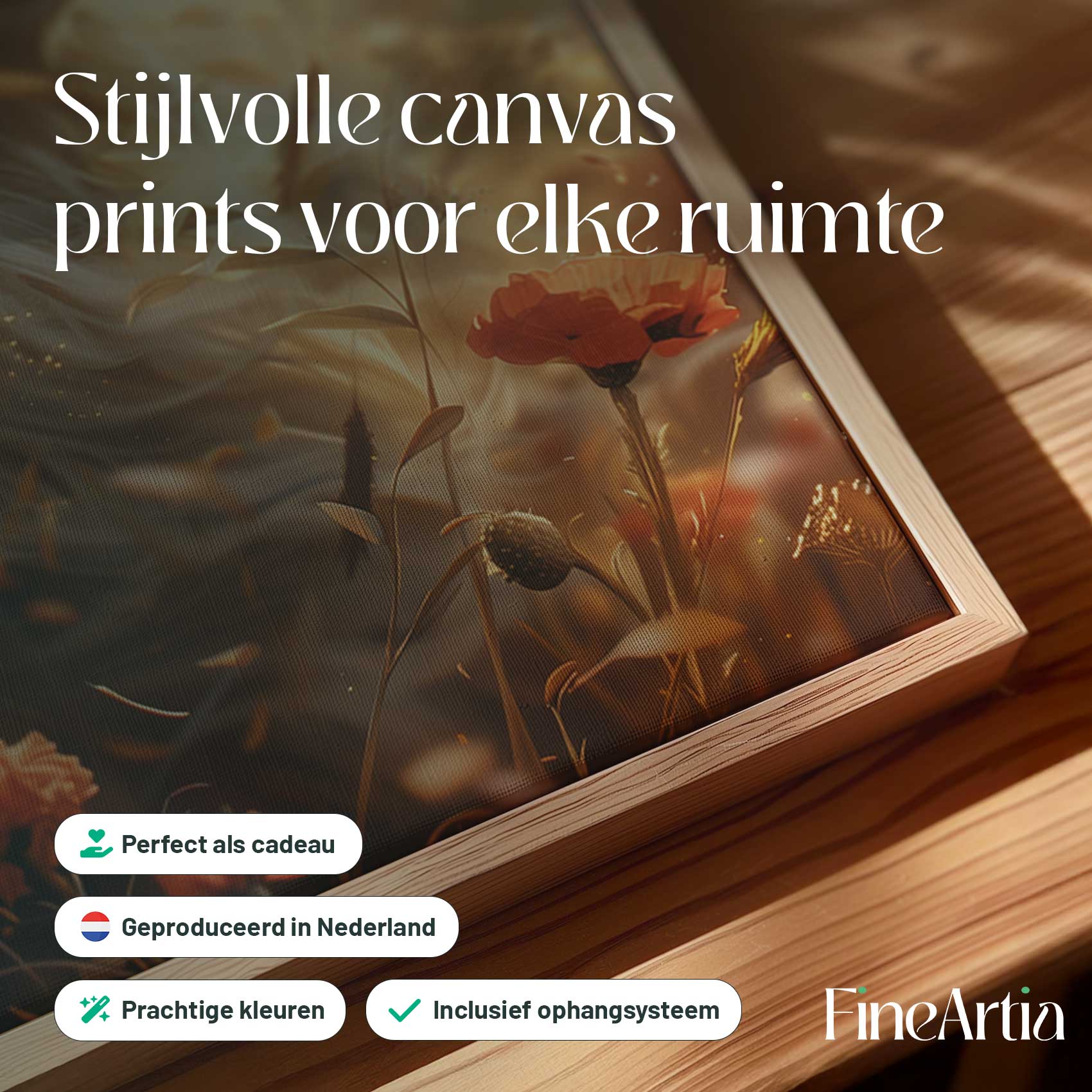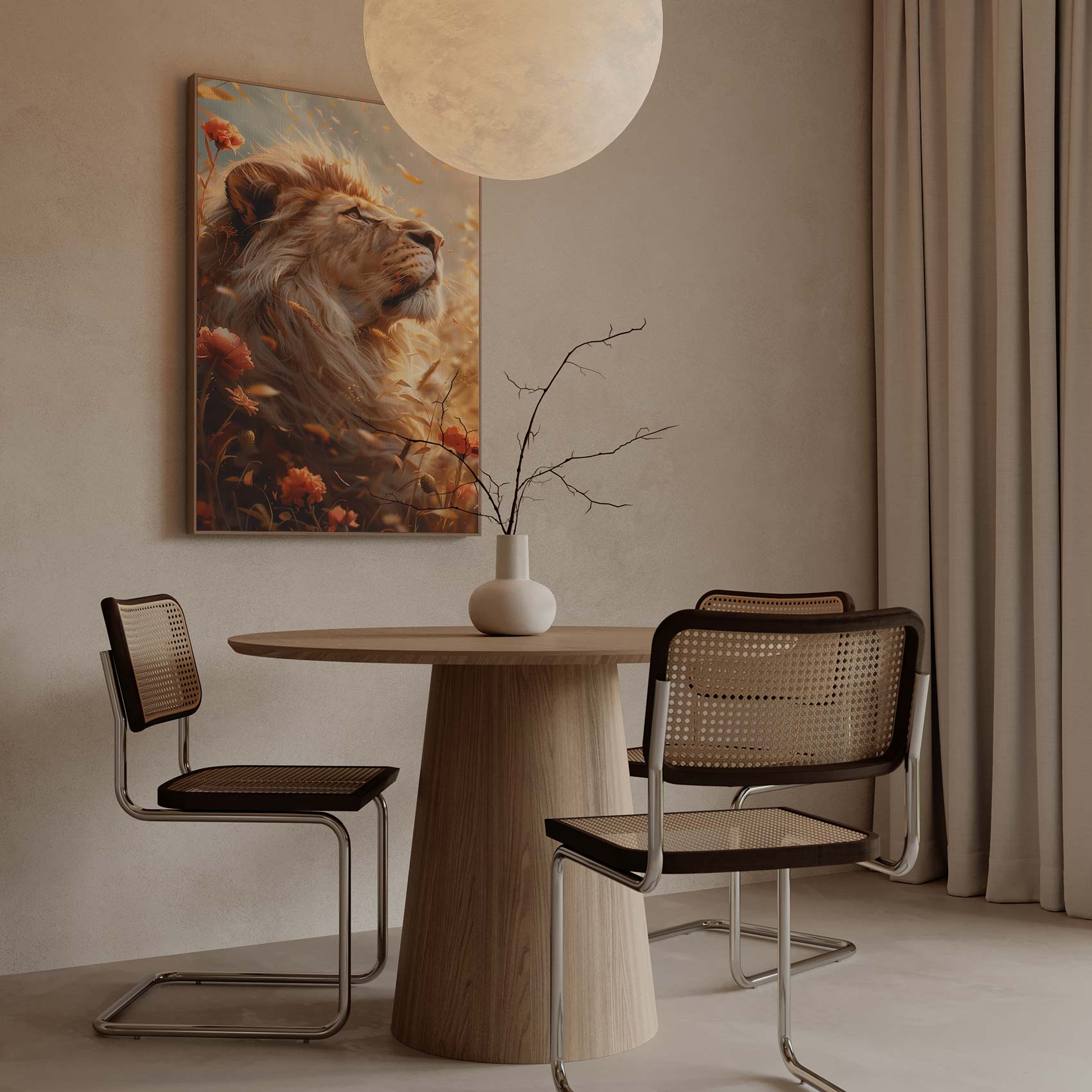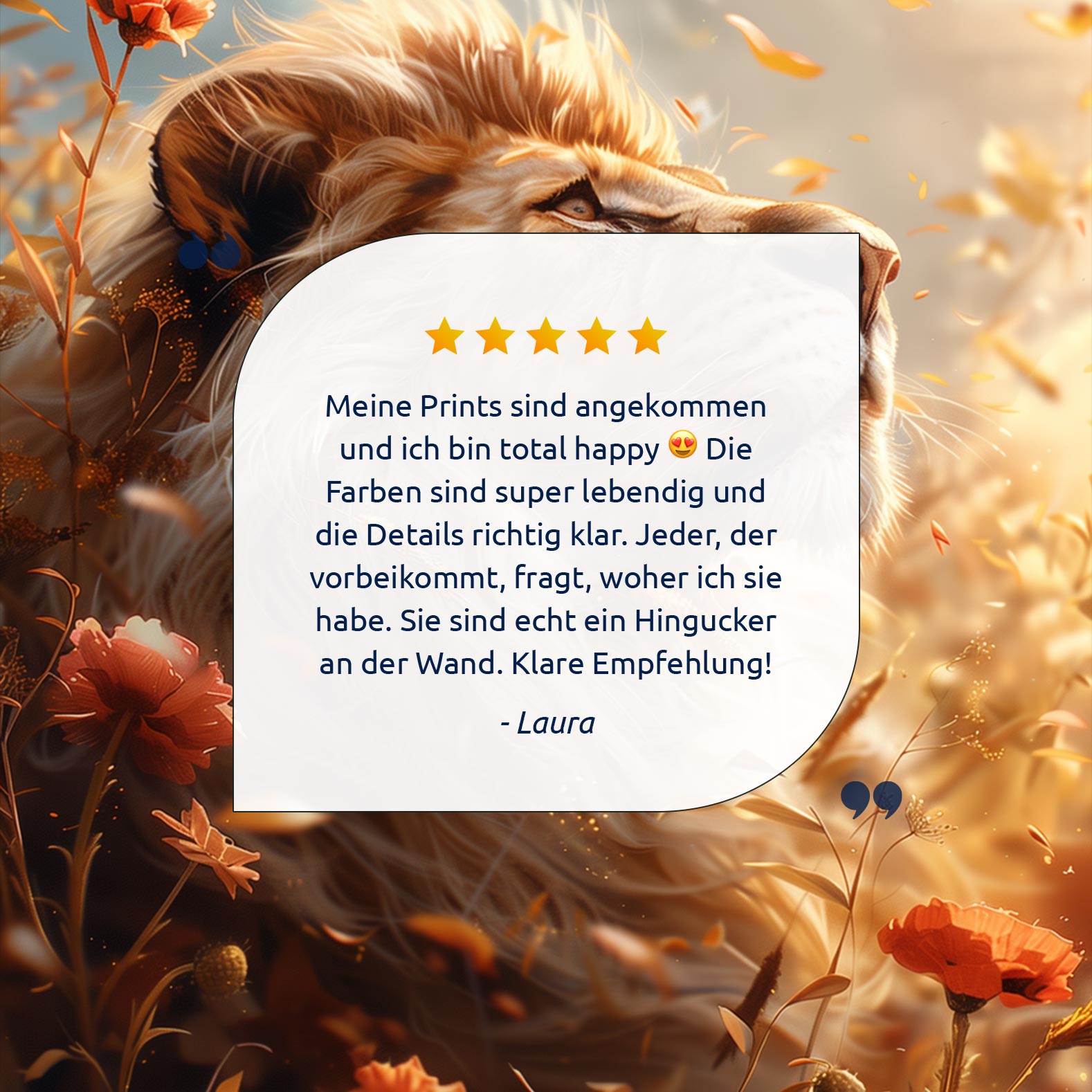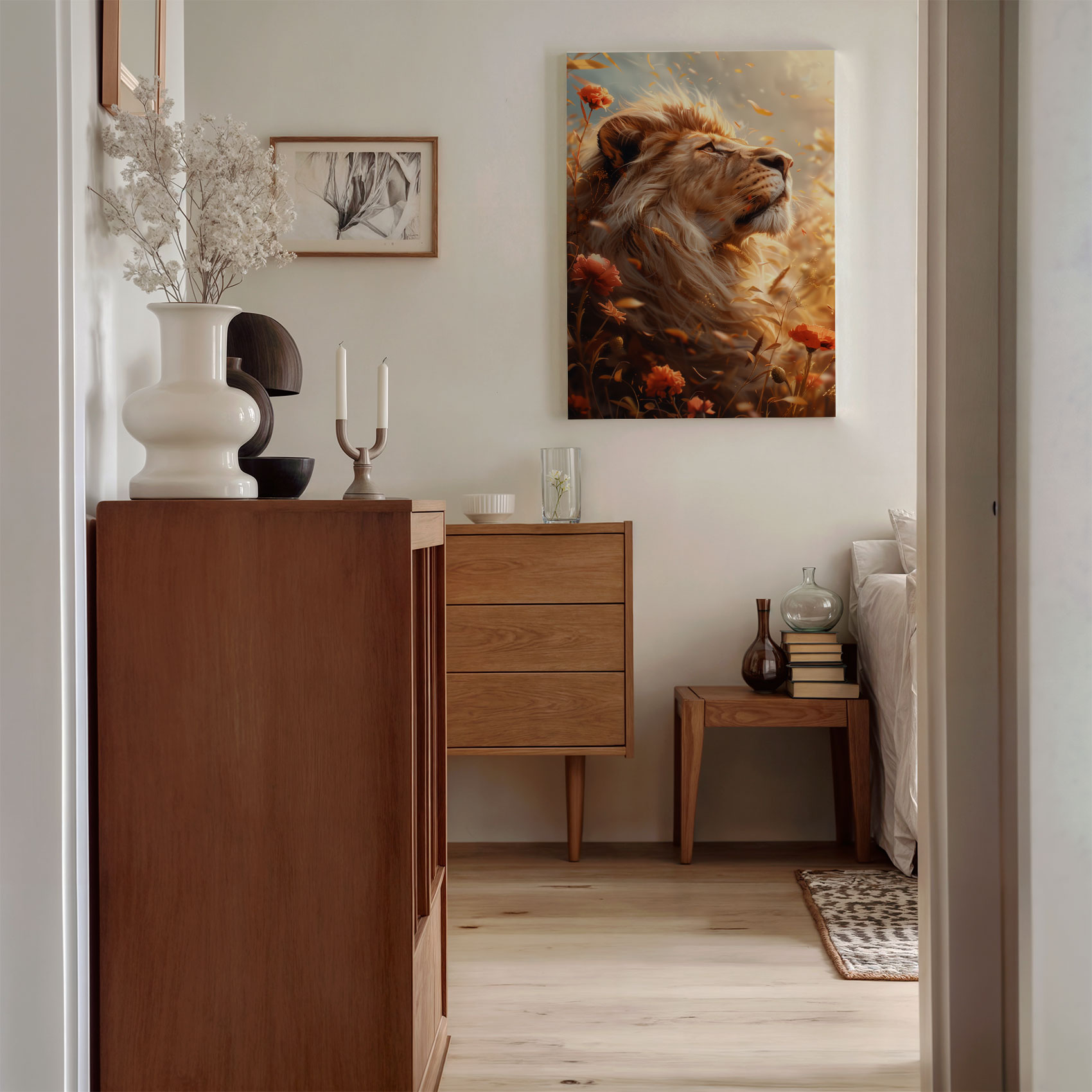 Terug naar collectie Canvas Gouden leeuw in bloemenveld