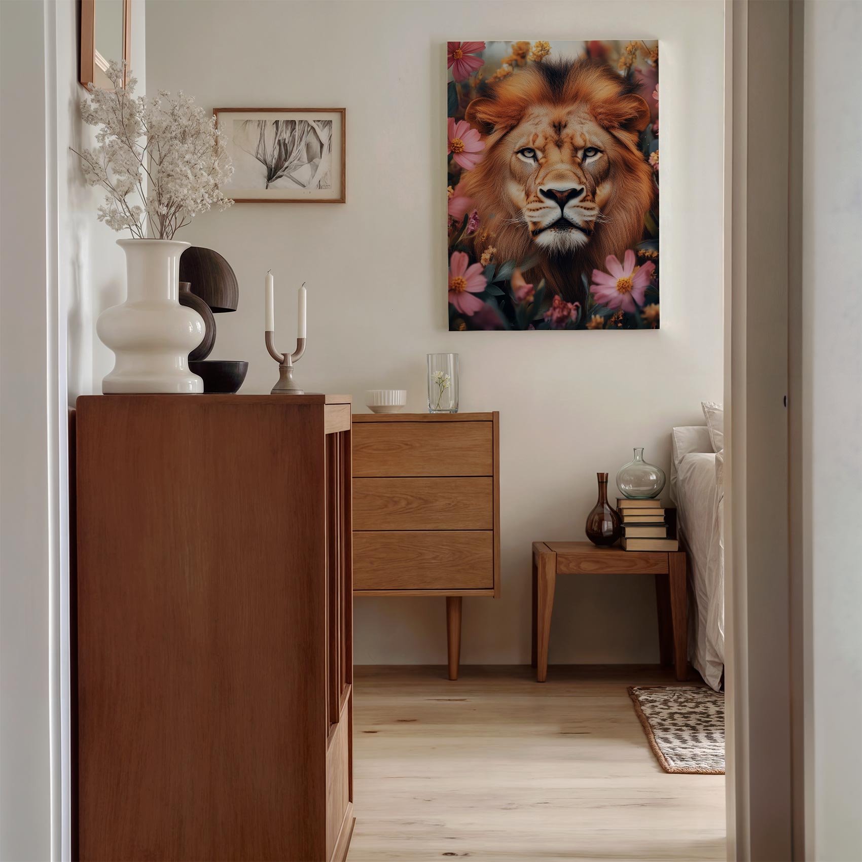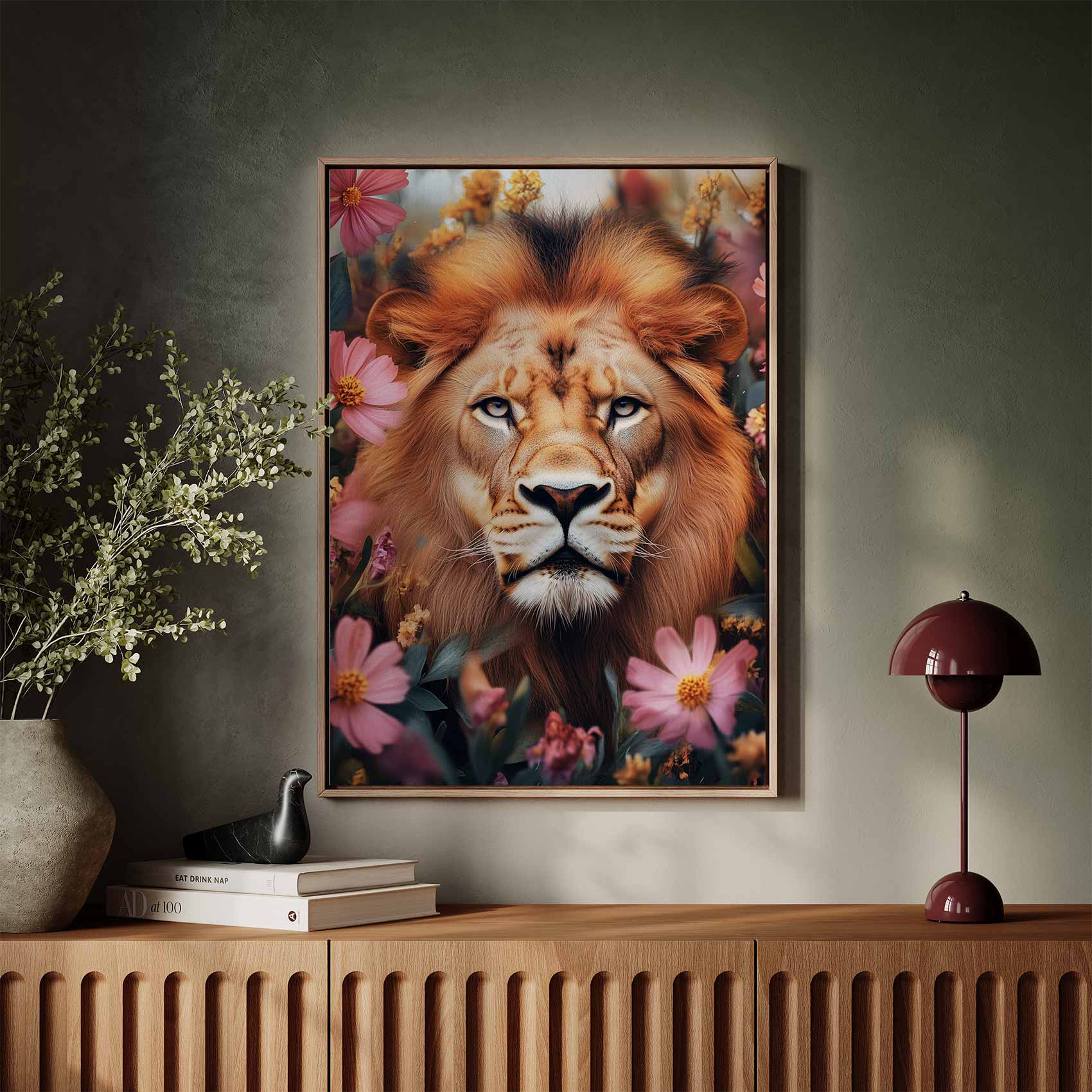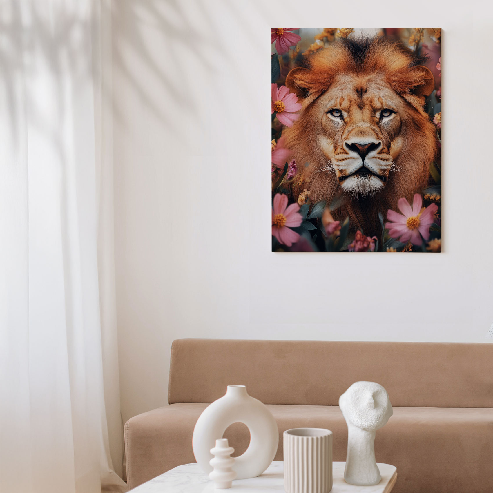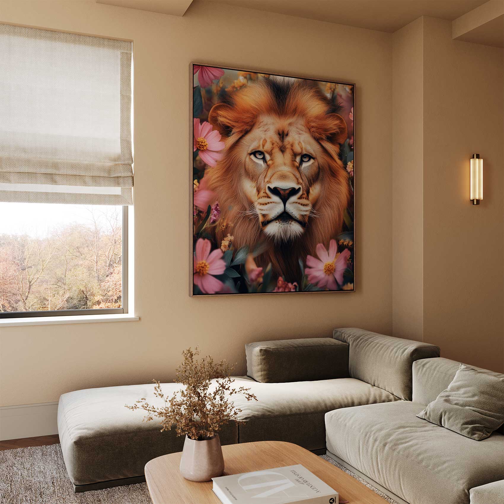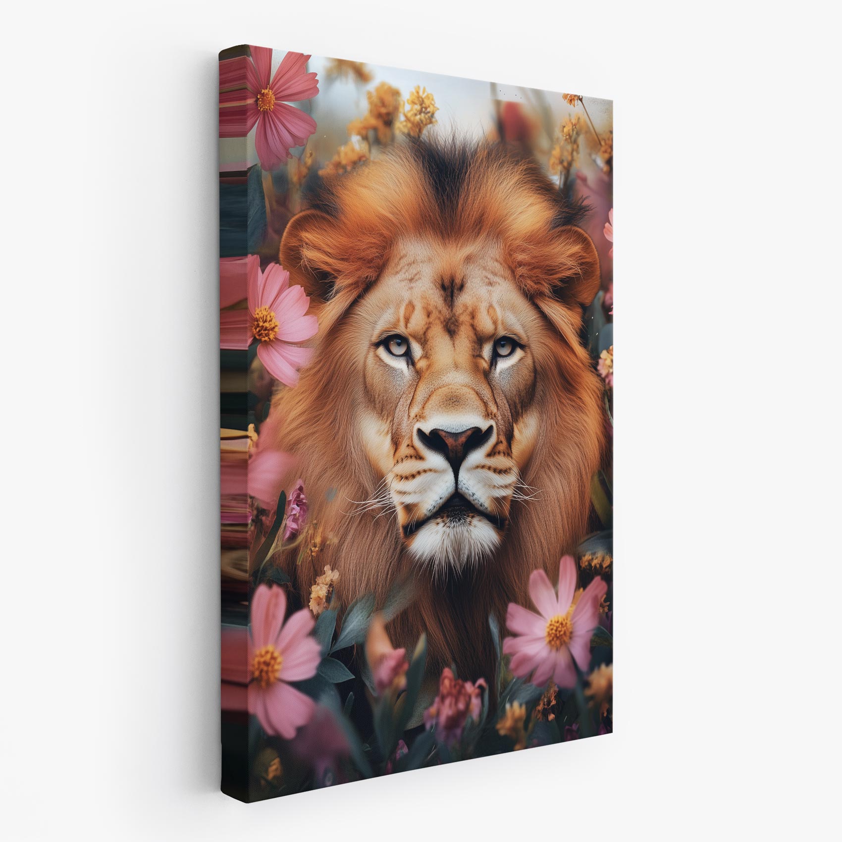 Gouden leeuw tussen bloemen