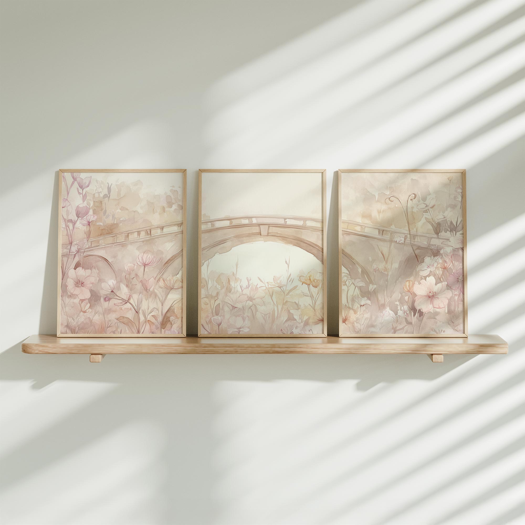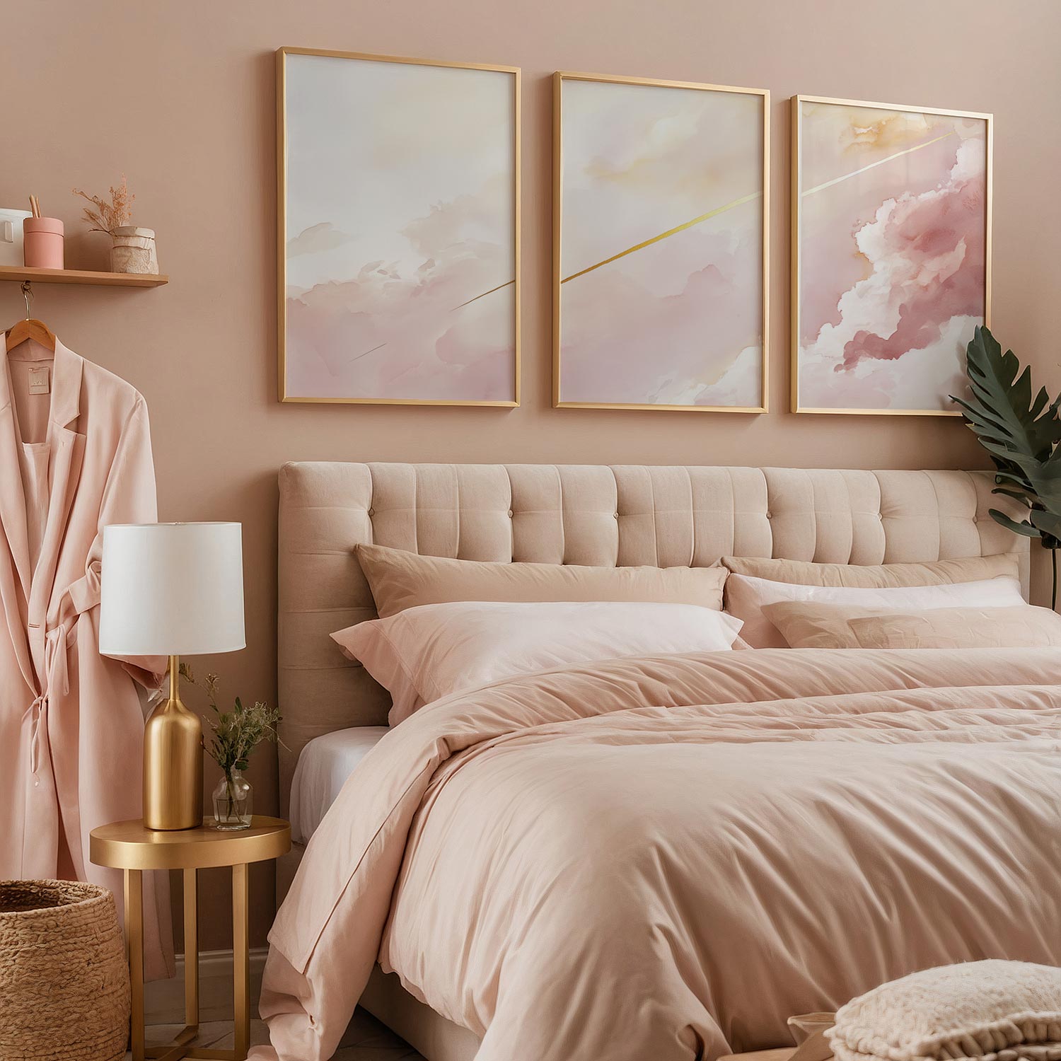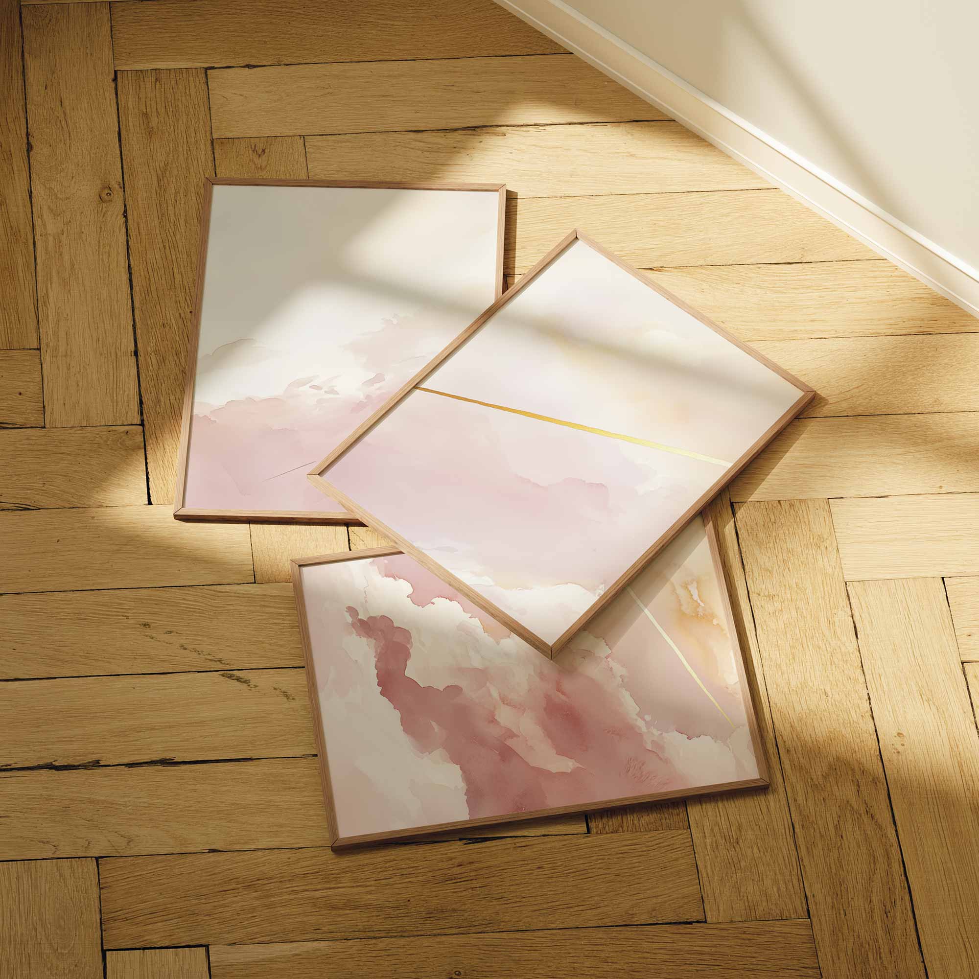 Gouden Lijn in Roze Wolkenhemel – Dromerige Wanddecoratie