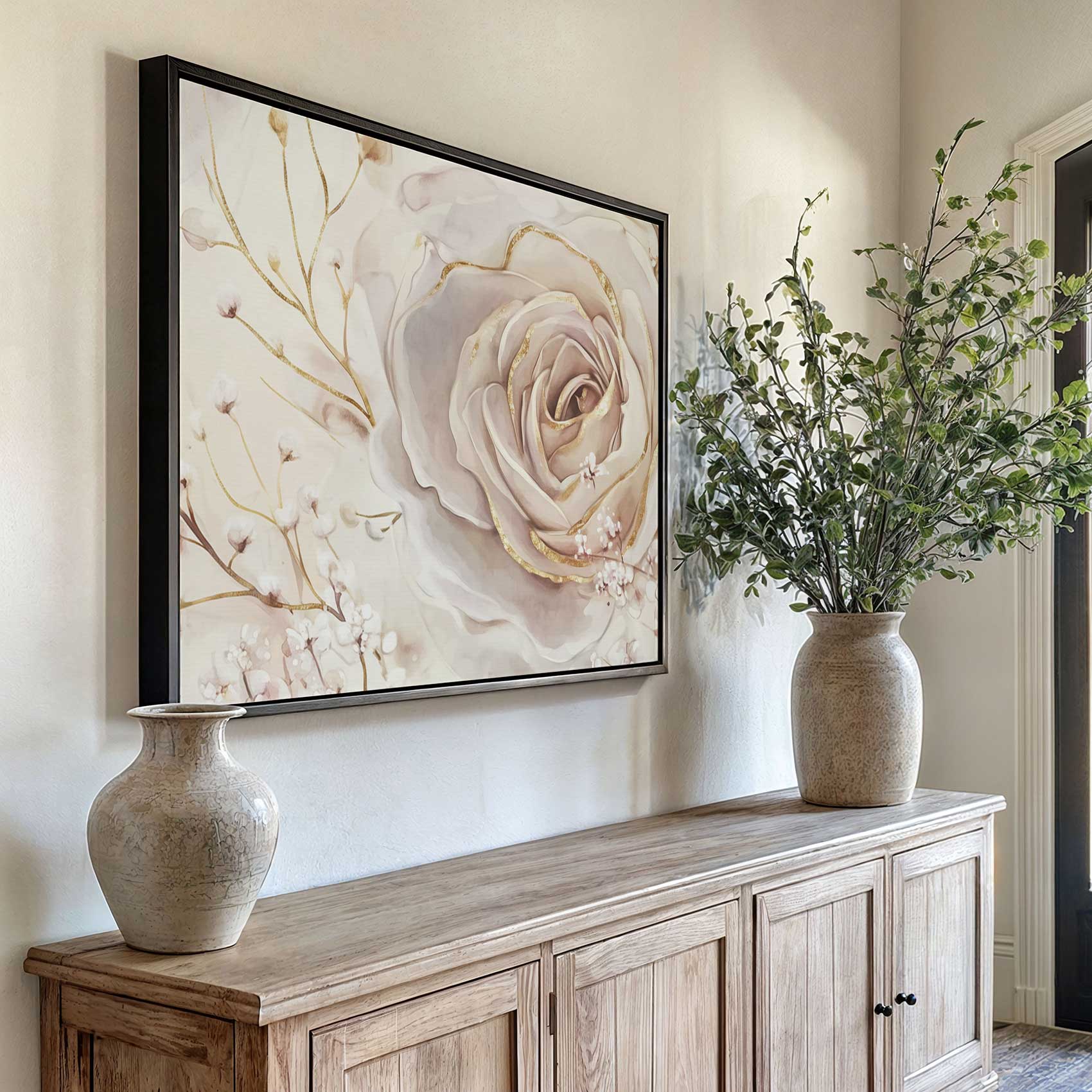 Terug naar collectie Canvas Bloemen Gouden Roos in Elegante Sereniteit