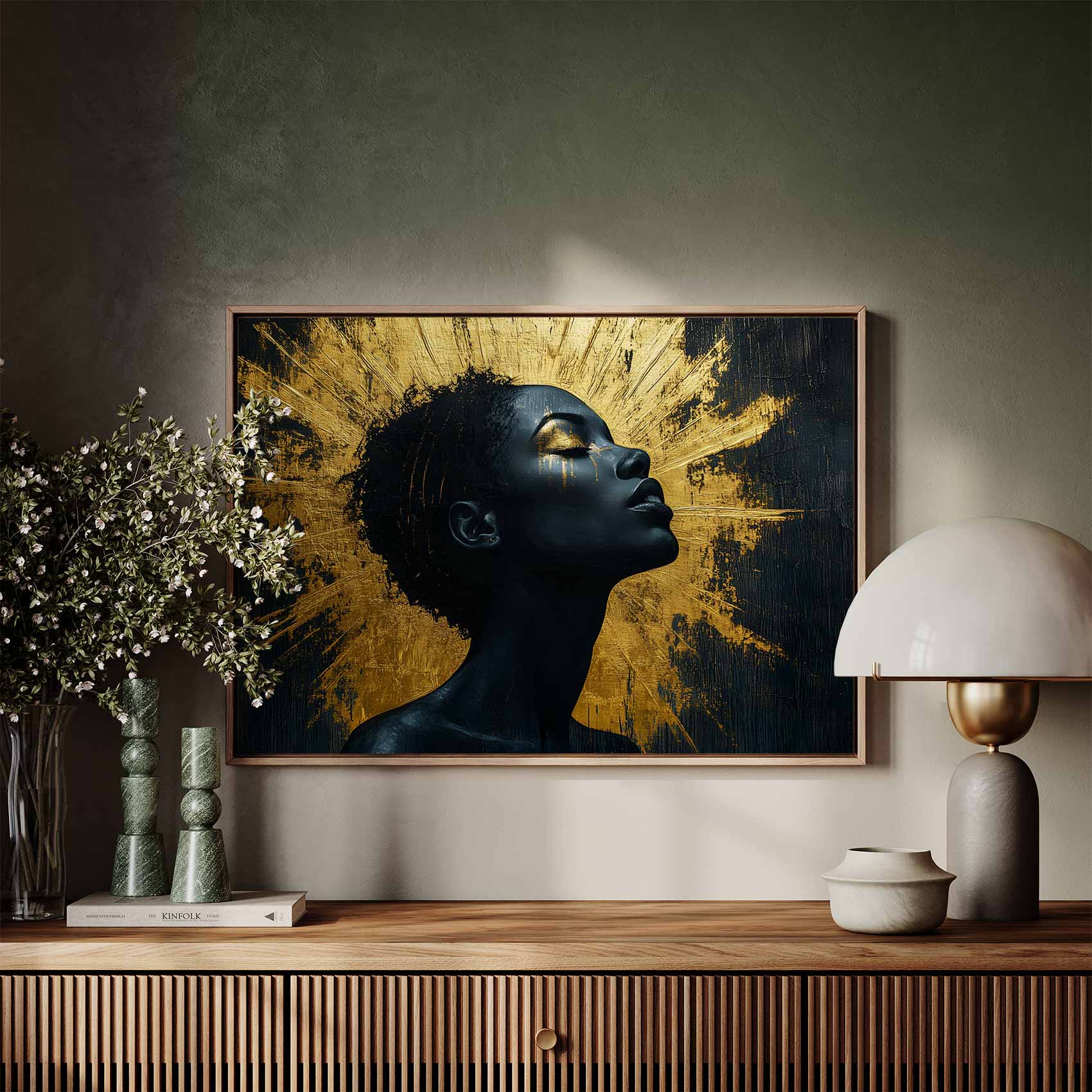 Gouden rustportret op zwart