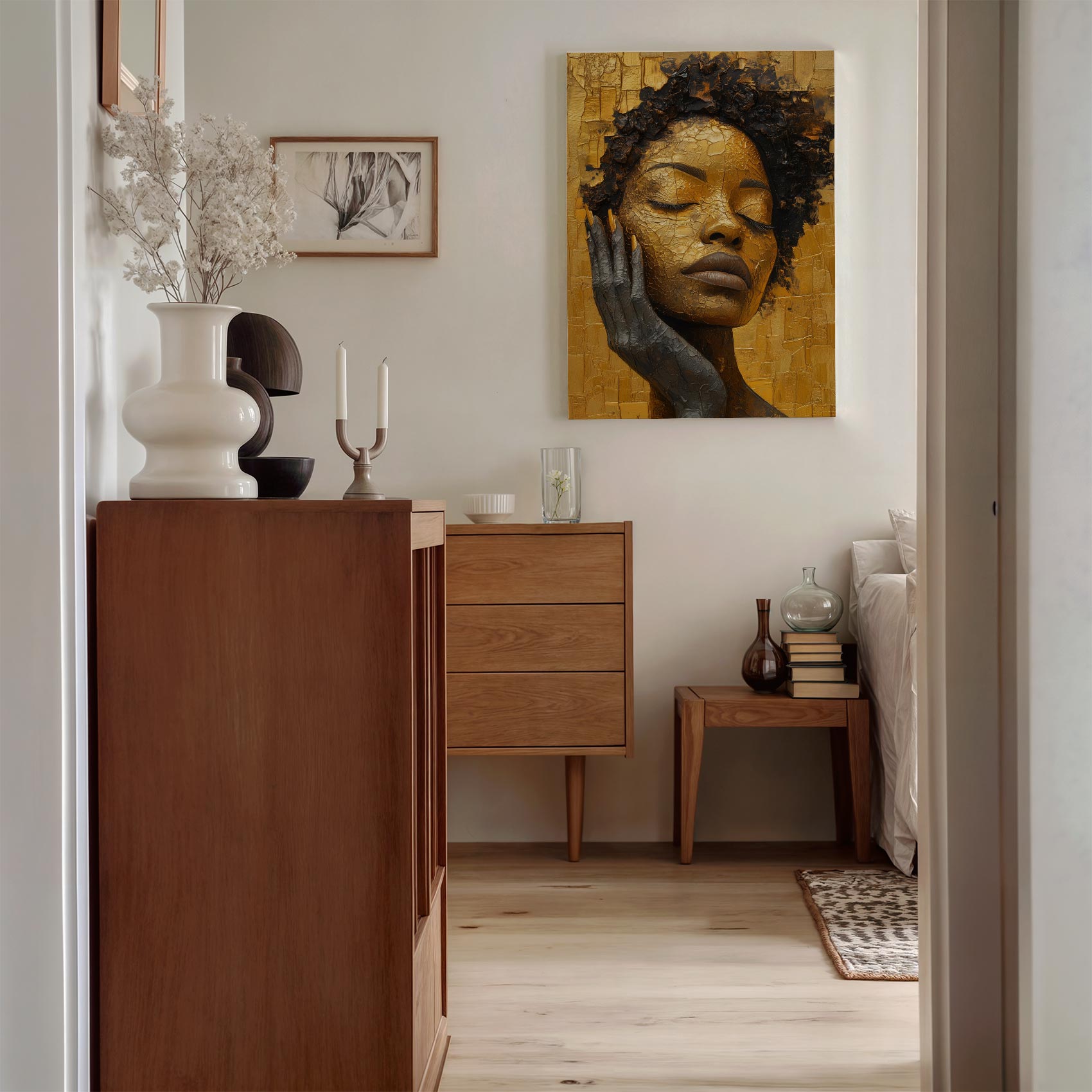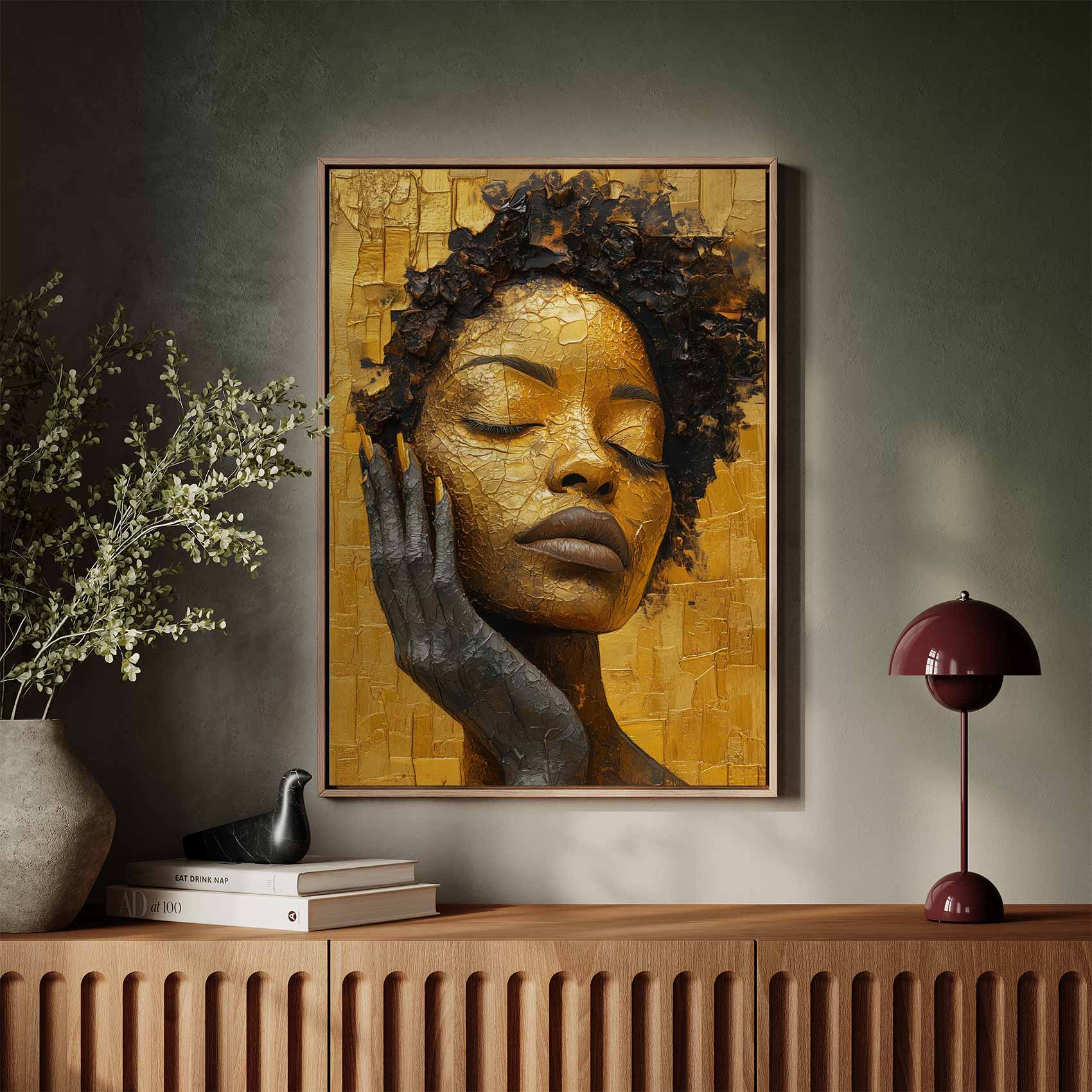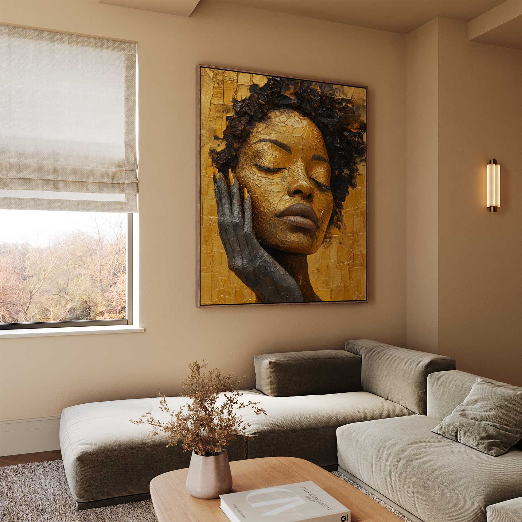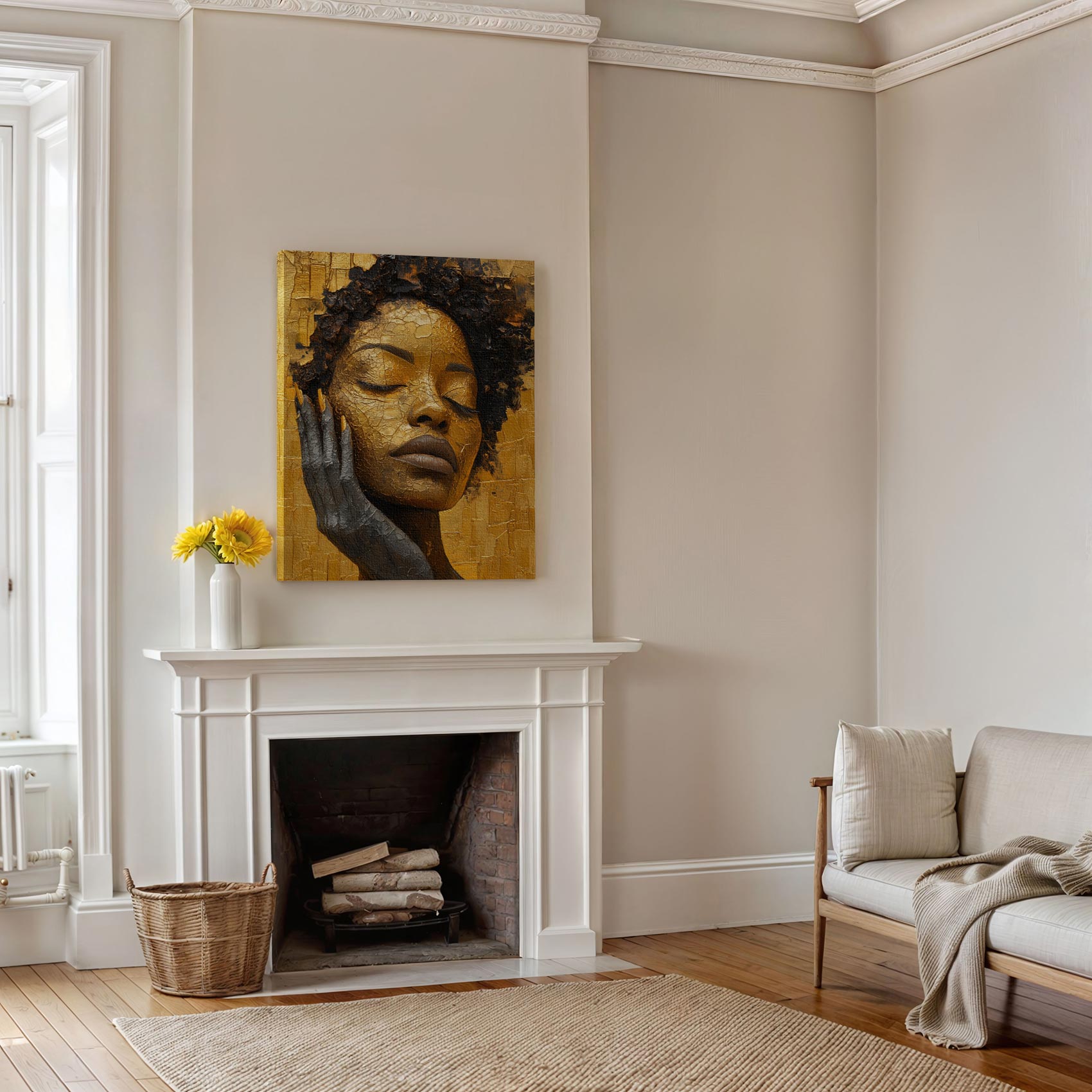 Terug naar collectie Canvas Gouden vrouw in rust
