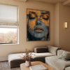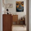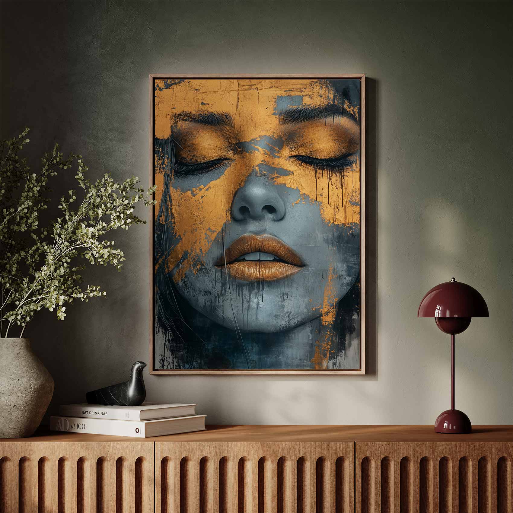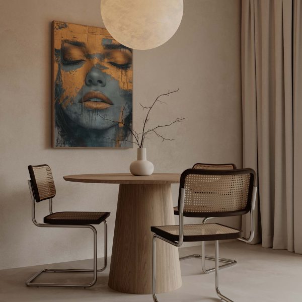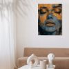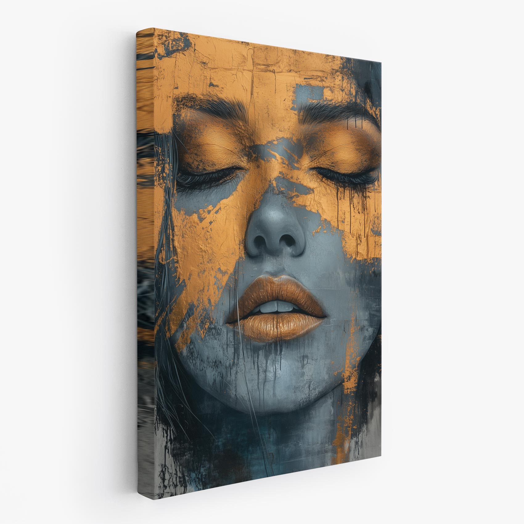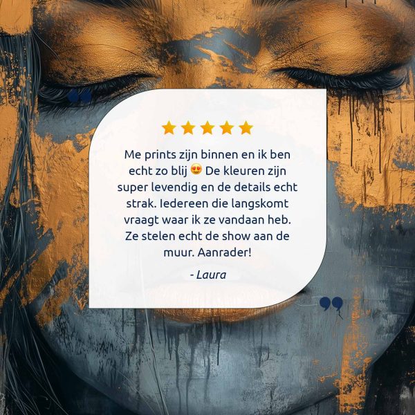 Gouden vrouw met blauwe achtergrond