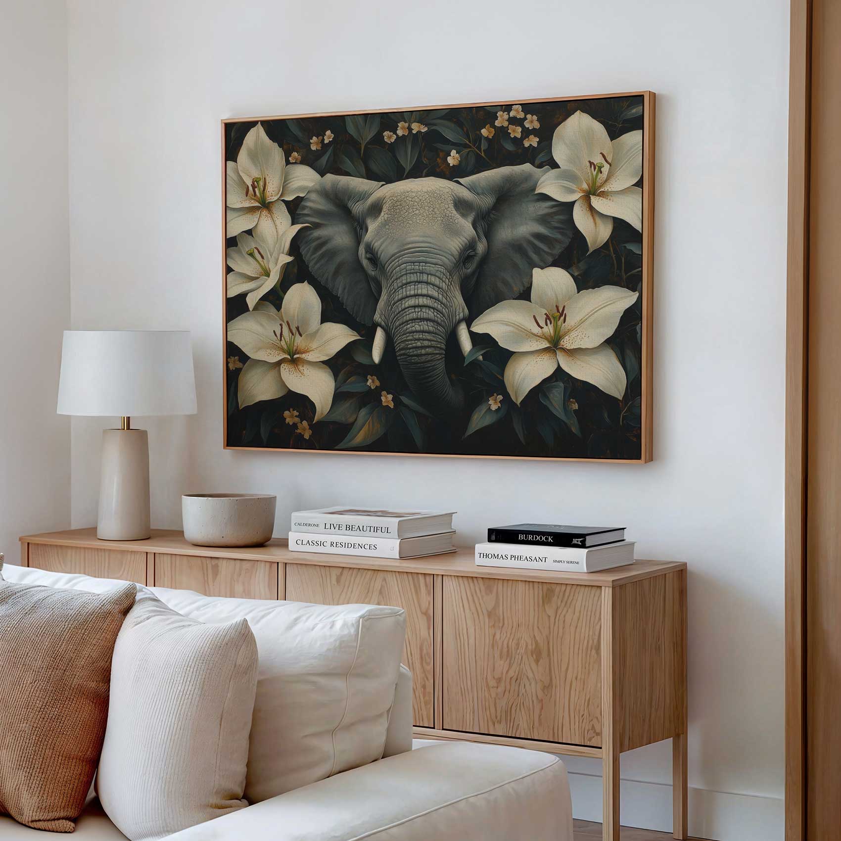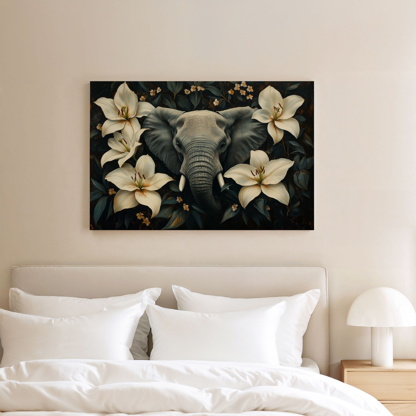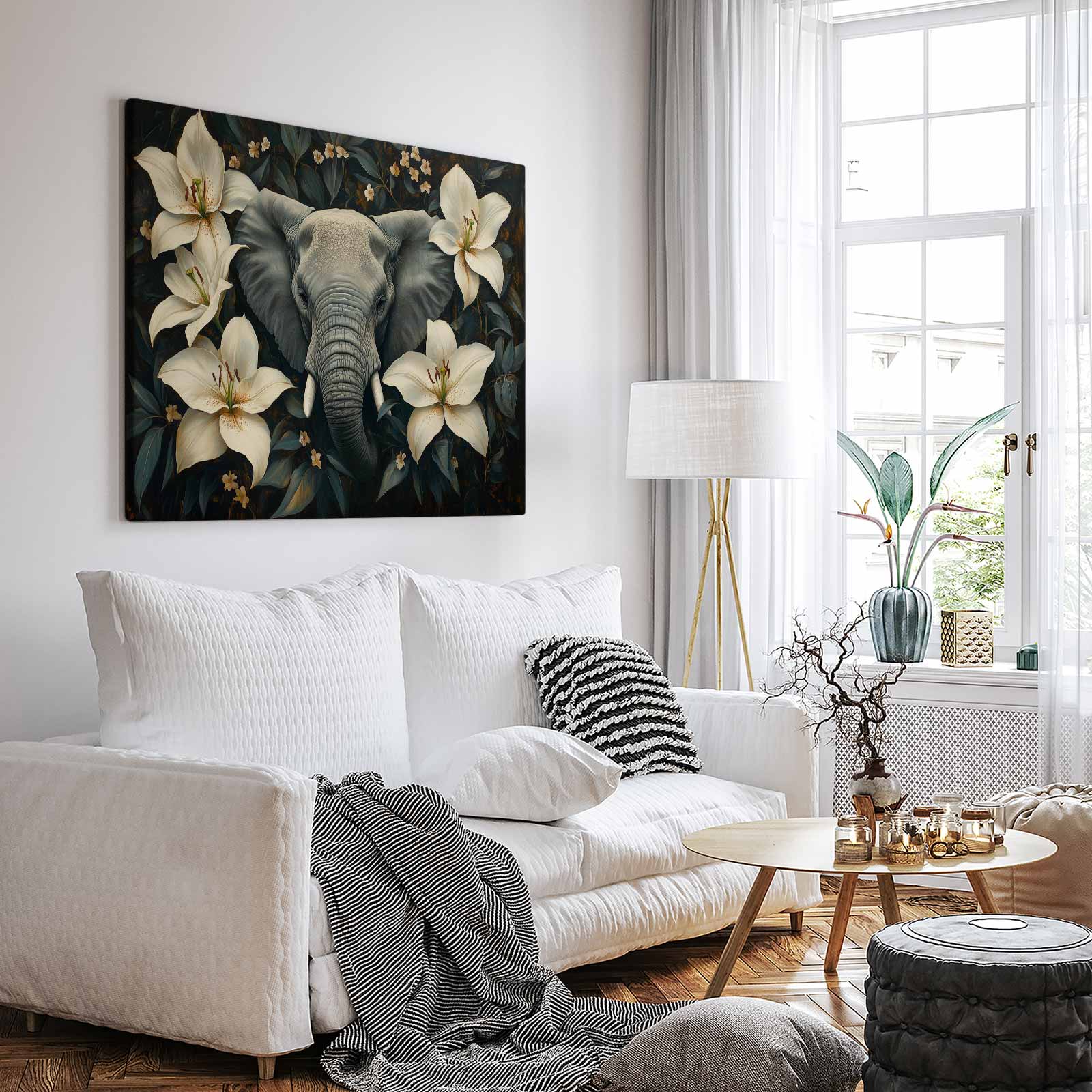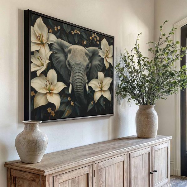 Grijze olifant tussen bloemen