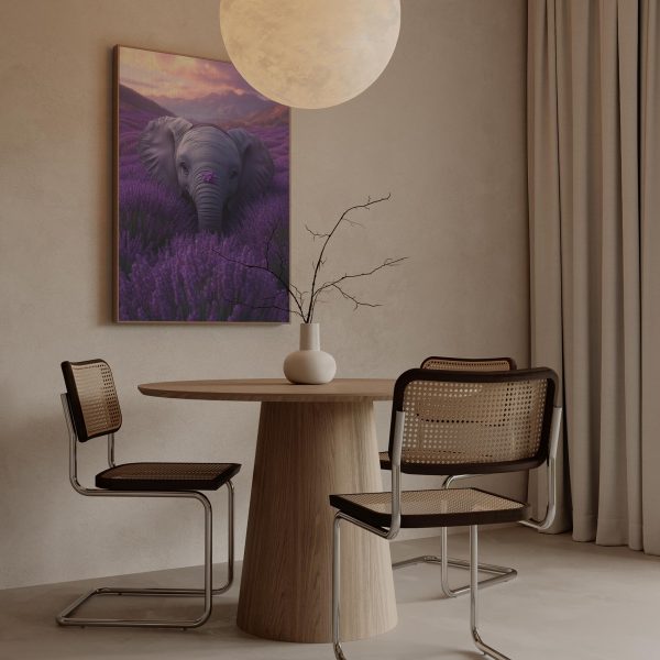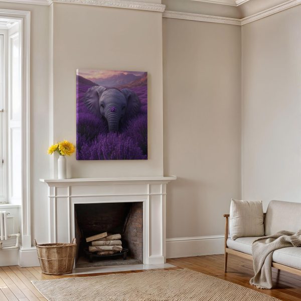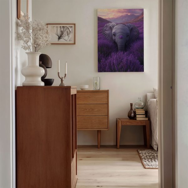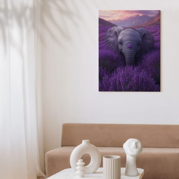 Terug naar collectie Canvas Grijze olifant tussen paarse bloemen