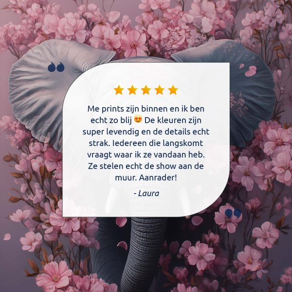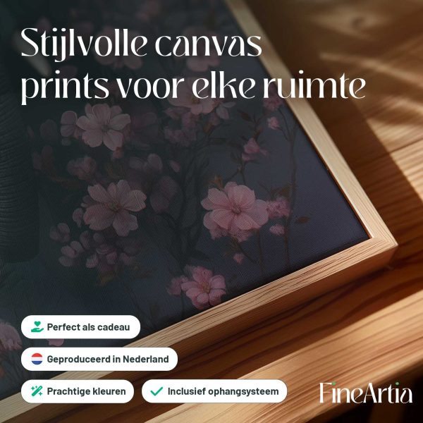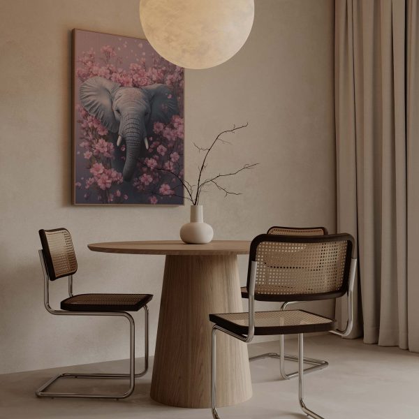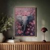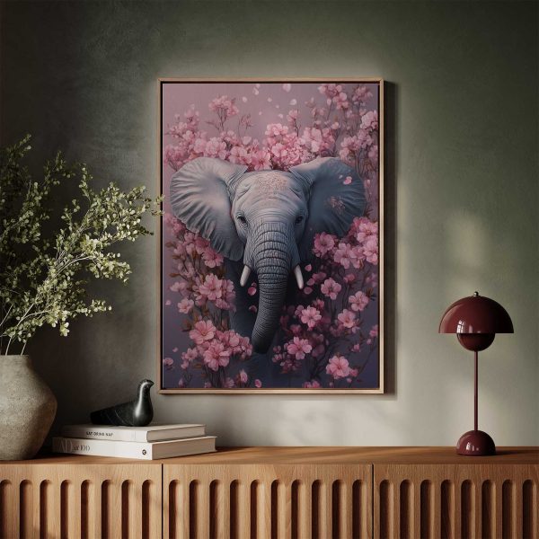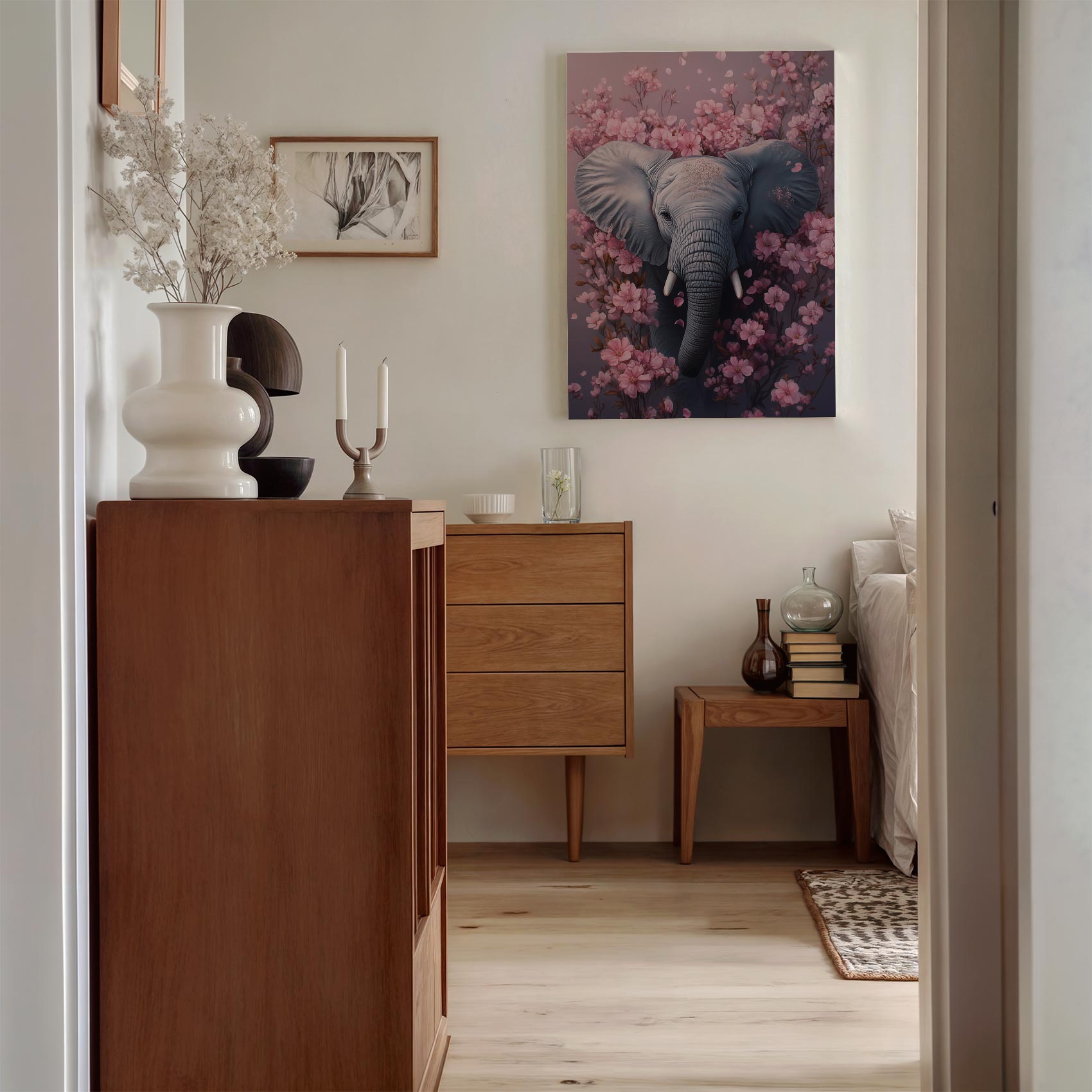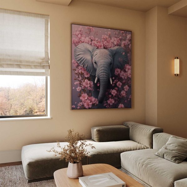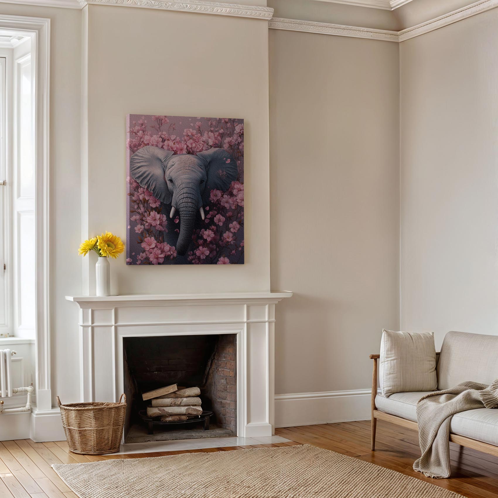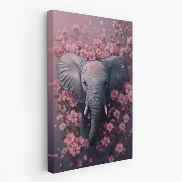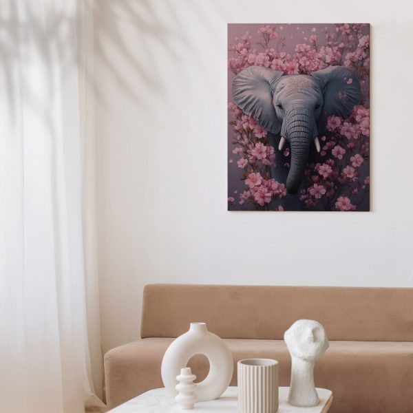 Terug naar collectie Canvas Grijze olifant tussen roze bloemen