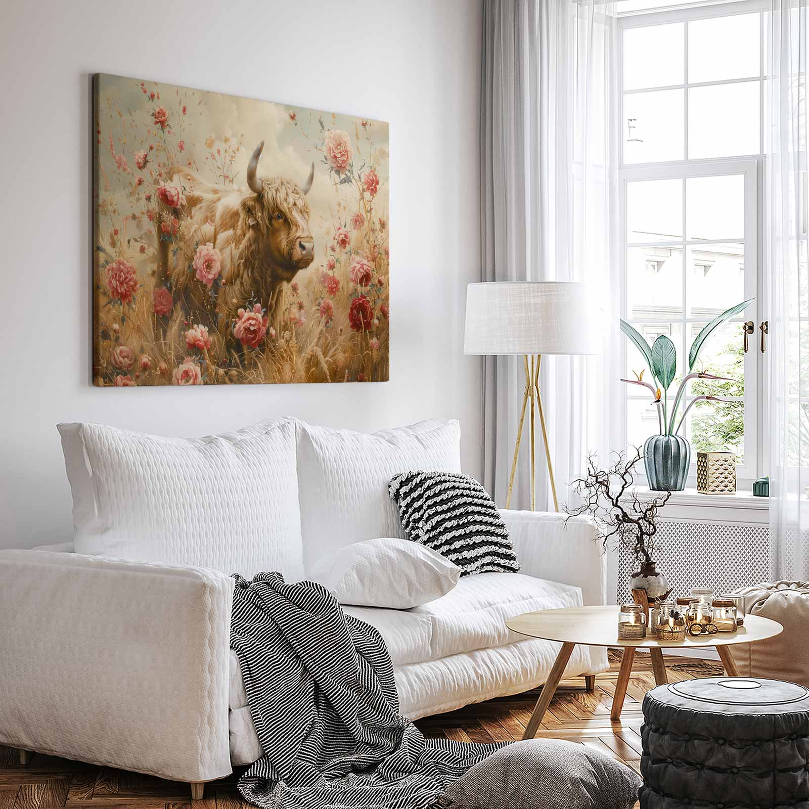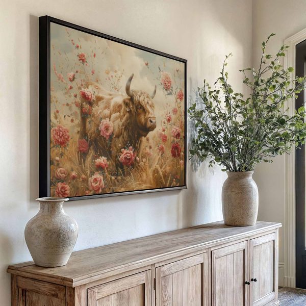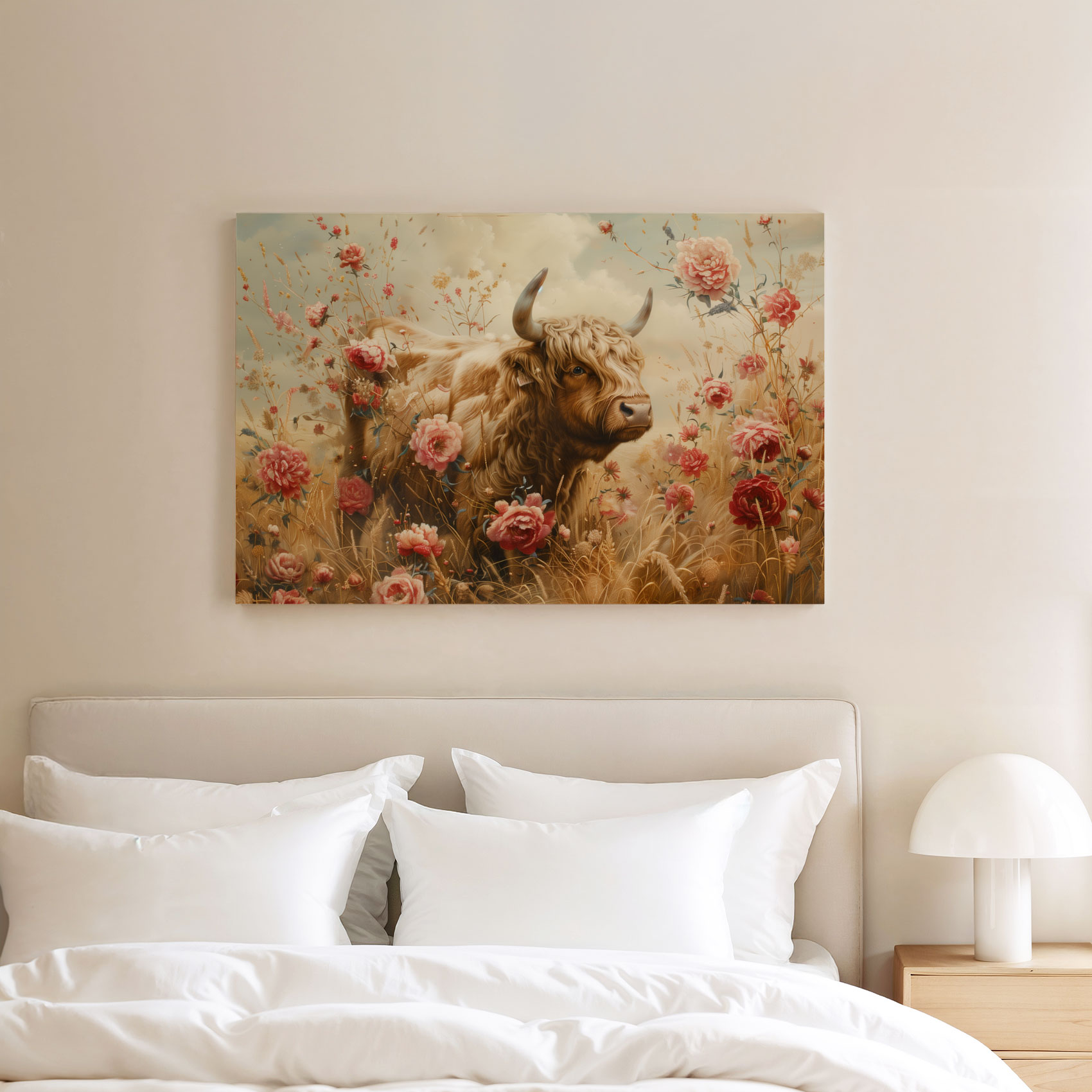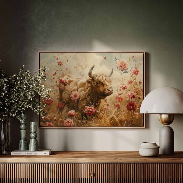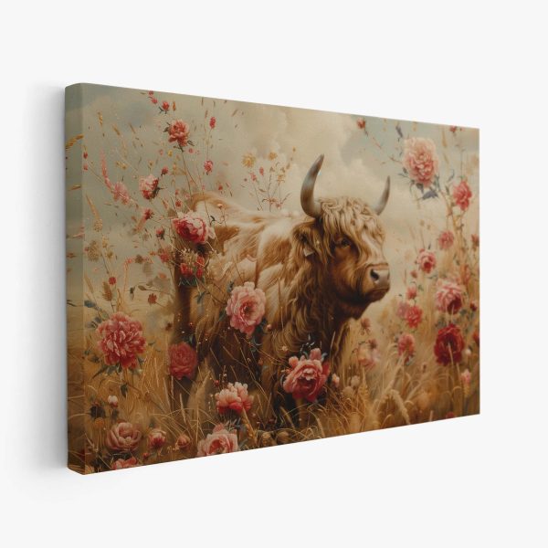 Grote stier tussen bloemenveld