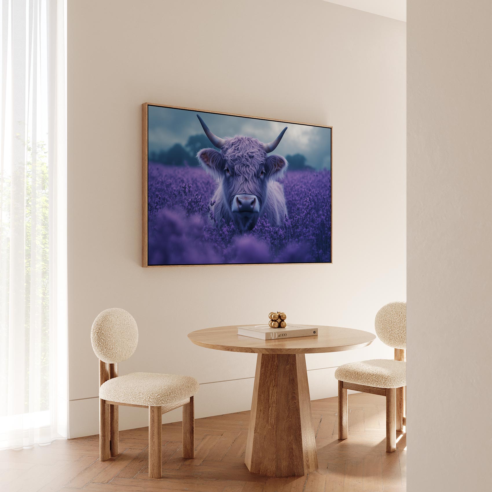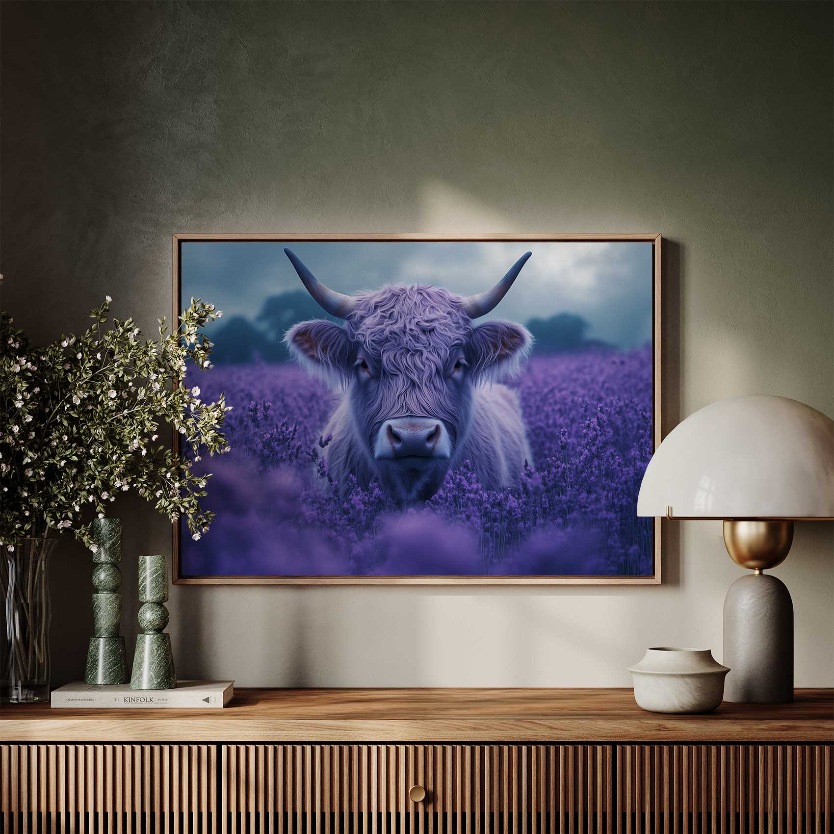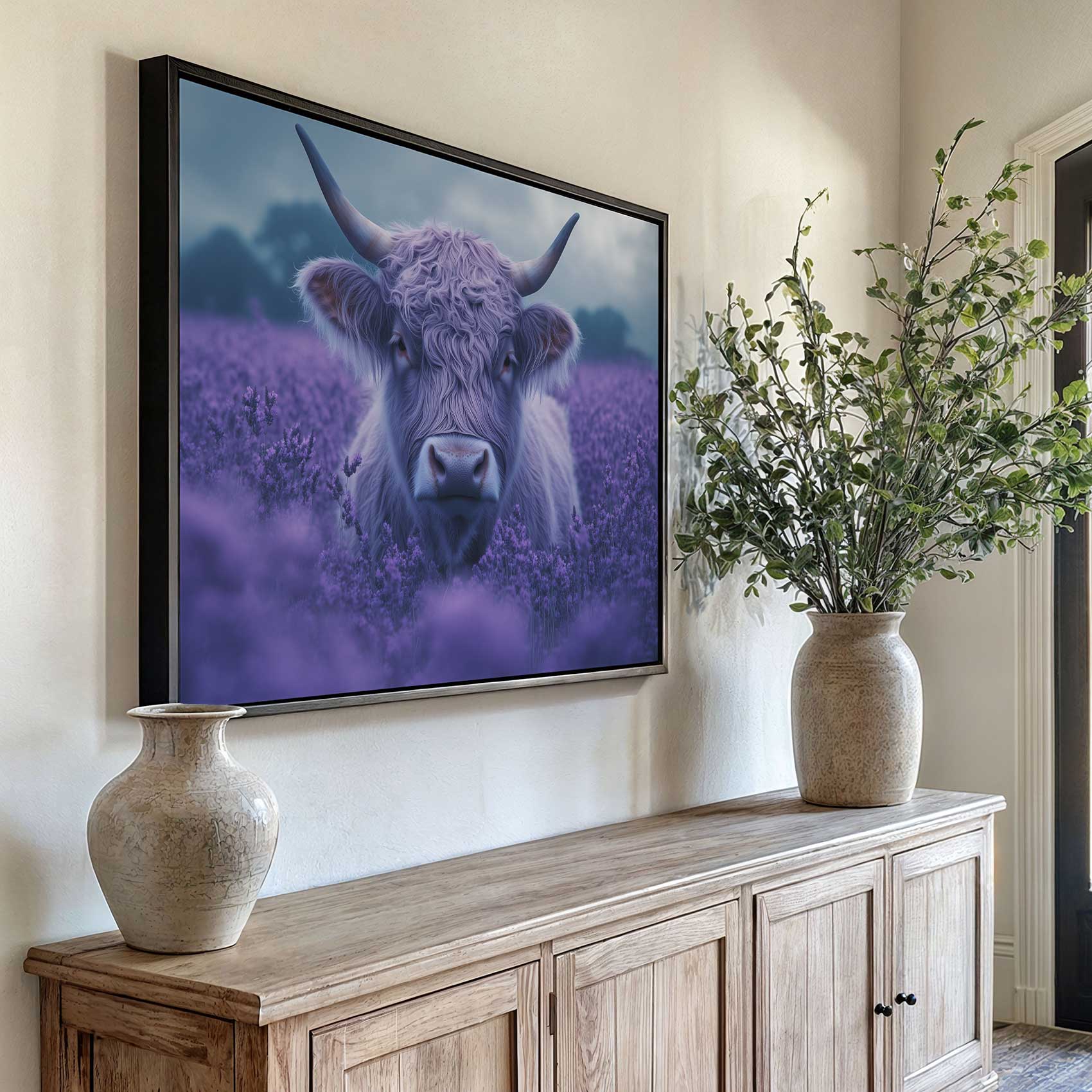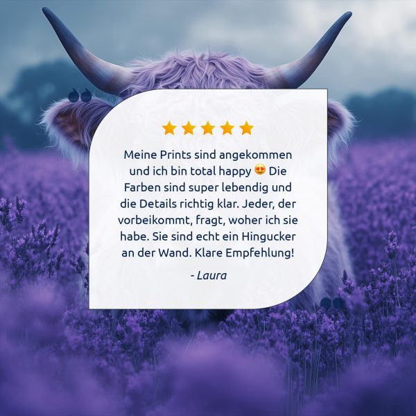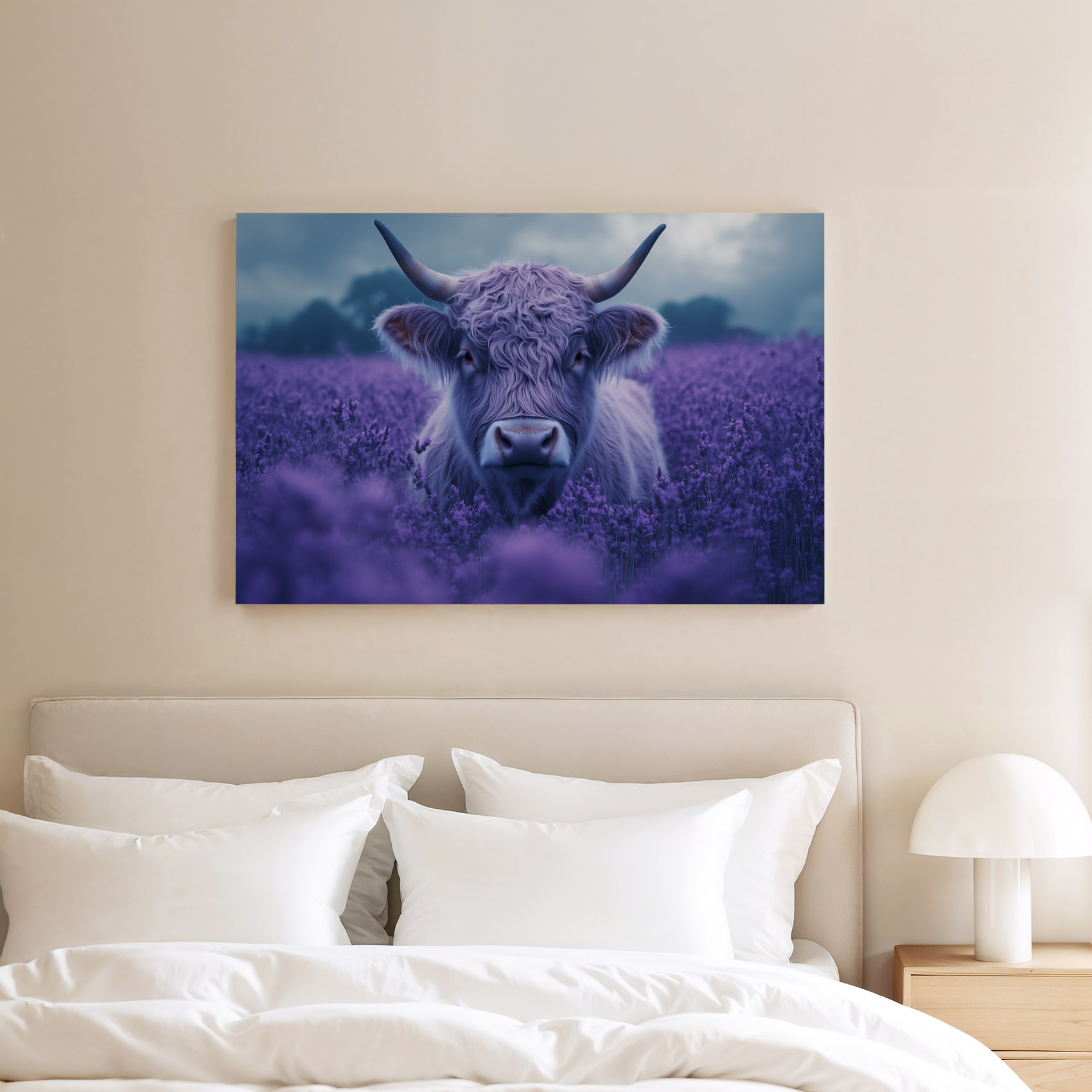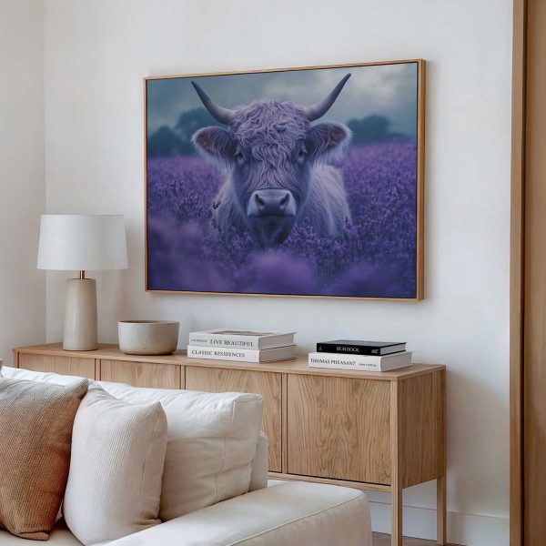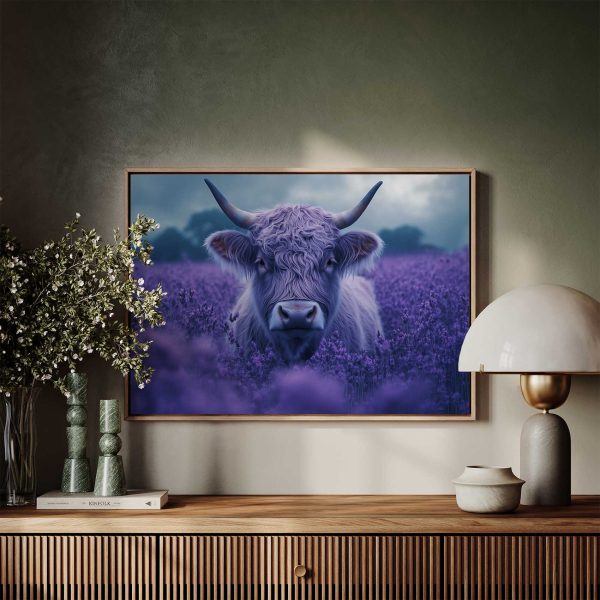 Harige koe in paarse bloemen